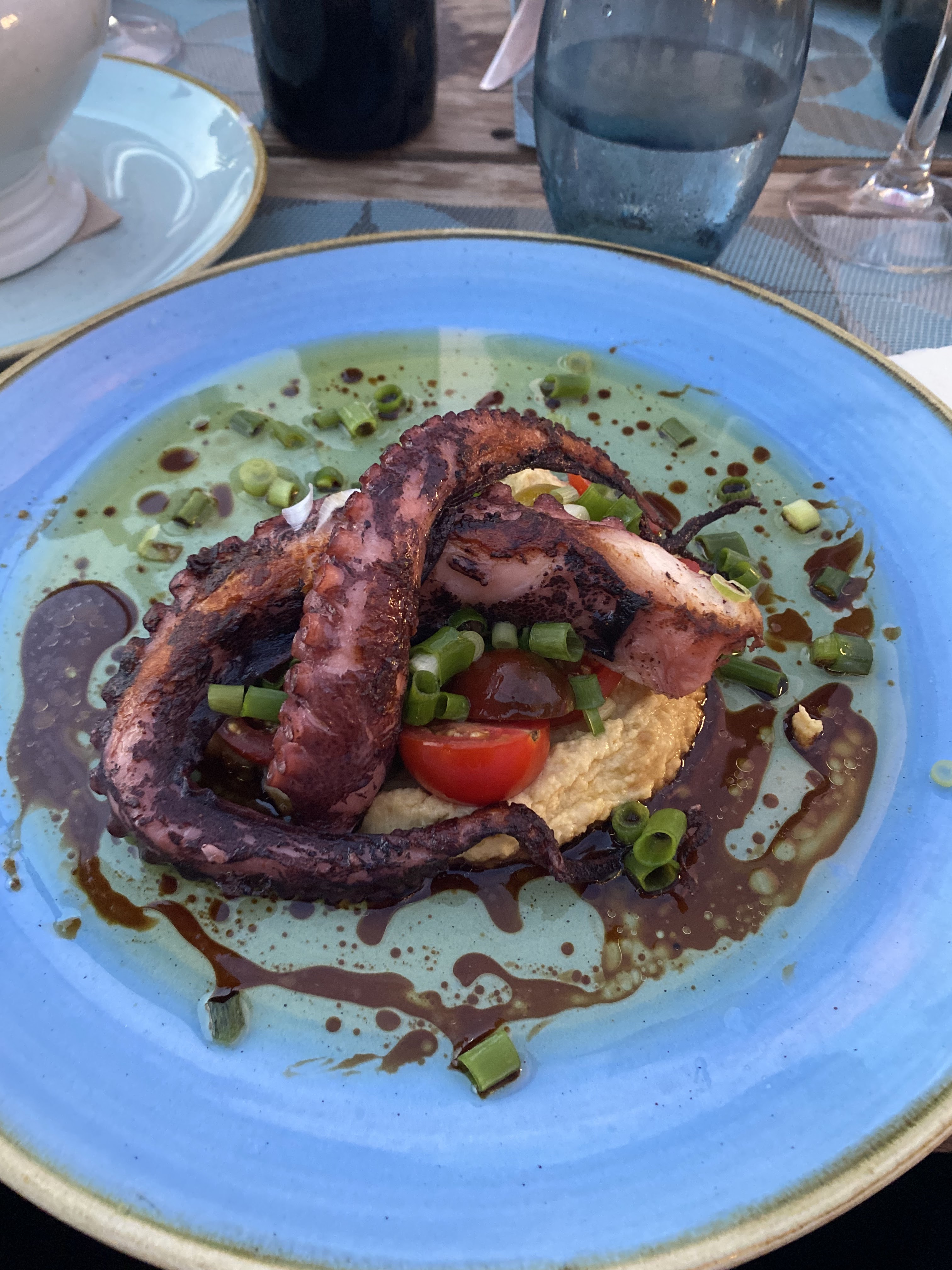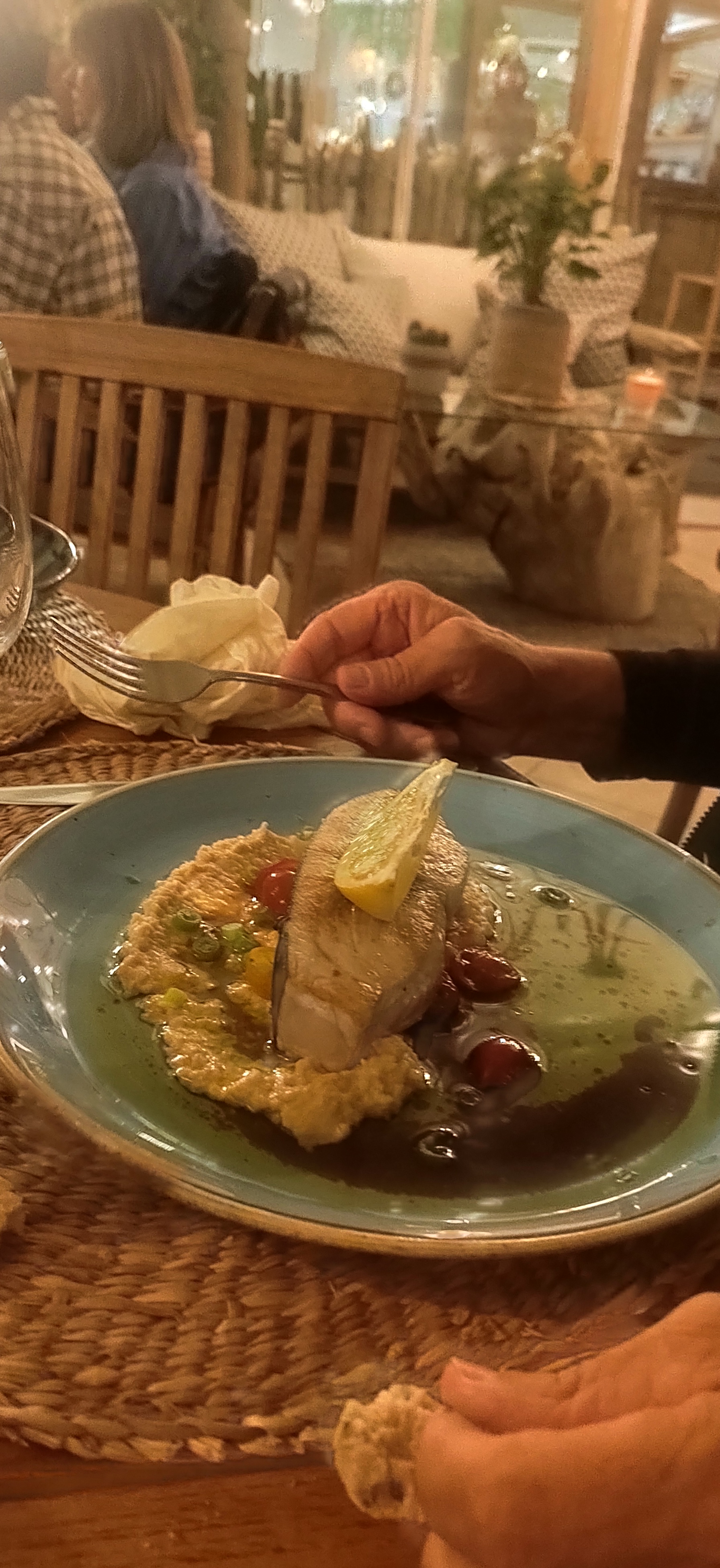 Cadre magnifique accueil parfait plats copieux juste un petit couak la soupe de poissons était froide ça c’est n’est pas trop gênant avec la chaleur mais le calamar farci était froid lui aussi 😞nous n’avons pas osé demander pourquoi , peut-être aurait il fallu ? Nathalie