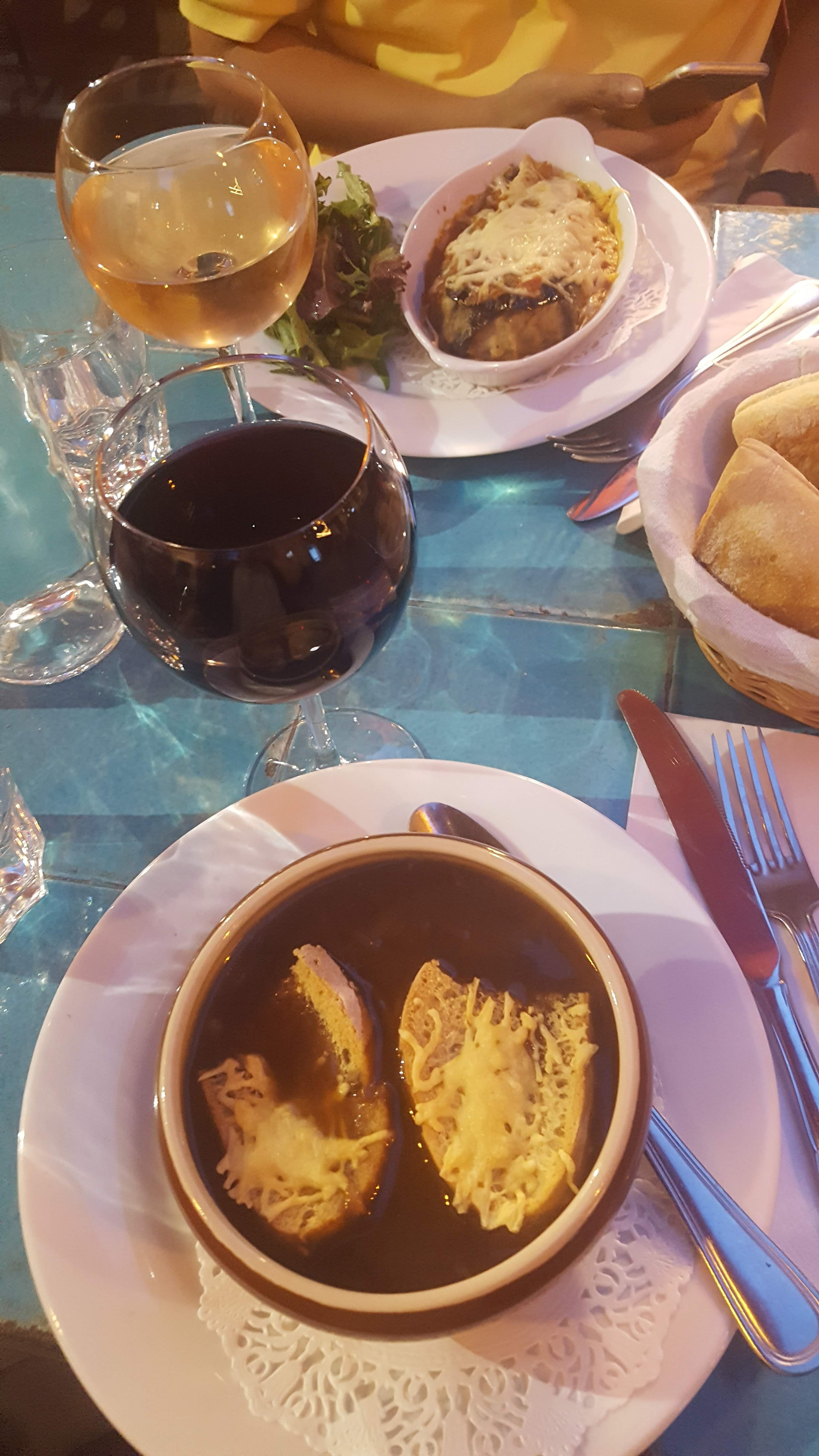 Un excellent dîner dans une ambiance super chic à un prix très raisonnable... on ne pouvait pas choisir un meilleur endroit dans le vieux Nice. Soupe d'oignons et de légumes farcie de viande avec un bon vin local