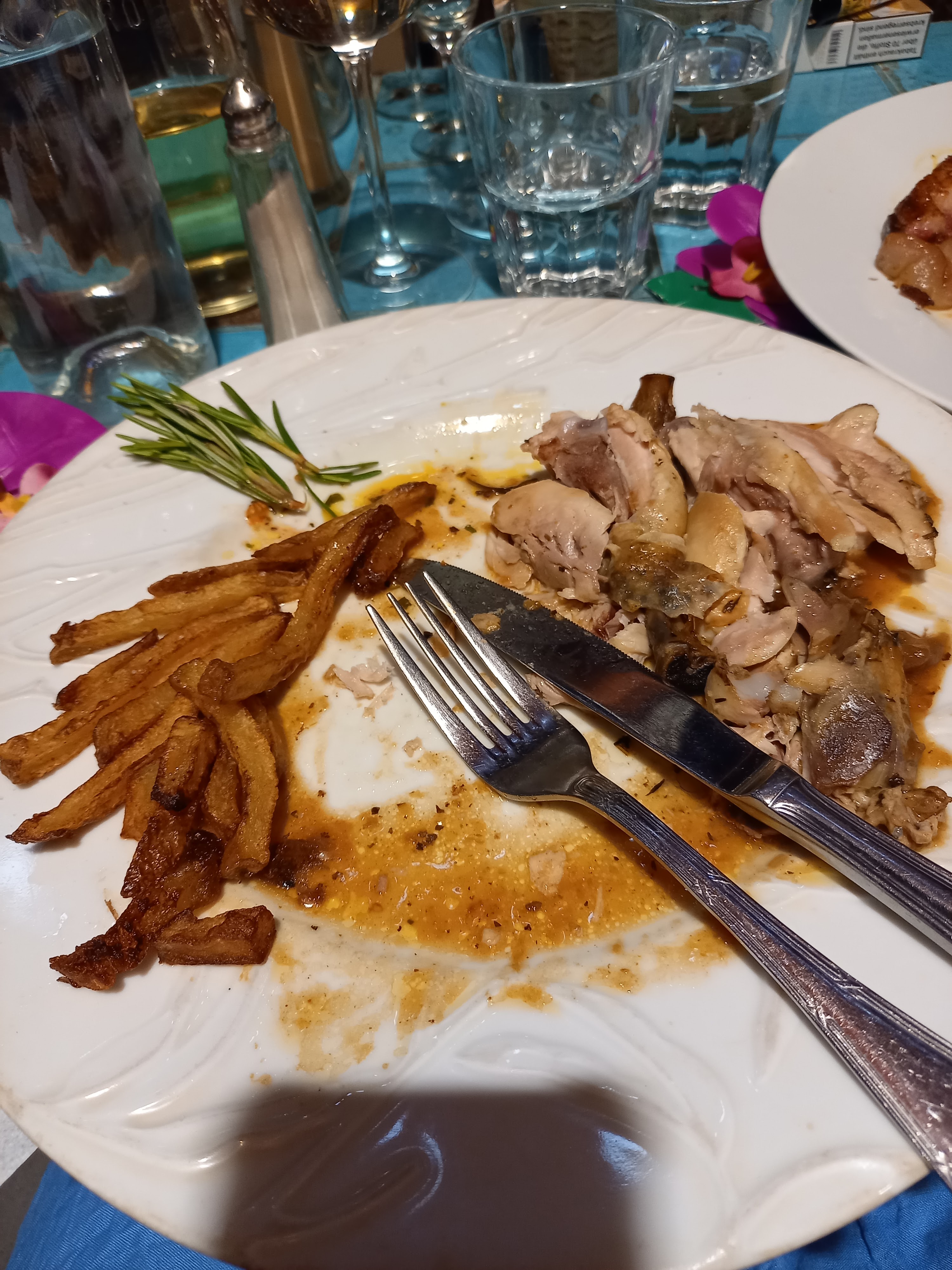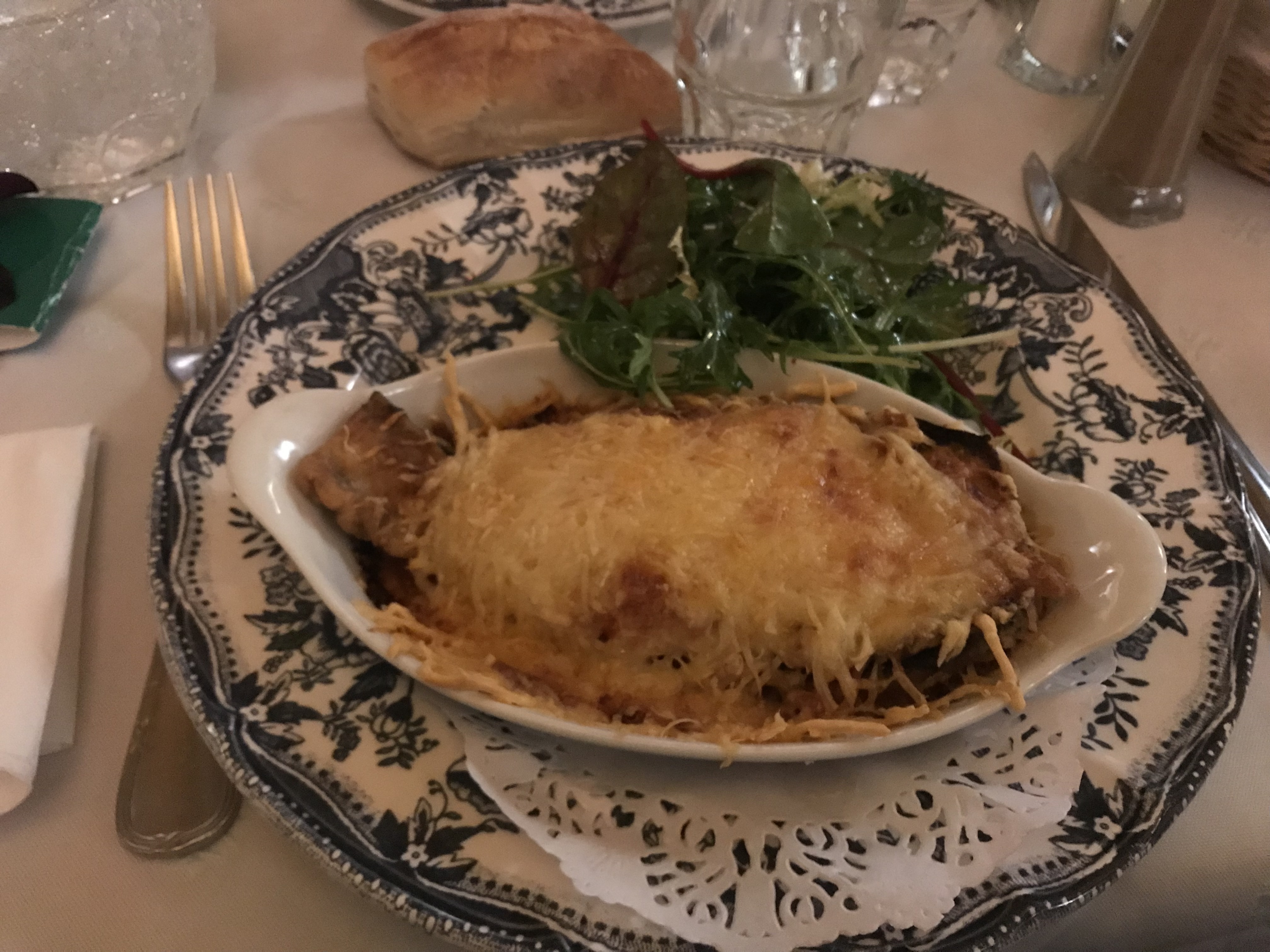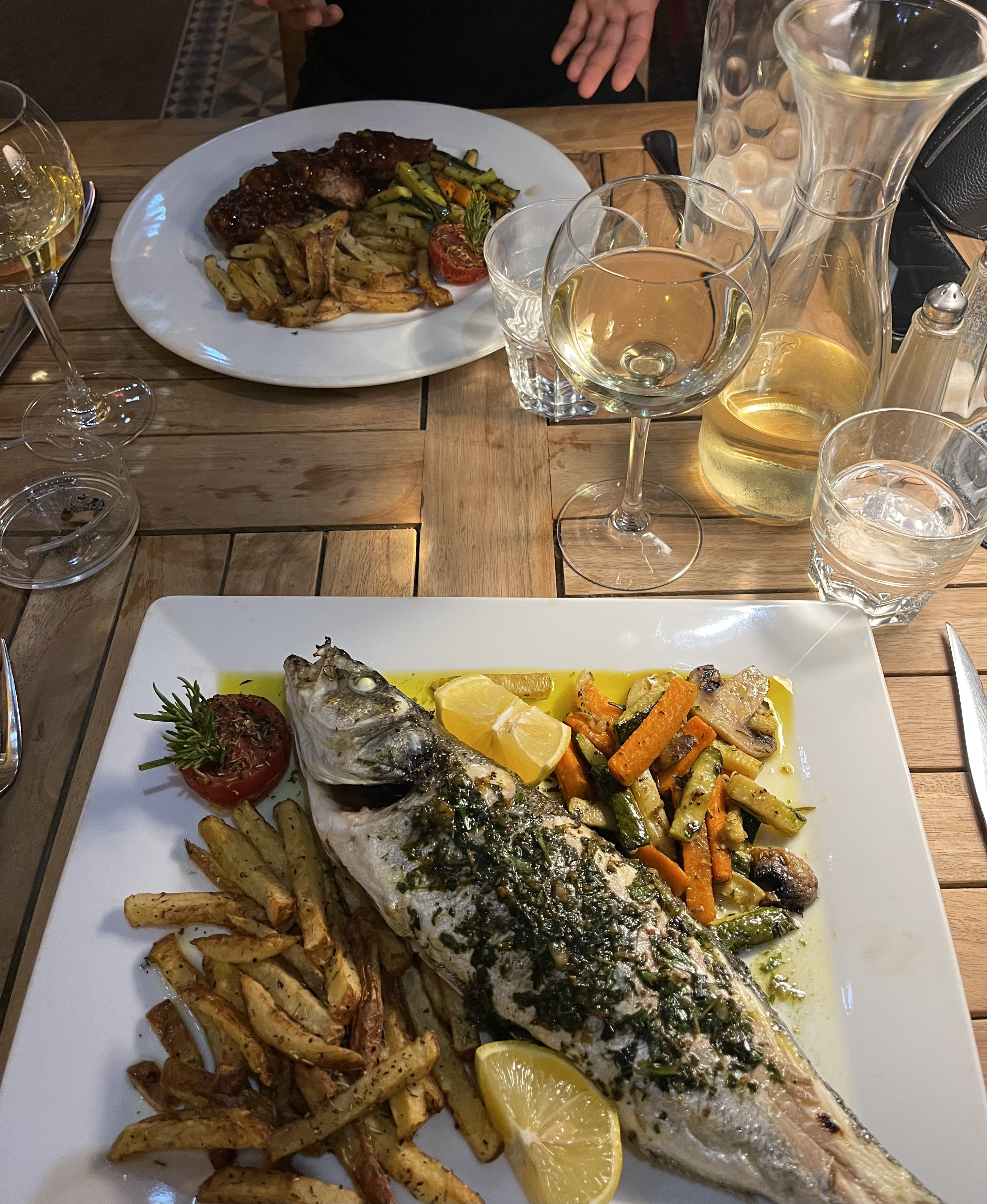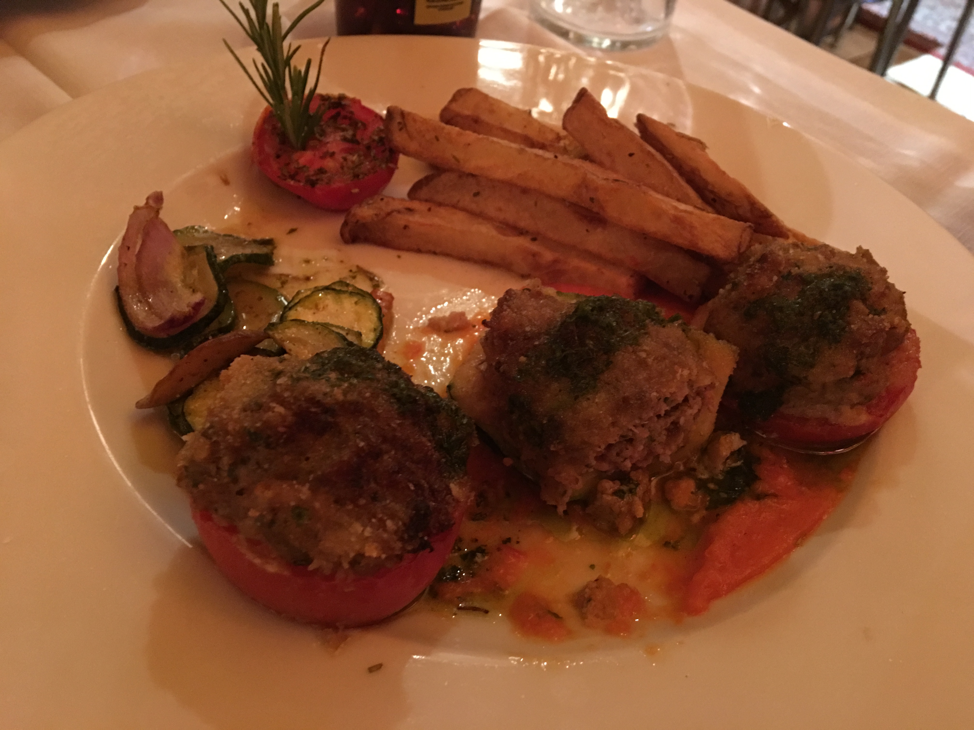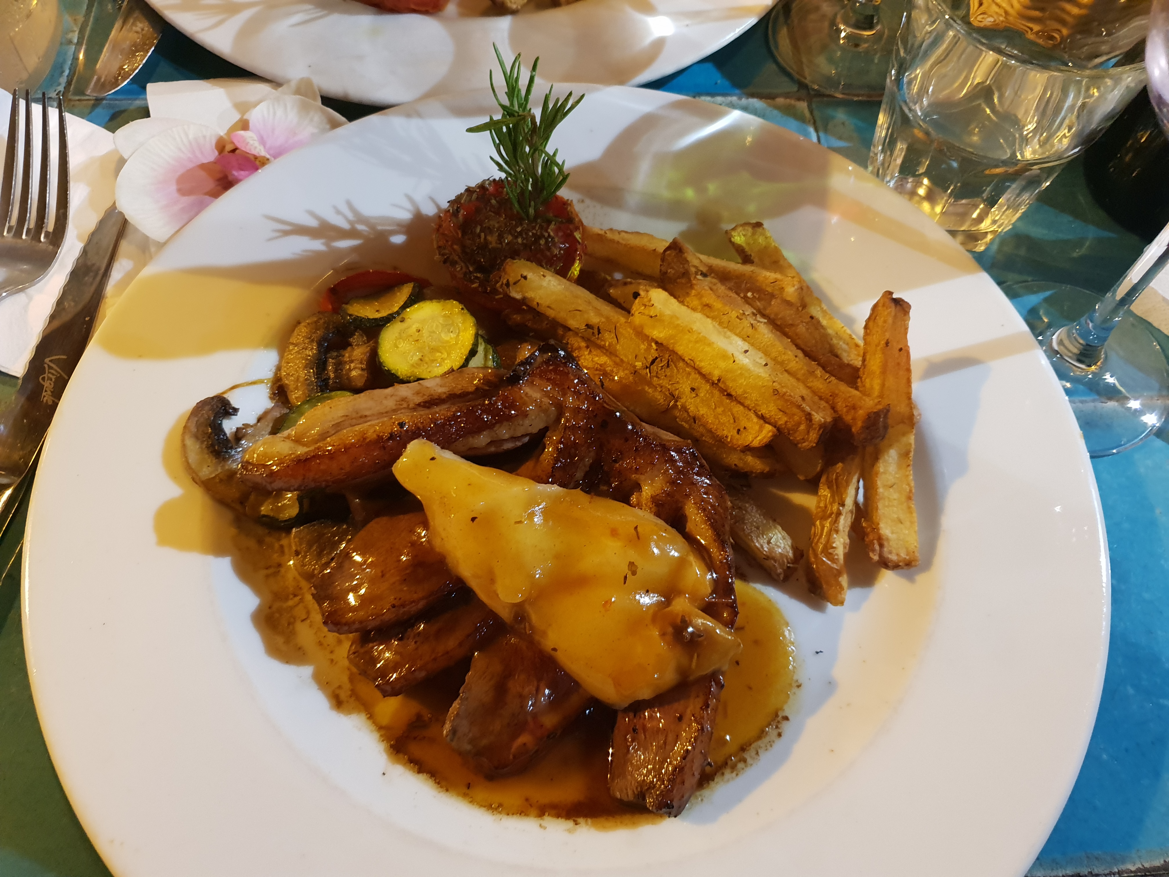 La nourriture était bonne mais pas impressionnante. Nous avons quand même apprécié notre dîner - pour l'apéritif, nous avions des escargots et pour le plat principal, nous avions un plat local, des légumes fourrés à la viande. Le plat principal était accompagné de frites et, comme l'ont souligné les autres critiques, elles étaient détrempées. Le prix était cependant très raisonnable et le service était agréable.