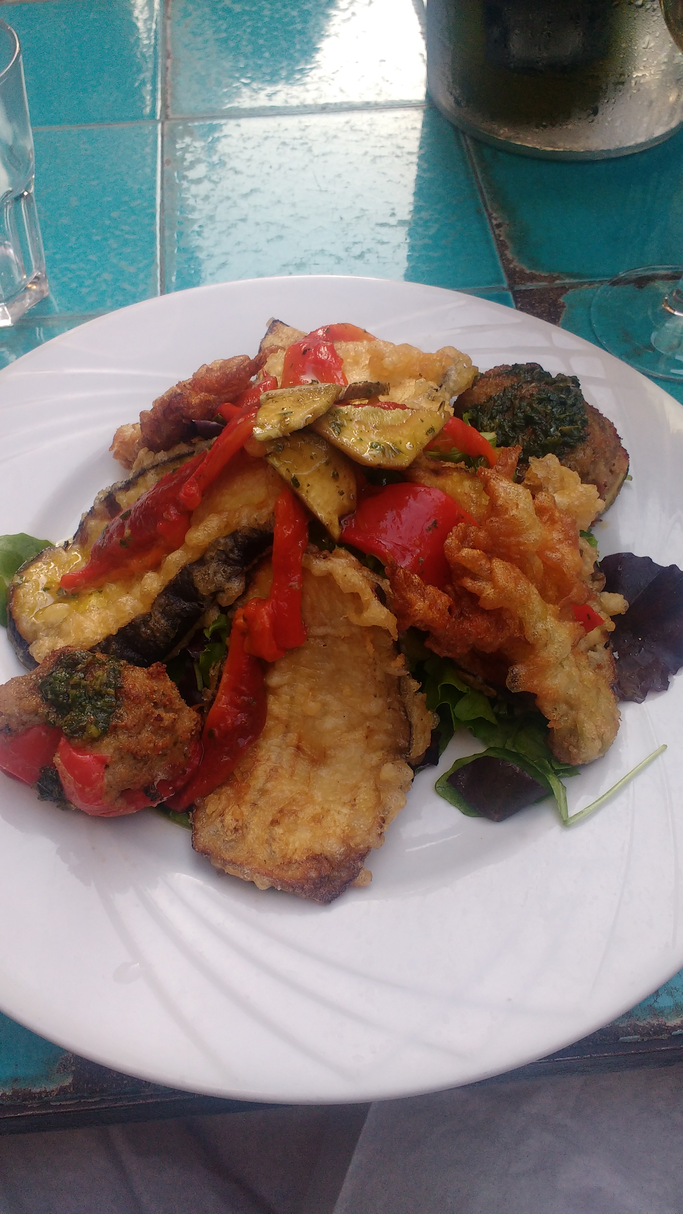 Plats indigestes!! nous avons commandé un plat de pâtes et un de farcis à la niçoise. Le premier plat, bien que les premières bouchées étaient assez savoureuses, était vraiment très gras et huileux, les penne flottaient dans le jus d’huile qui a été évidemment ajouté de façon disproportionné et les pâtes très cuites à notre goût ! Dans le deuxième plat, les courgettes étaient excessivement frites et leur couleur apparaissait très foncé ! Les farcis à l’apparence bonnes mais indigestes et sûrement avariés car mon compagnon a passé une nuit entière en vomissant avec des coliques importantes!! À faire très attention!! L’endroit reste très sympa avec une ambiance agréable mais la cuisine nécessite d’un contrôle et de plus d’hygiène !