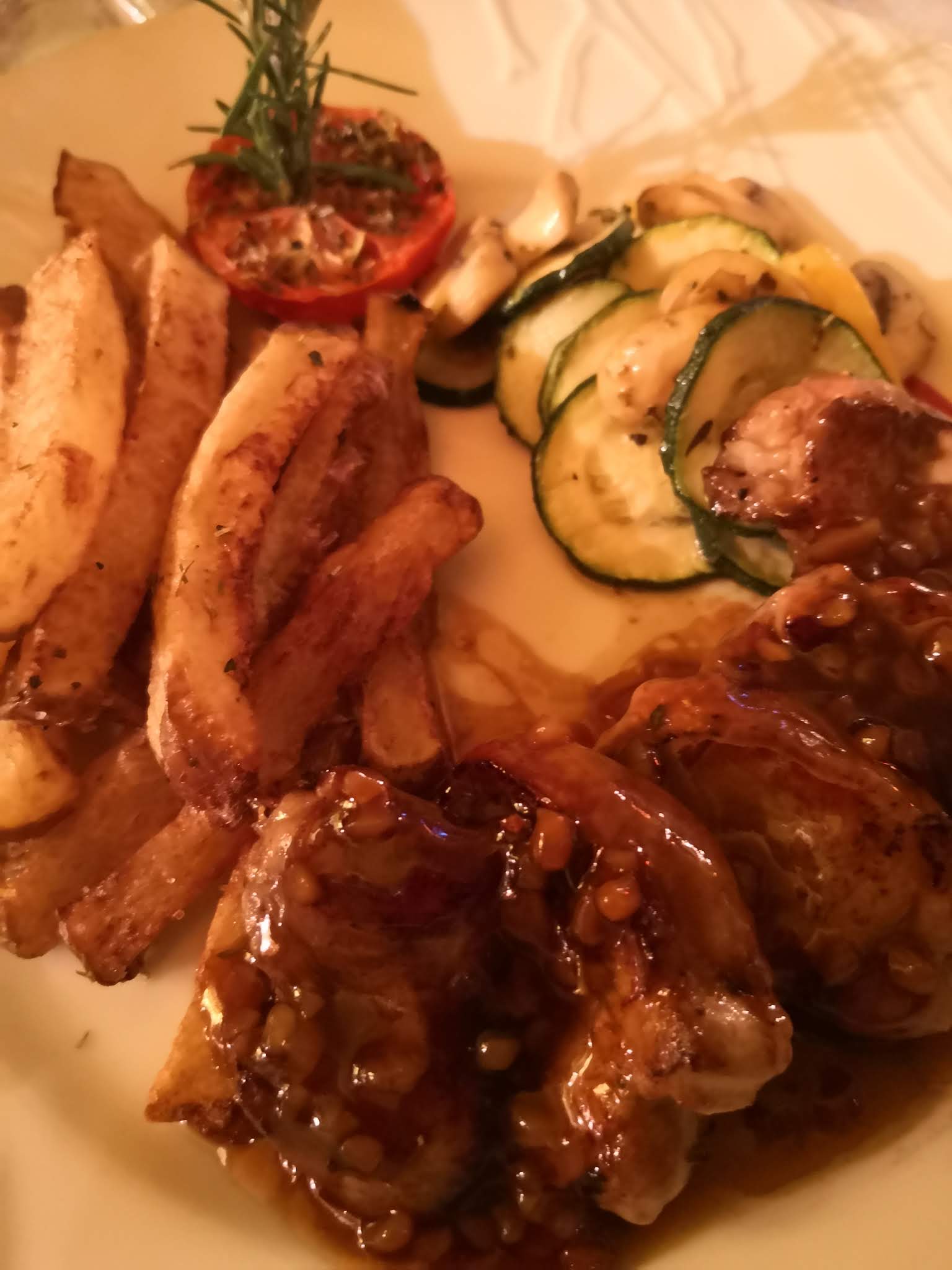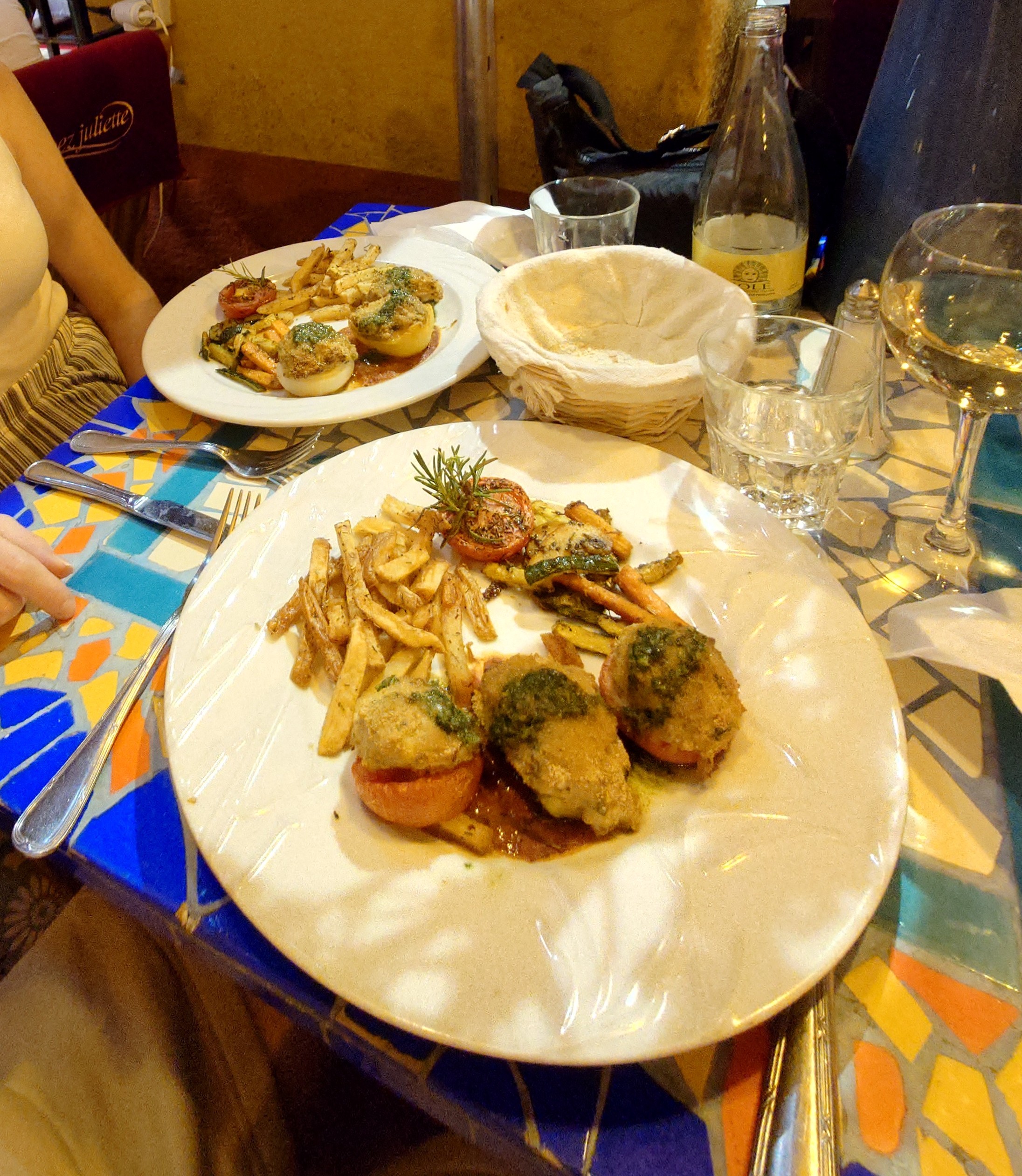 Notre premier dîner à Nice était chez Juliette. La cuisine était une cuisine familiale traditionnelle avec des portions de bonne taille. Malheureusement, ils ont manqué de Coq au Vin après ma commande, j'ai donc opté pour le filet de porc à la moutarde. C'était très savoureux même s'il était un peu trop cuit mais c'est comme ça que je l'aime ! Peut-être qu'ils le savaient ?