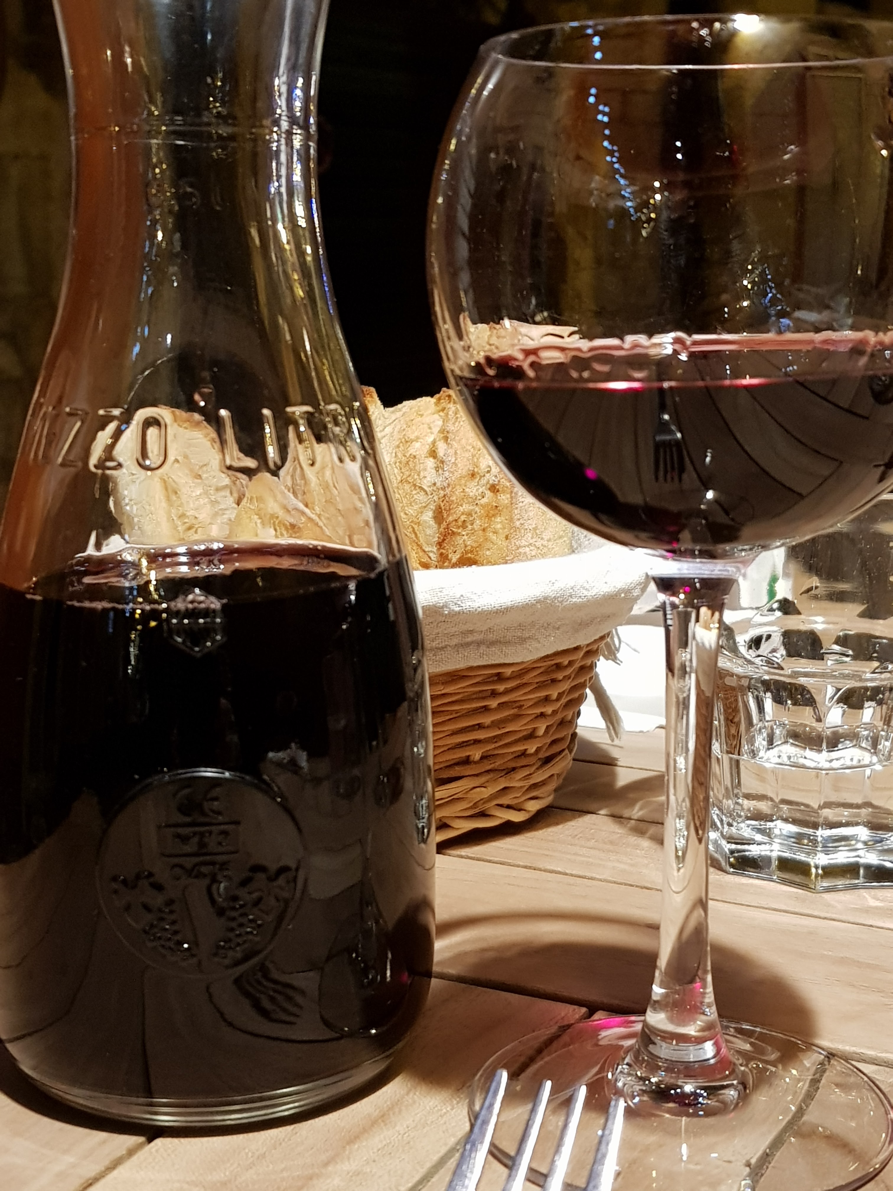 La disposition des sièges à l'extérieur semble un peu trop encombrée car même pour les serveurs, il était difficile de se rendre à différentes tables. Du vin rouge et du poulet dans une sauce au vin rouge ont été commandés. Le service était bon. Lorsque la nourriture est arrivée, les assiettes étaient extrêmement chaudes, donc je suppose que la nourriture était dans l'assiette plus longtemps ou que les assiettes étaient sorties du micro-ondes. Le goût n'était pas mauvais. Dans l'ensemble, je donnerais 3,5 étoiles mais pas possible ici, c'est pourquoi 4.