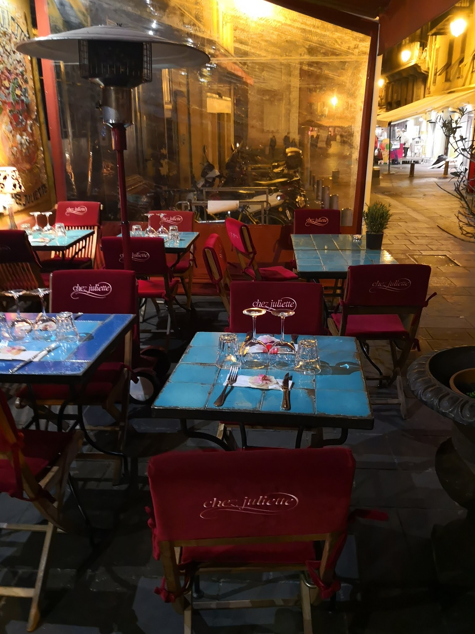 Un dîner chez Juliette est toujours un incontournable lorsque je vais à Nice ; c'est maintenant une tradition, après l'avoir découvert par hasard il y a des années. Ambiance chaleureuse, personnel sympa, nourriture honnêtement bonne, traditionnellement française.