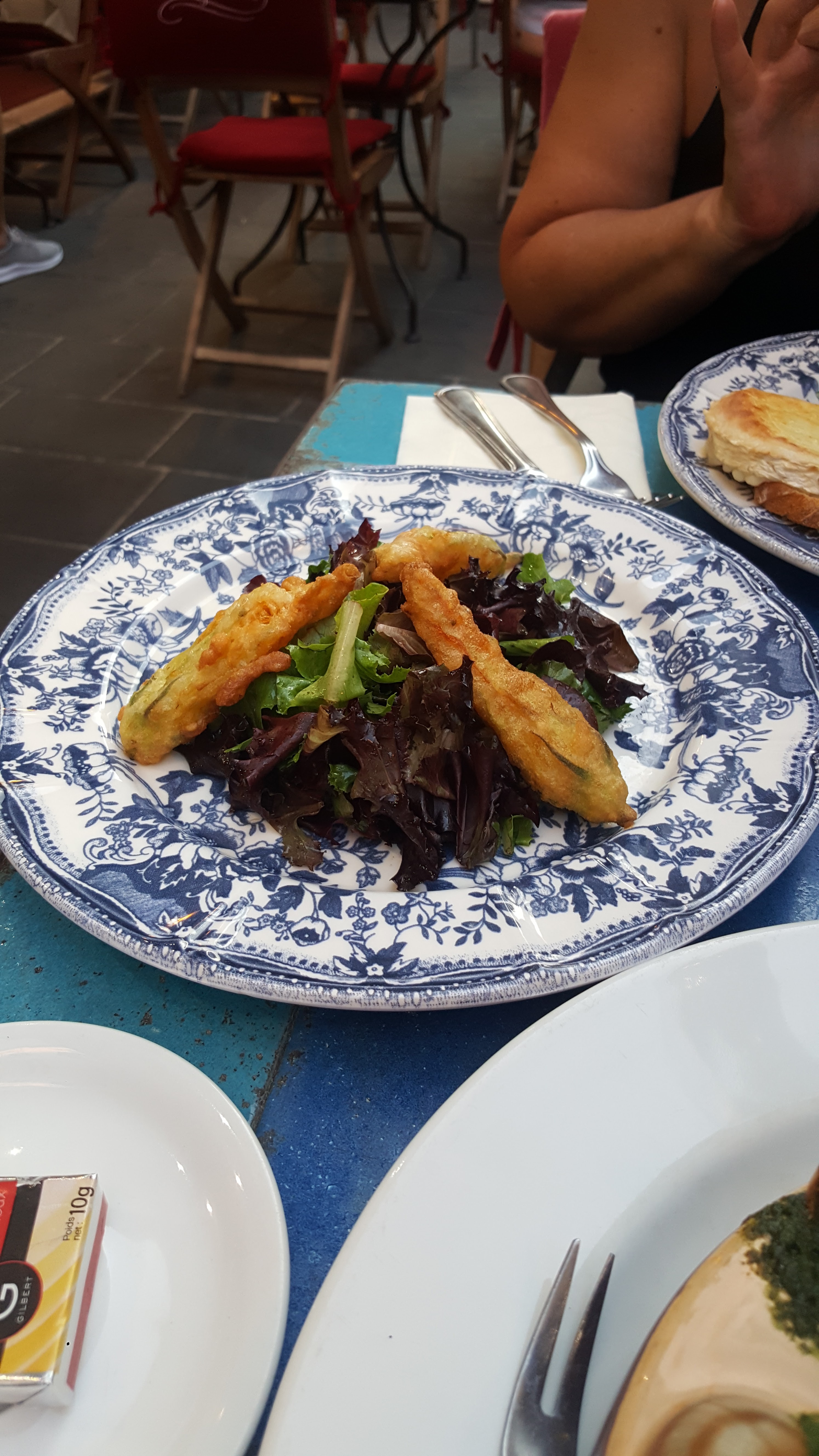 Les beignets de fleur de courgettes etaient fades. Les tartines etaient bonnes. Crème brûlé immangeable.
