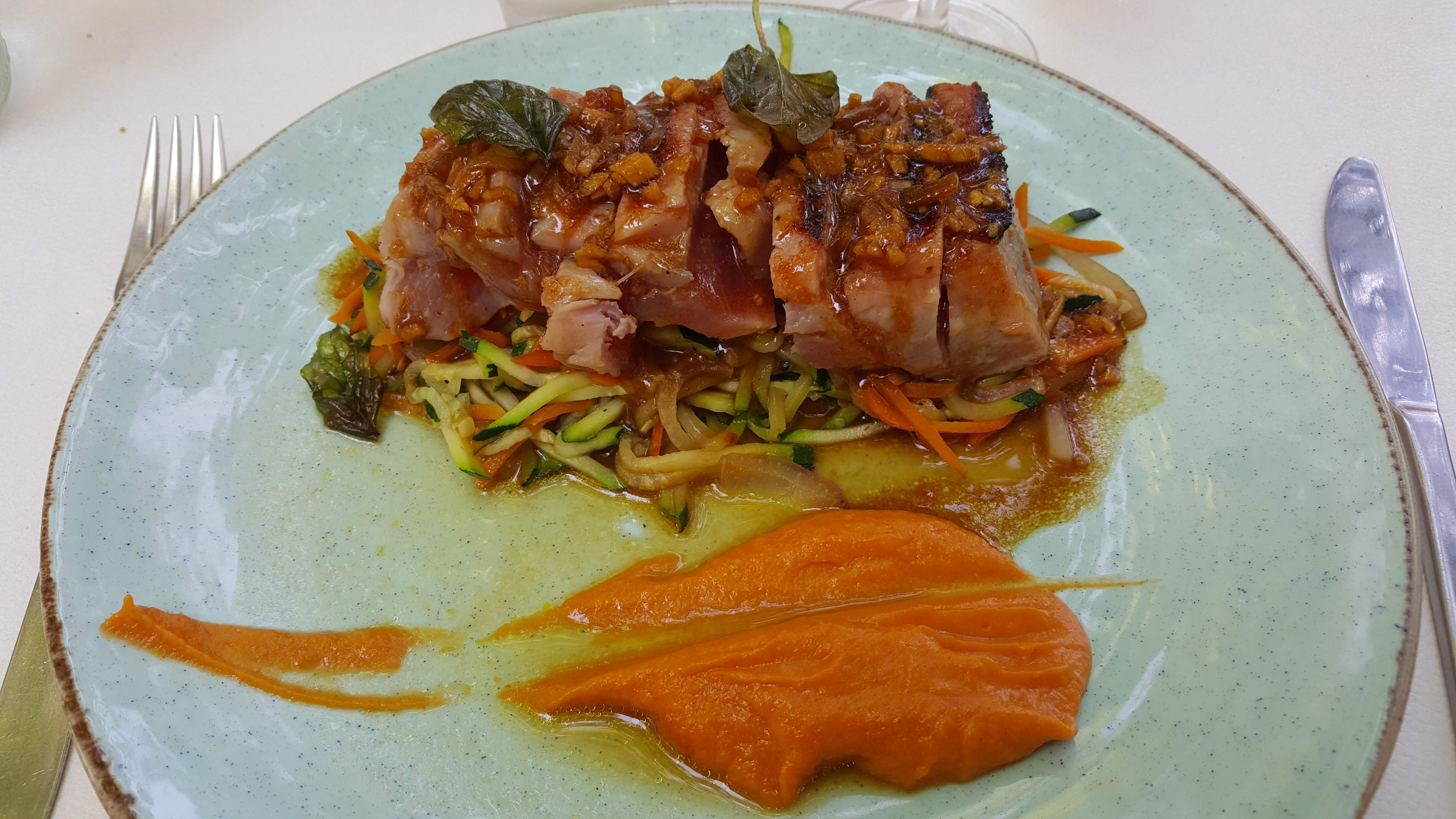 Très beau cadre, accueil correct Dommage que le cabillaud sauce safrané n'était pas fait avec du safran, mais avec du spigol,trop spigol qui a caché tout le goût du cabillaud. Tagliata de boeuf très bon et très tendre. À la prochaine