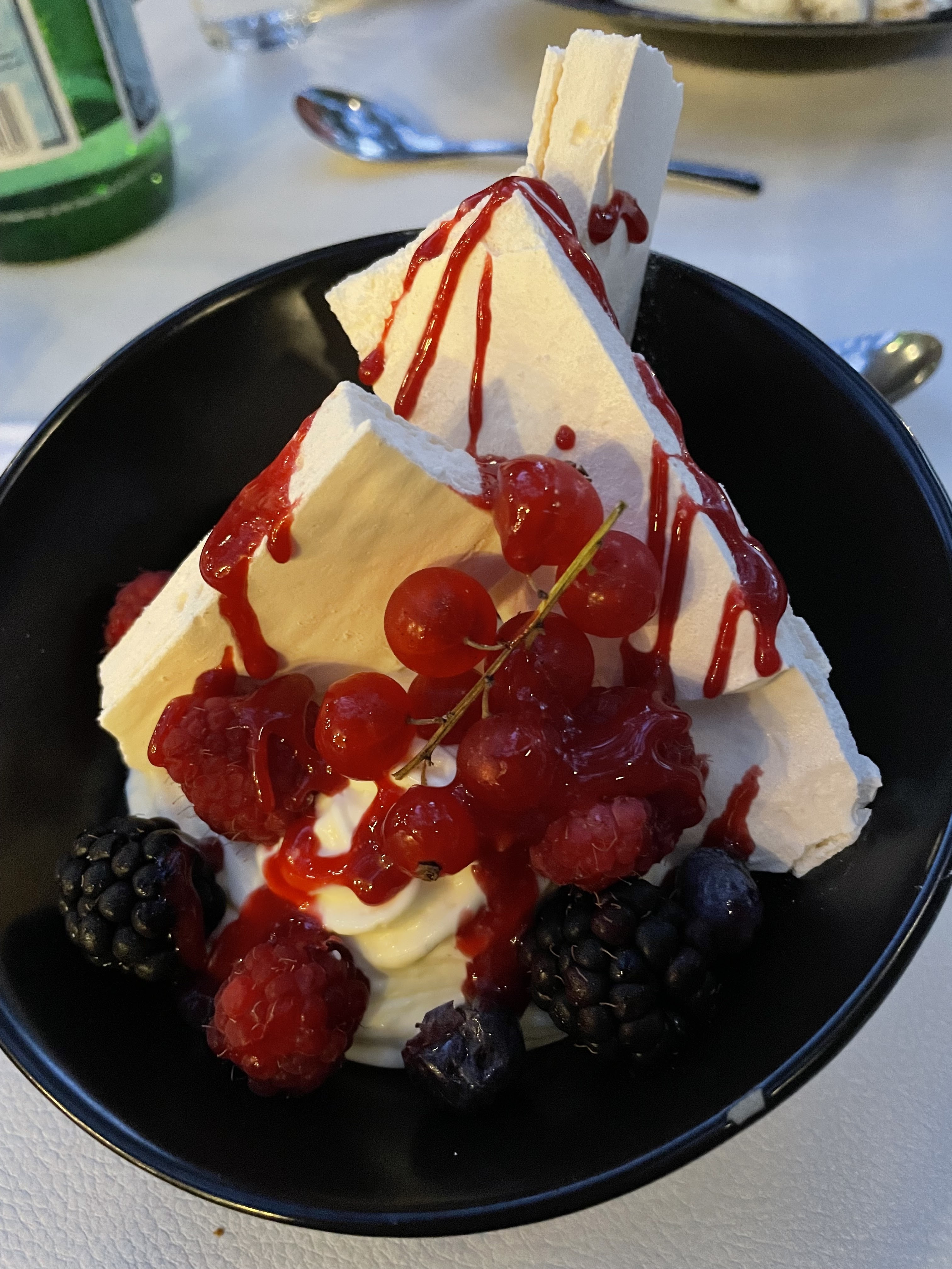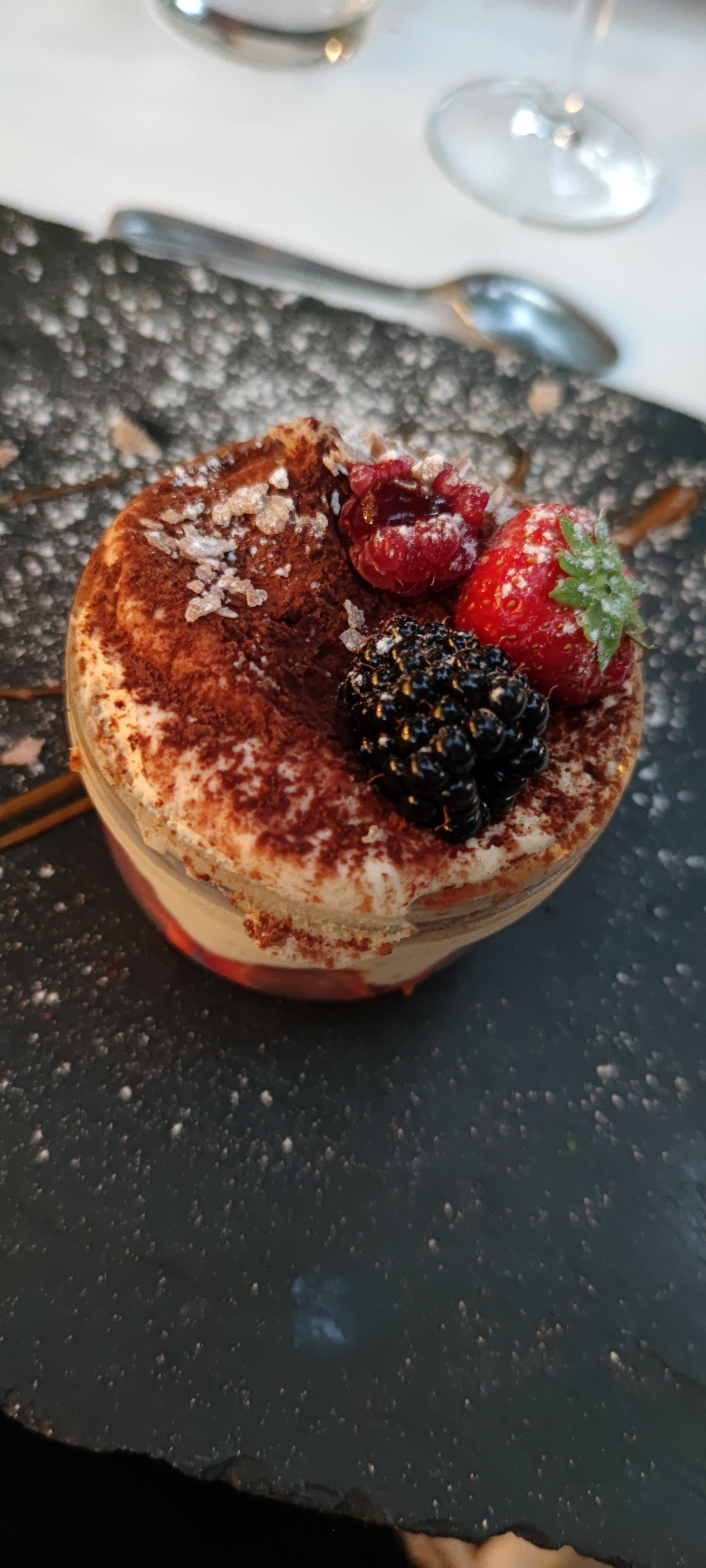 Décevant: les plats sont vraiment trop chers pour ce que c’est - la cuisine est assez banale, foie gras ok, risotto rien d’exceptionnel, le meilleur plat fut les gnocchis à la truffe. Les nems au chocolat sont trempés dans du sucre glace, clés ne se fait plus ! On est plutôt dans le monde du sans sucre 😉