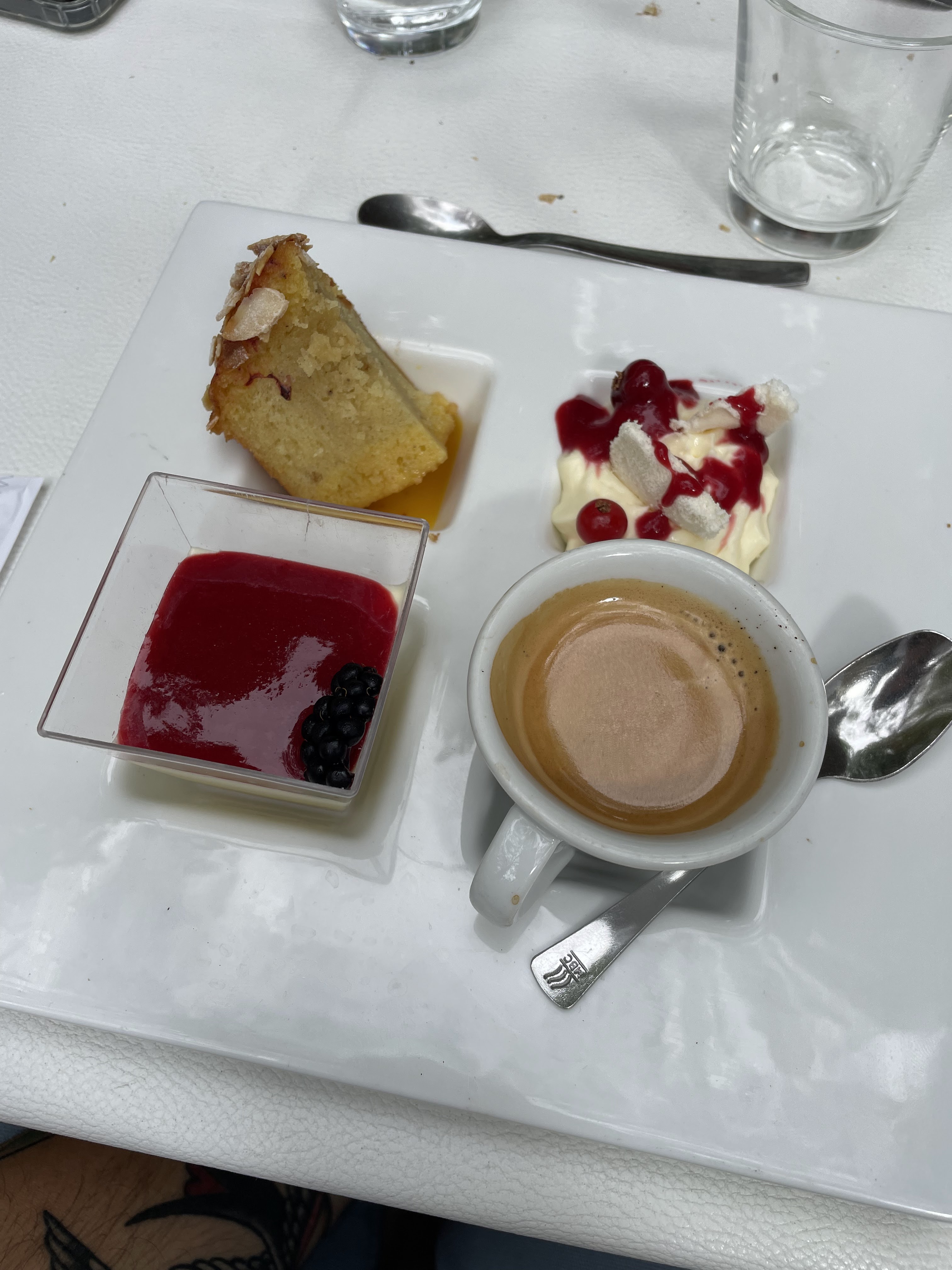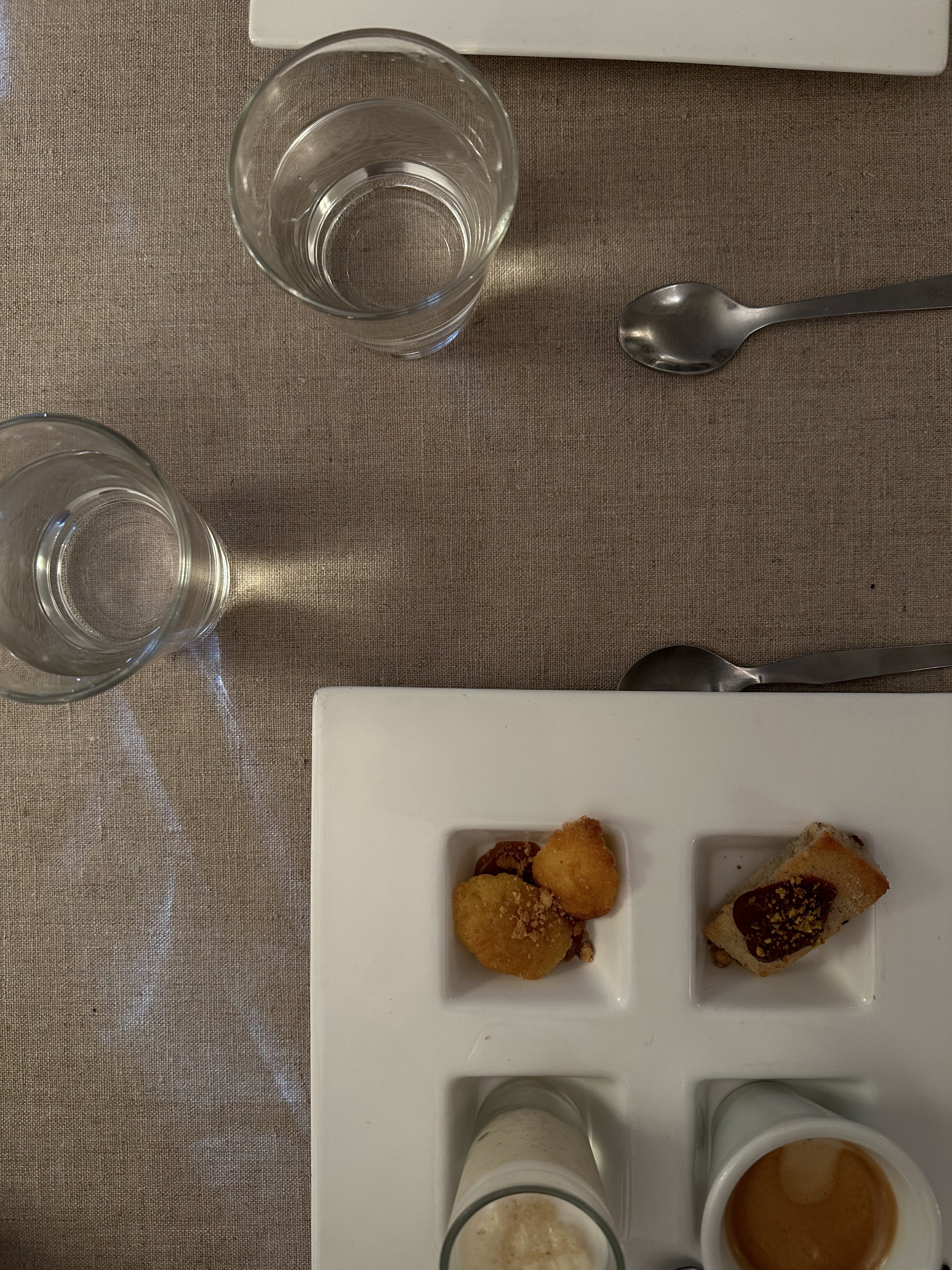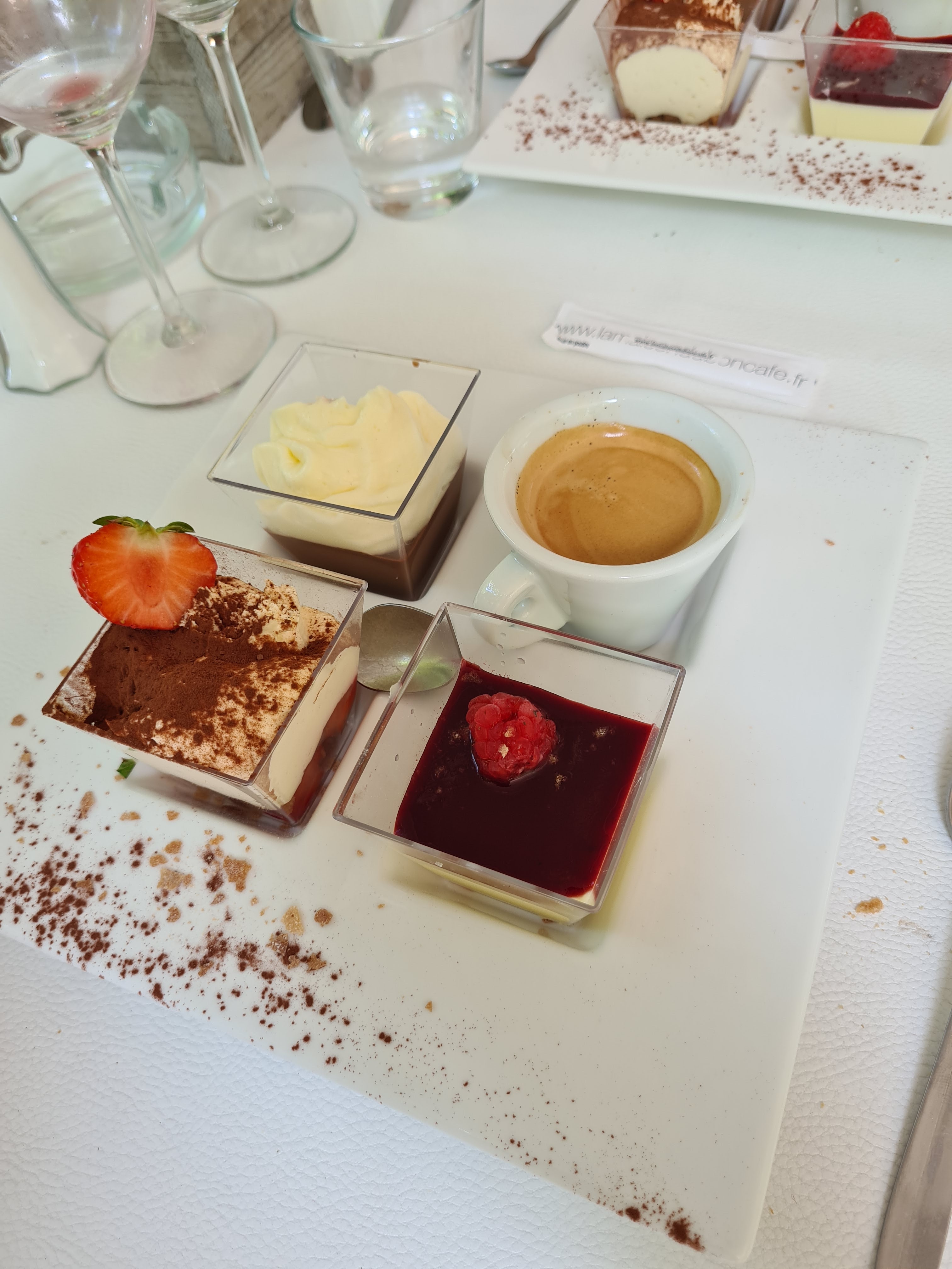 Cadre très agréable, mais bien trop cher pour ce qui est proposé dans l’assiette, le bouquet final revient au café gourmand qui n’a de gourmand que le nom, trois mini madeleines de 2cm, un mini financier à peine plus grand et une petite verrine de chocolat, 10 euros