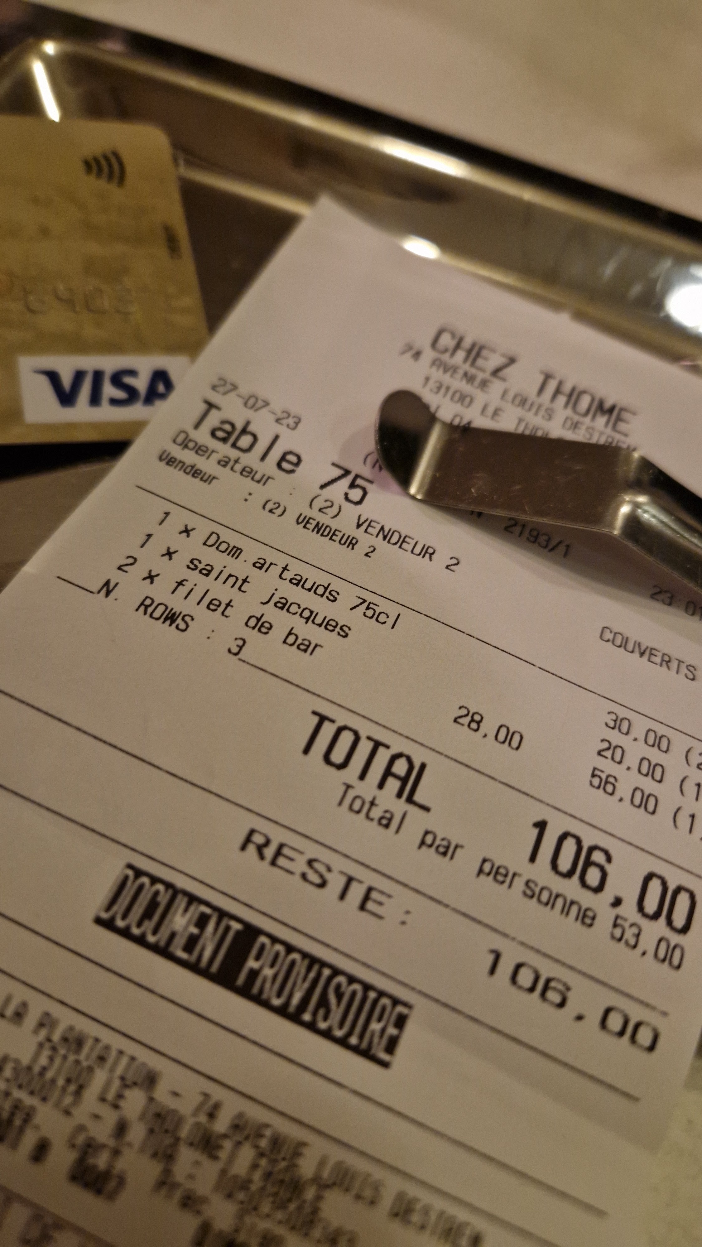Repas très bon cadre sympathique mais bouteille de vin excessivement chère