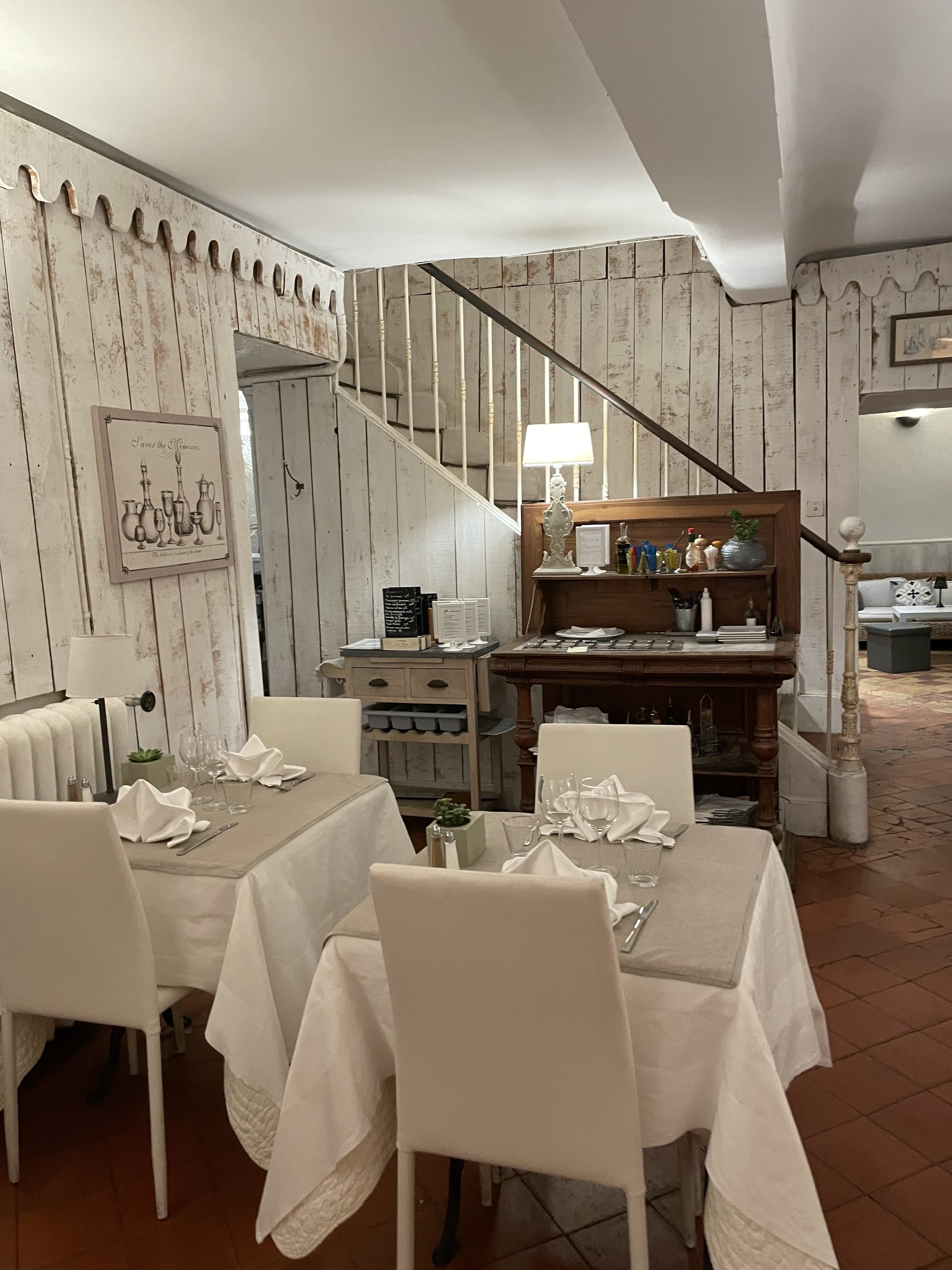 Ce qui m'a plu : le lieu. Rien à redire c est très agréable. Une belle terrasse, dans un beau jardin d'une maison provençale. L'accueil était agréable. Ce qui m'a moins plu : la cuisine et le prix. La cuisine est vraiment basique et pas très raffinée pour un prix plutôt élevé. Je regrette que dans un cadre aussi beau, peu d'effort soit fait pour mettre la cuisine à la hauteur et devenir un haut lieu de la gastronomie provençale.