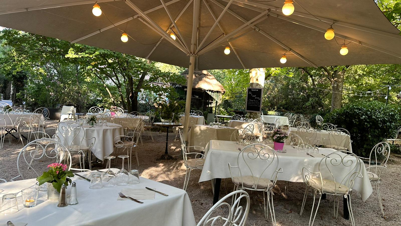 Belle cuisine servie en terrasse sous les arbres