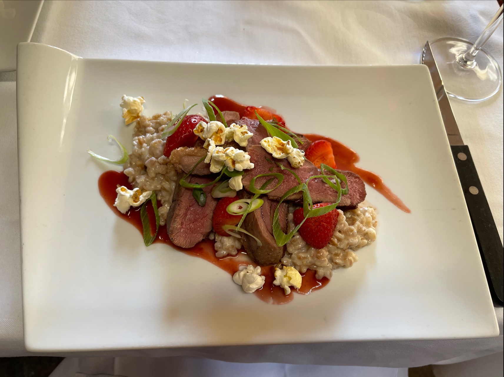 J’ai commande un filet de canette et filet du beef, a point, mais il est bien cuisine et tres mal….