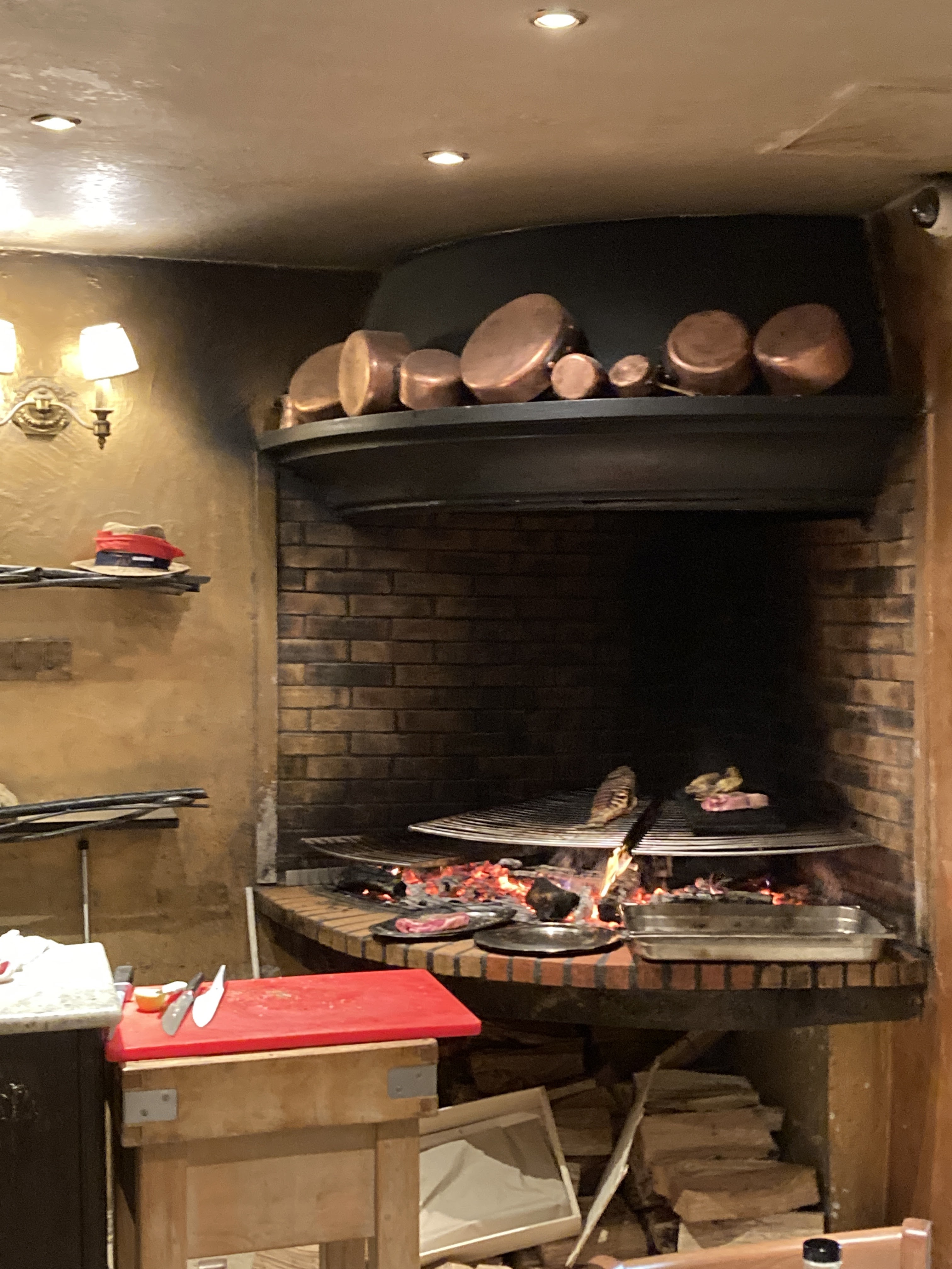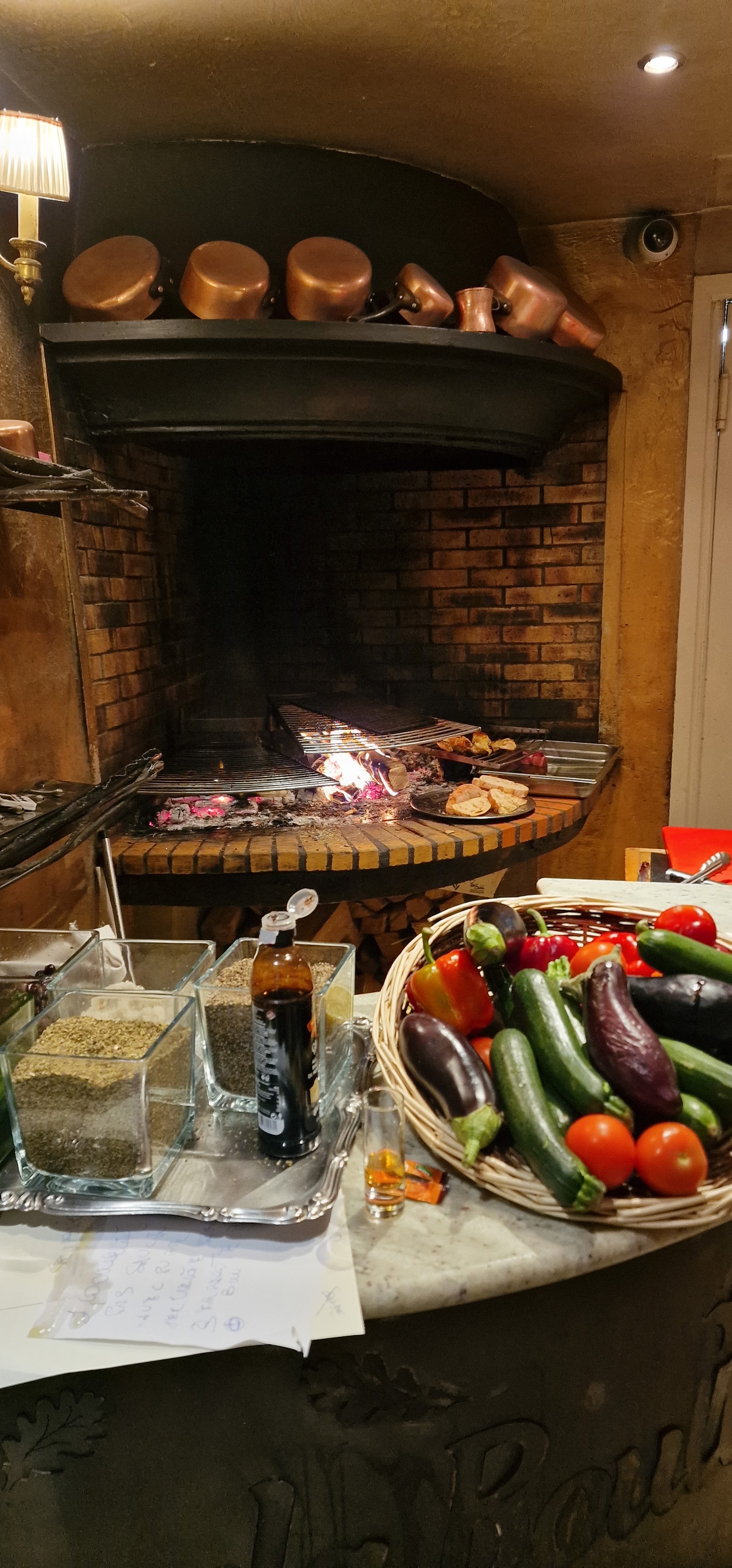 Un restaurant cannois classique avec une cuisine à base de braise. Décoration traditionnelle avec des plaques faisant référence aux peintres, acteurs et actrices qui l'ont visité. Menu complet à base de produits traditionnels, bœuf, poulet, agneau et poisson frais. Nous avons commandé de très bons entrées. Un très bon foie maison et une focaccia avec de l'huile de truffe qui était vraiment bonne. Nous avons partagé quelques coquelets rôtis et bien cuits. Les seins étaient un peu plus secs, comme d'habitude, mais pas détrempés. Ensuite, nous avons dégusté un steak local. La viande a un très bon goût mais avec des zones trop cuites. Un excès de flamme vive qui donnait un goût de brûlé à la partie la plus externe de la pièce, ce qui n'est pas très agréable. Pour le dessert, nous avons commandé des crêpes au nutela, assez idiotes. Carte des vins courte mais correcte. Un bon choix pour goûter aux braises de cette ville.
