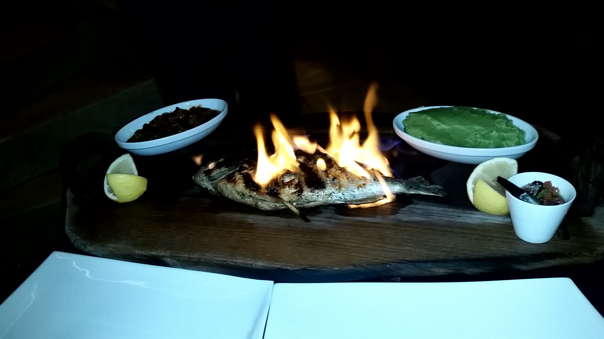 La dorade au feu de bois et la brochette de gambas étaient inoubliables. Le patron et les serveurs sont charmants et très professionnels. La garantie d’un repas magique!