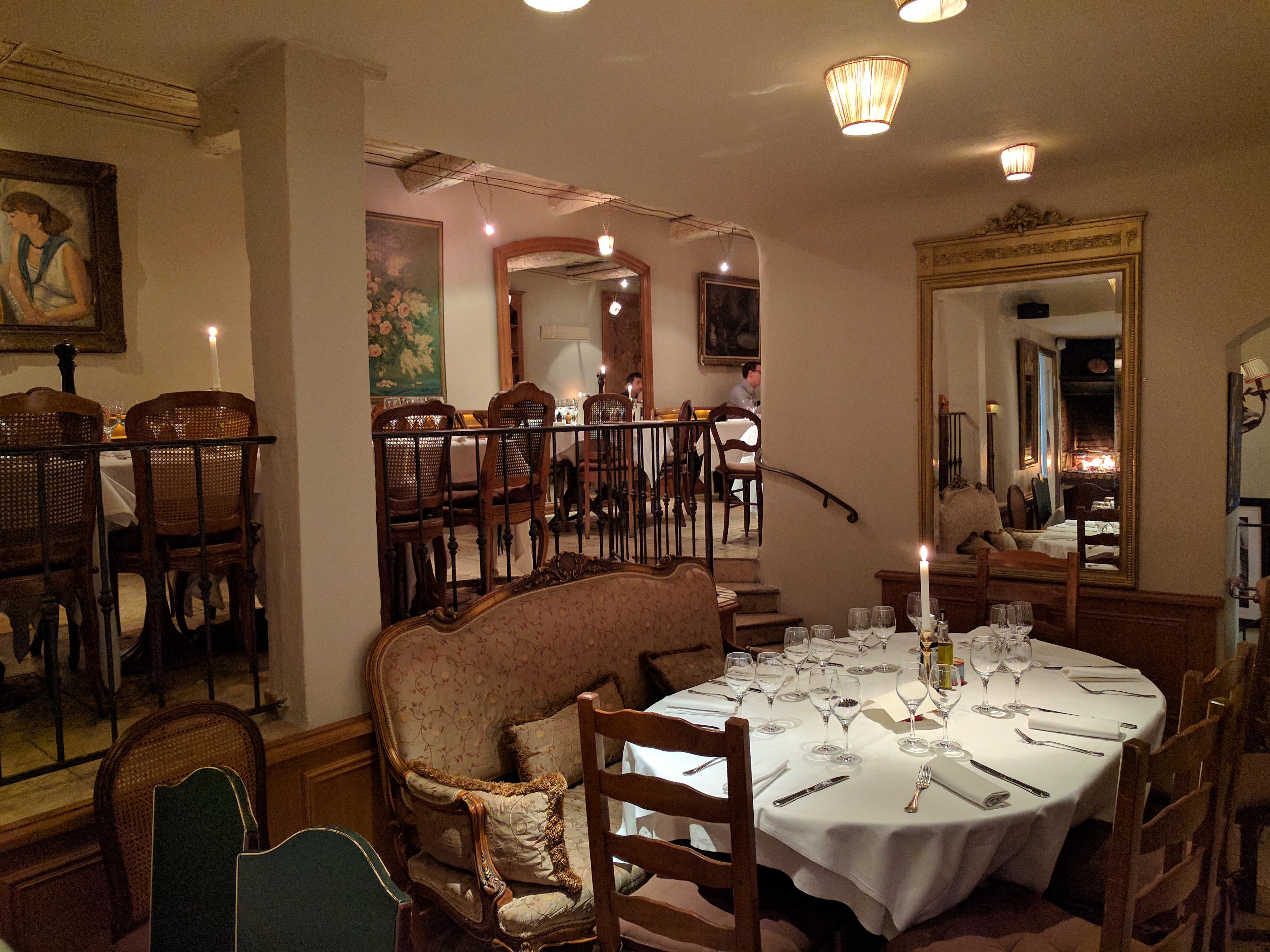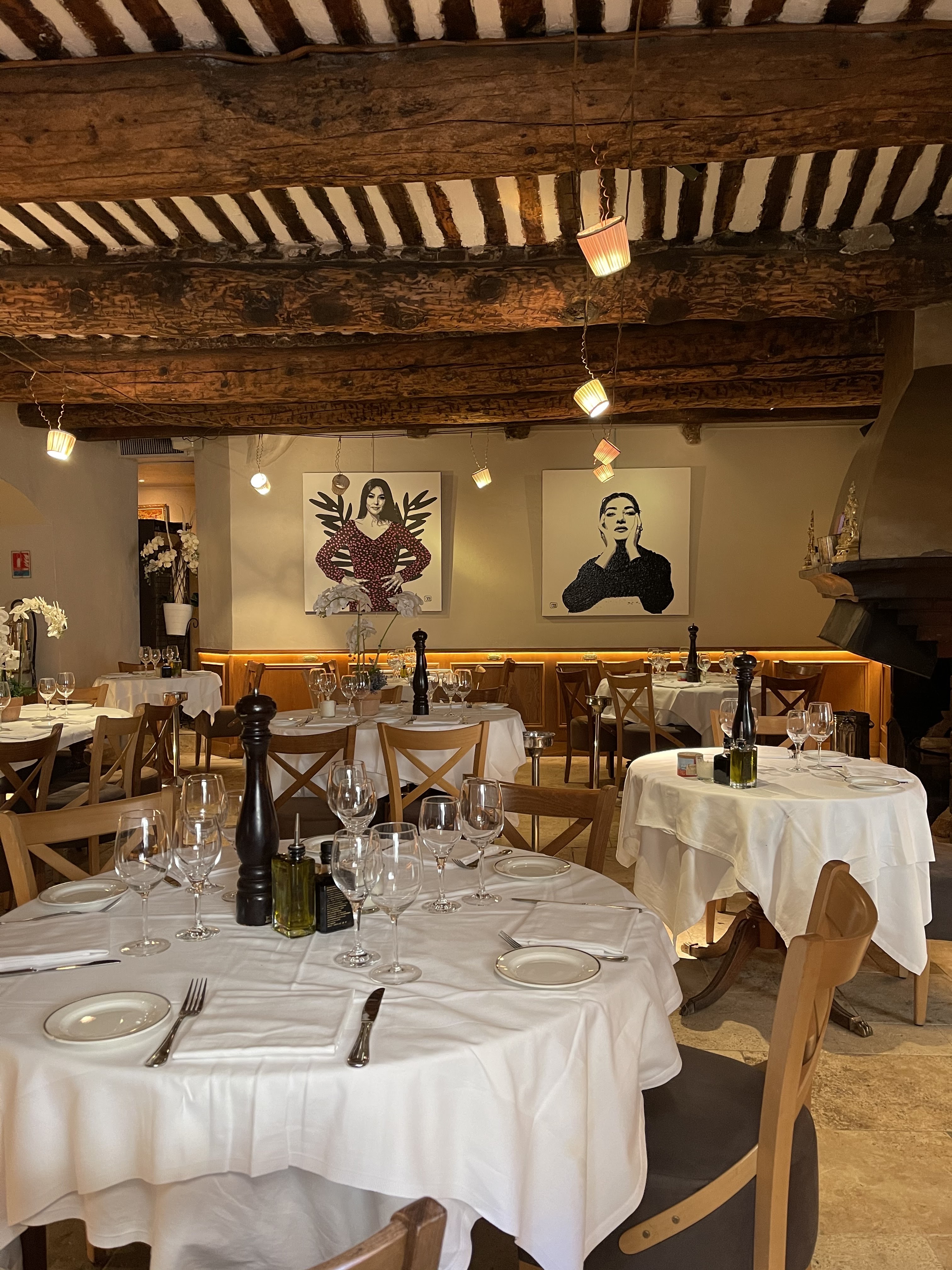 Très bon rapport qualité/prix -✅ Ambiance très chaleureuse, avec un super cadre. Le restaurant ne dispose pas de fenêtres à l‘intérieur mais la luminosité le soir est très apaisante et romantique. Le feu de bois apporte aussi beaucoup de charme. - ✅ Le service est top (bien qu’un peu express. À peine terminé l’assiette qu’elle était déjà enlevée). -✅ La cuisine est très bonne, belle présentation, et les desserts excellents (je recommande le tiramisu à l’italienne et le fondant au chocolat Valrhona qui étaient juste exquis). ❌Une seule critique : aucune sauce n’accompagne le magret de canard et très peu de sauce avec le poisson. Nous sommes venus dîner un soir et nous avons été très bien accueilli. Il n’y a cependant qu’un seul menu possible, à 48 € (entrée, plat, dessert avec toujours le choix entre poisson ou viande ou option végétarienne). Ce restaurant vaut totalement son prix eu égard à sa localisation, sa décoration, son service et sa cuisine.