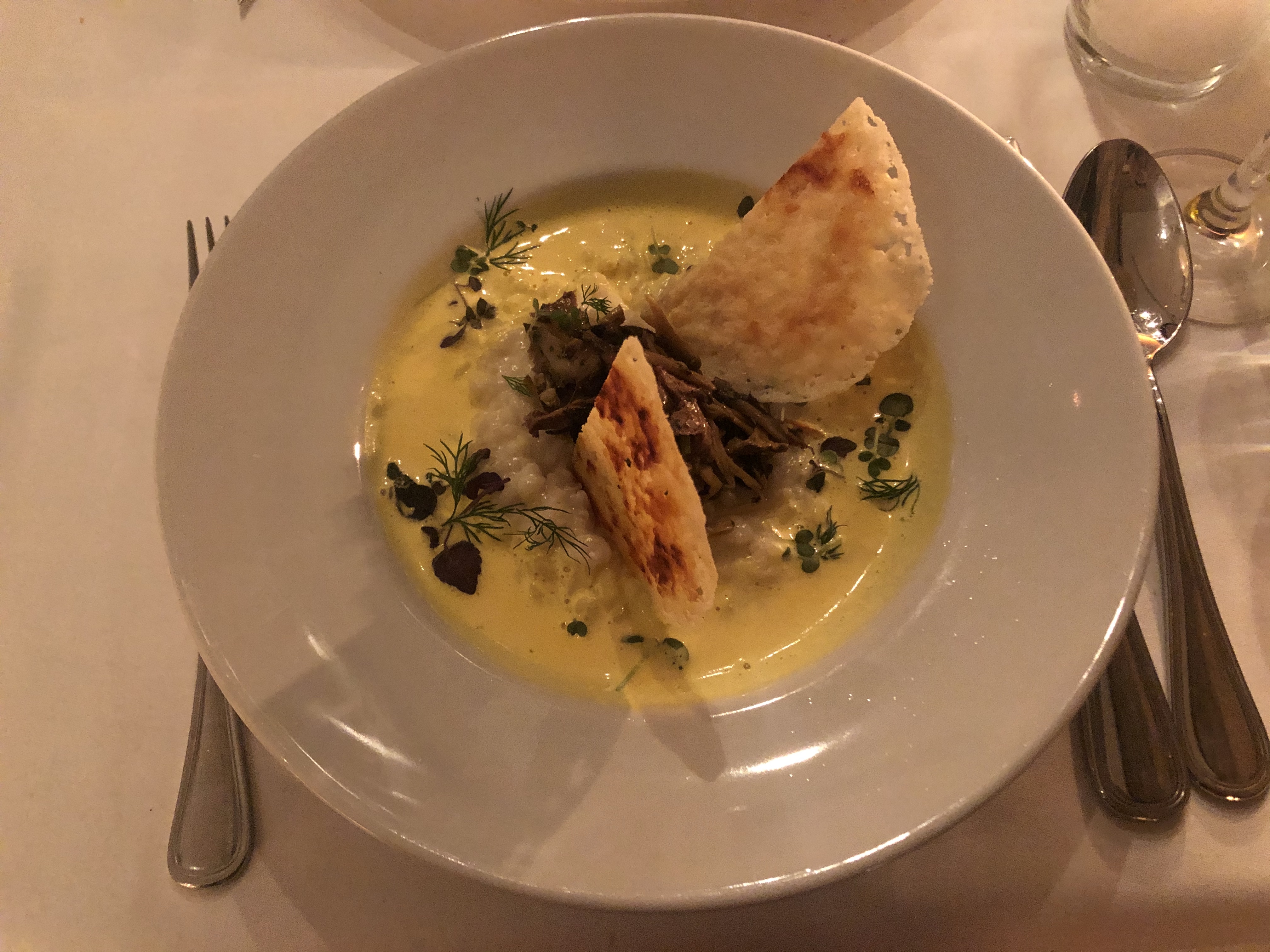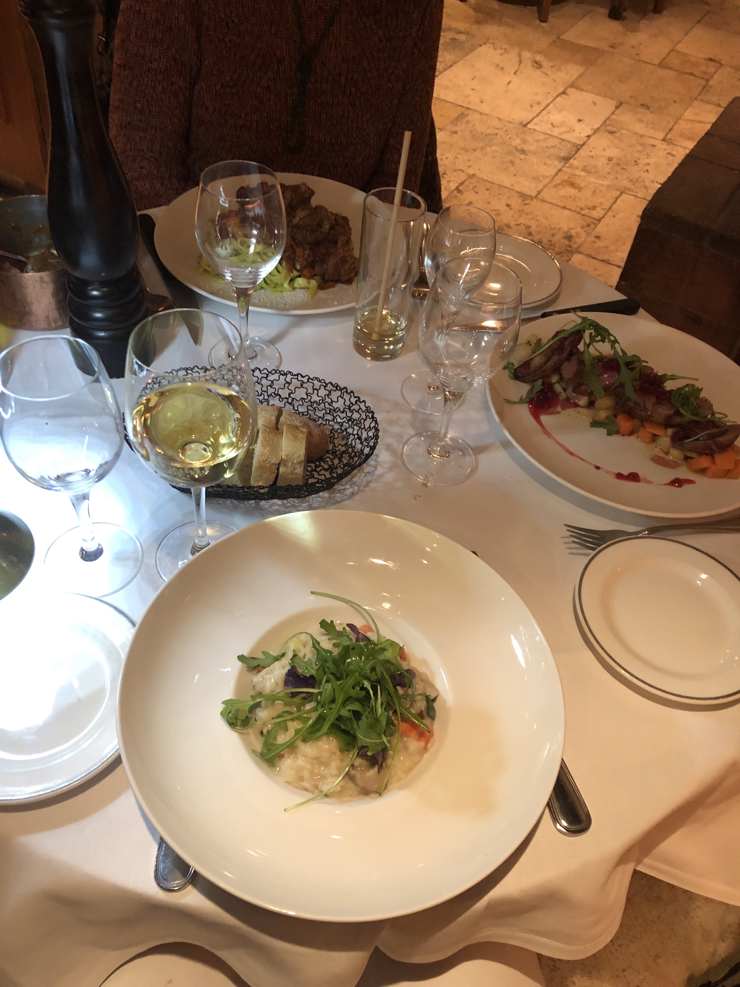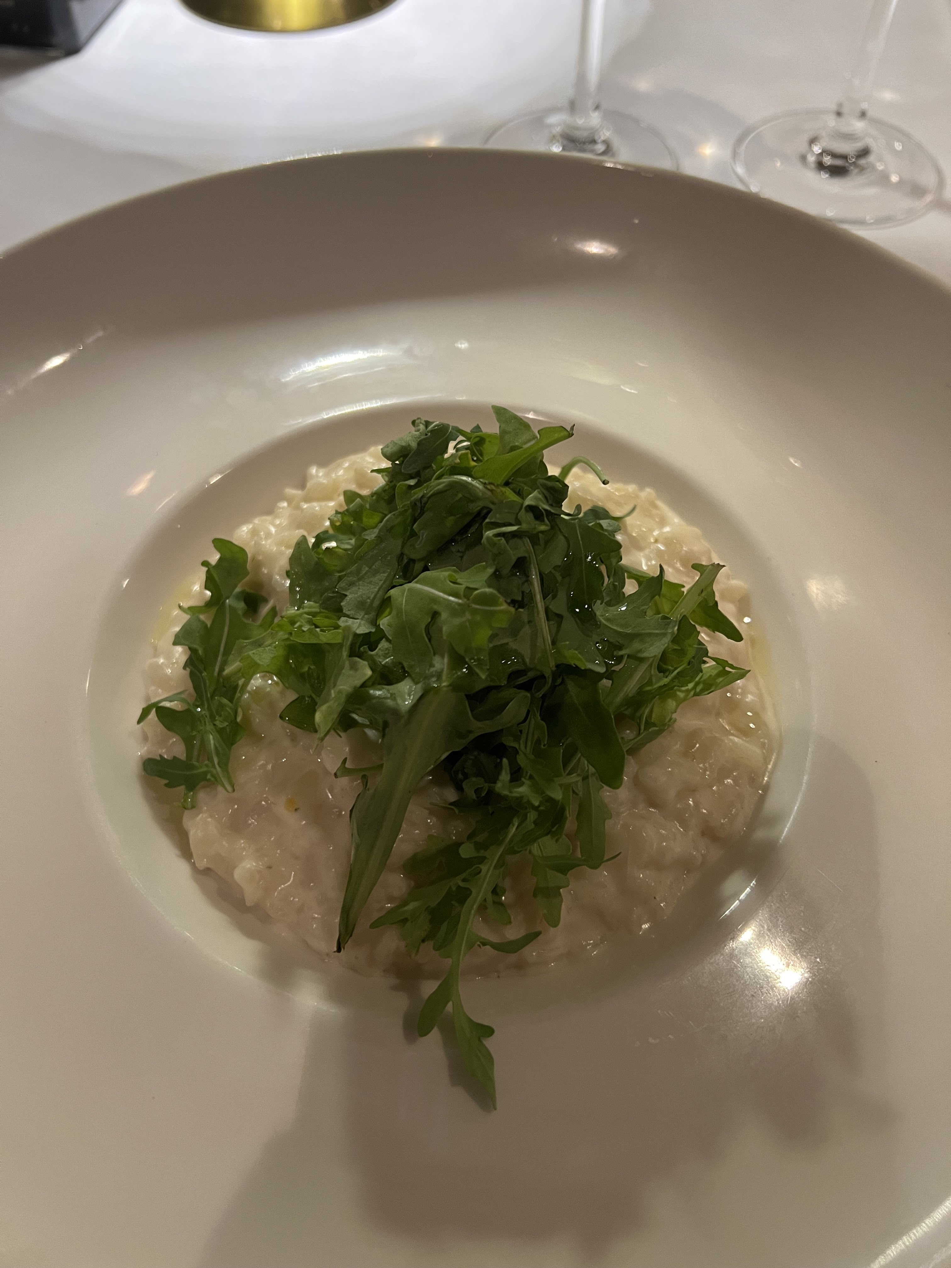 Le repas était correct. Le risotto était très savoureux. Cependant, je ne pense pas que ce soit le niveau Michelin. Les prix du vin étaient plus que trop chers. Peu après 21 heures, la musique était si forte qu'on aurait dit qu'ils essayaient de demander aux invités de partir.