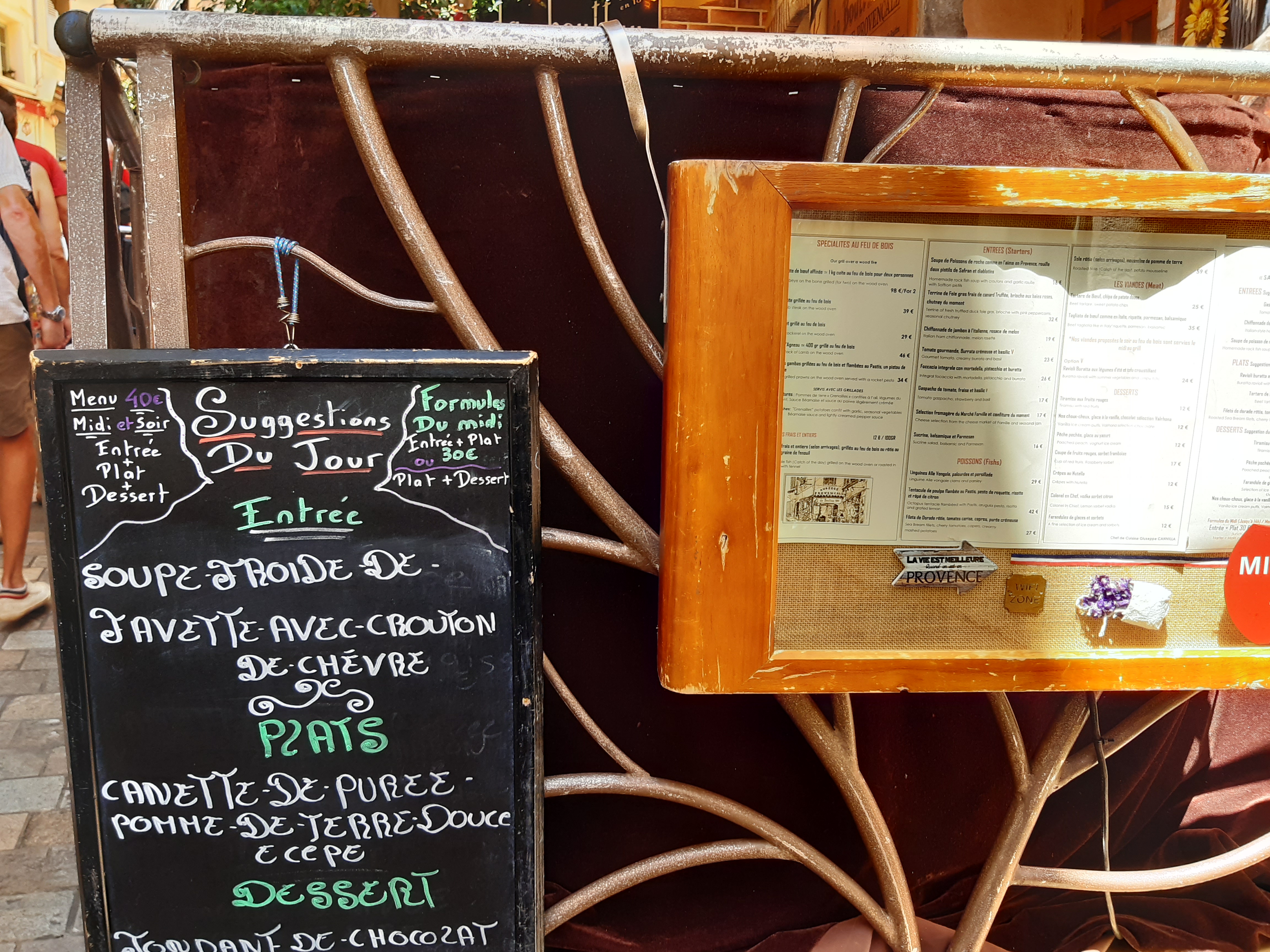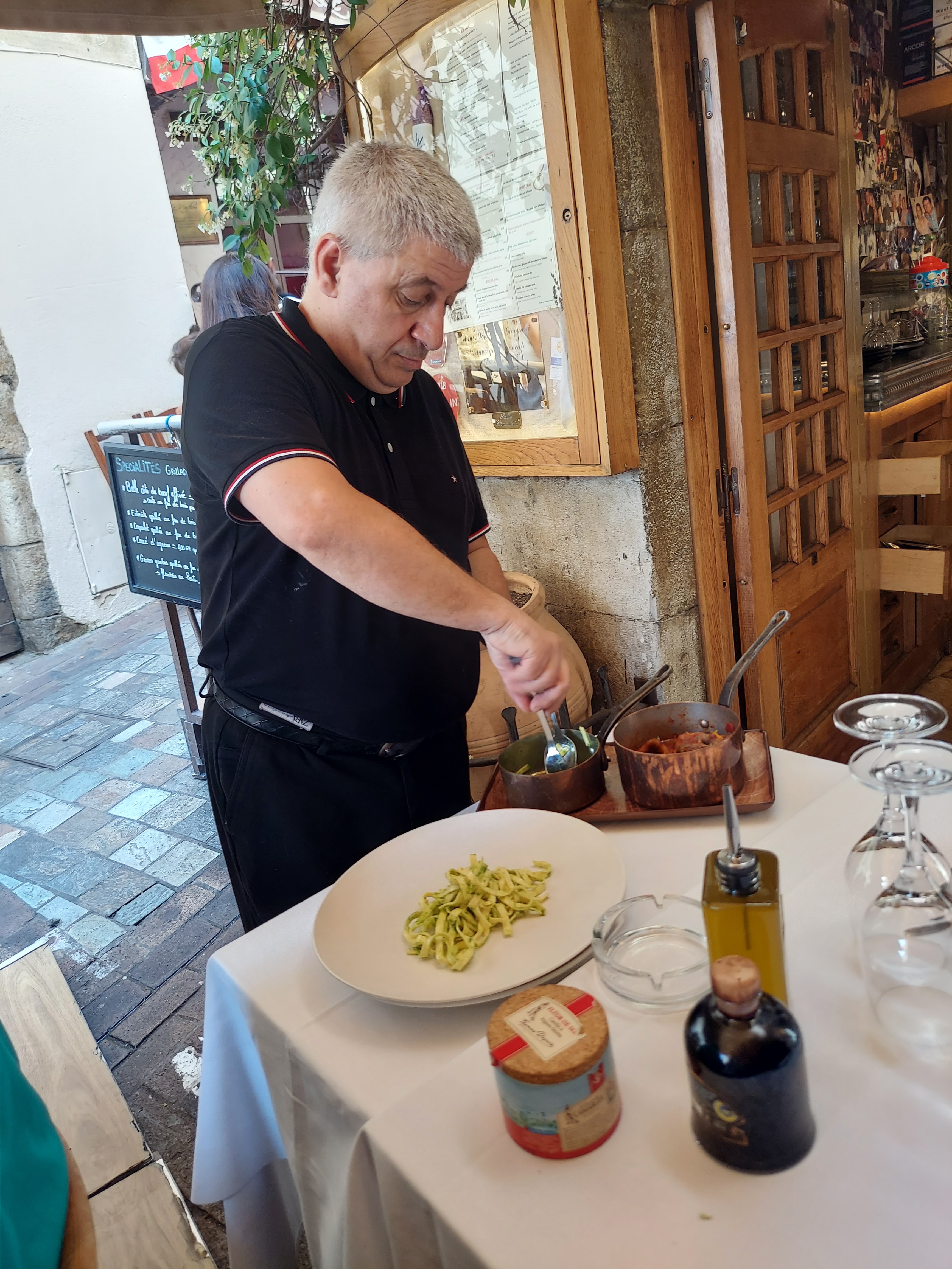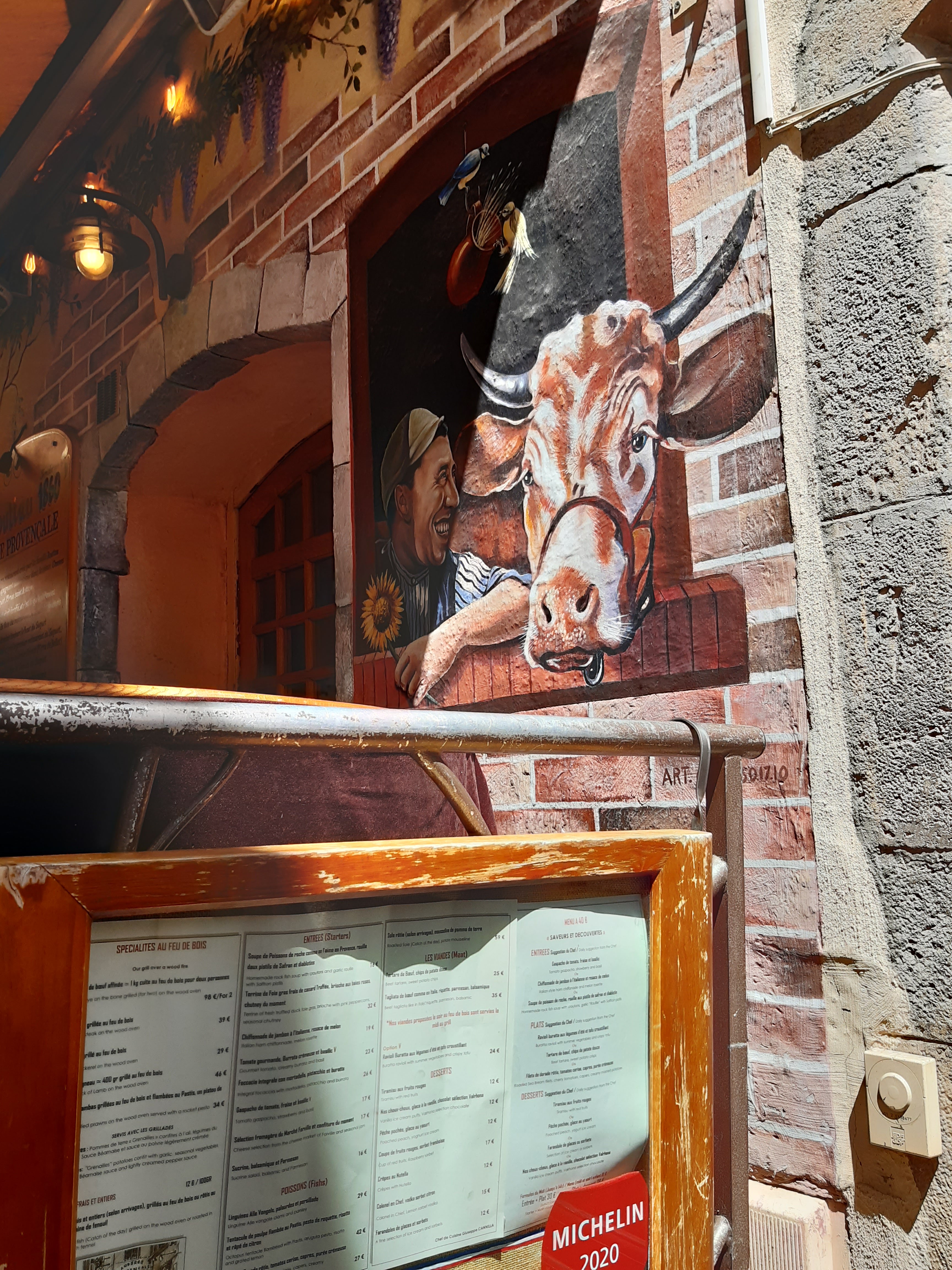 C'est amusant de se laisser capturer par un serveur malin qui nous guide vers LA TABLE qui nous attendait (alors que nous n'avions pas réservé). L'un des plus ancien restaurant du Vieux Cannes où en septembre la clientèle est essentiellement composée d'habitués locaux aimant se faire plaisir. Rien d'extraordinaire sinon l'ambiance et l'accueil qui nous fait oublier que nous sommes des touristes !