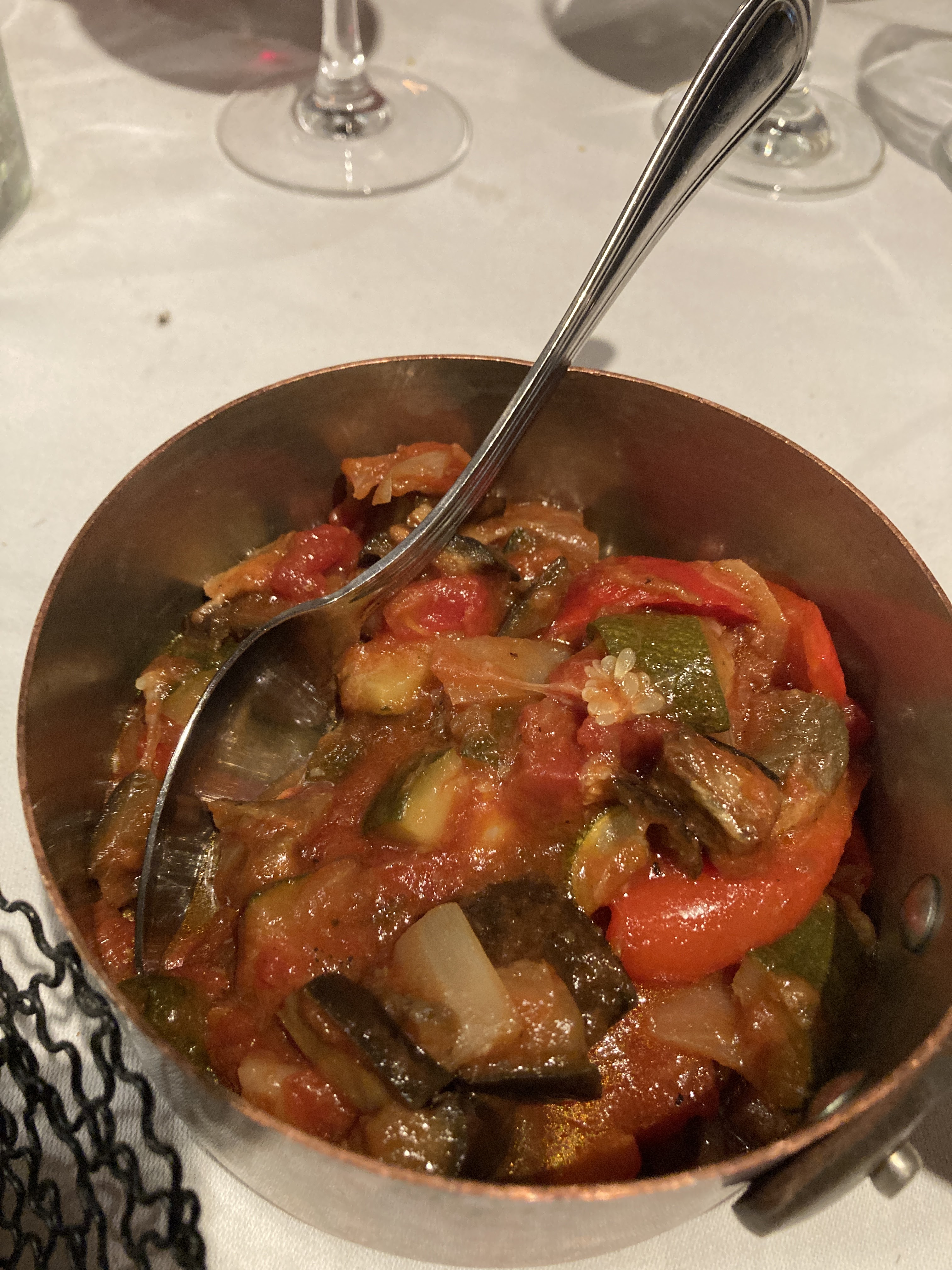 Très agréable intérieur. ..bonne réception. ..plat avec une délicieuse ratatouille poisson avec un nom venu d un pays lointain. ...dessert du jour!!!!fraises revisitées! !!decongele les fraises minables...très peu de clients...mais nous nous sommes servis le vin en permanence ...dommage on nous l avait recommandé. ..127 euros quand même. ..
