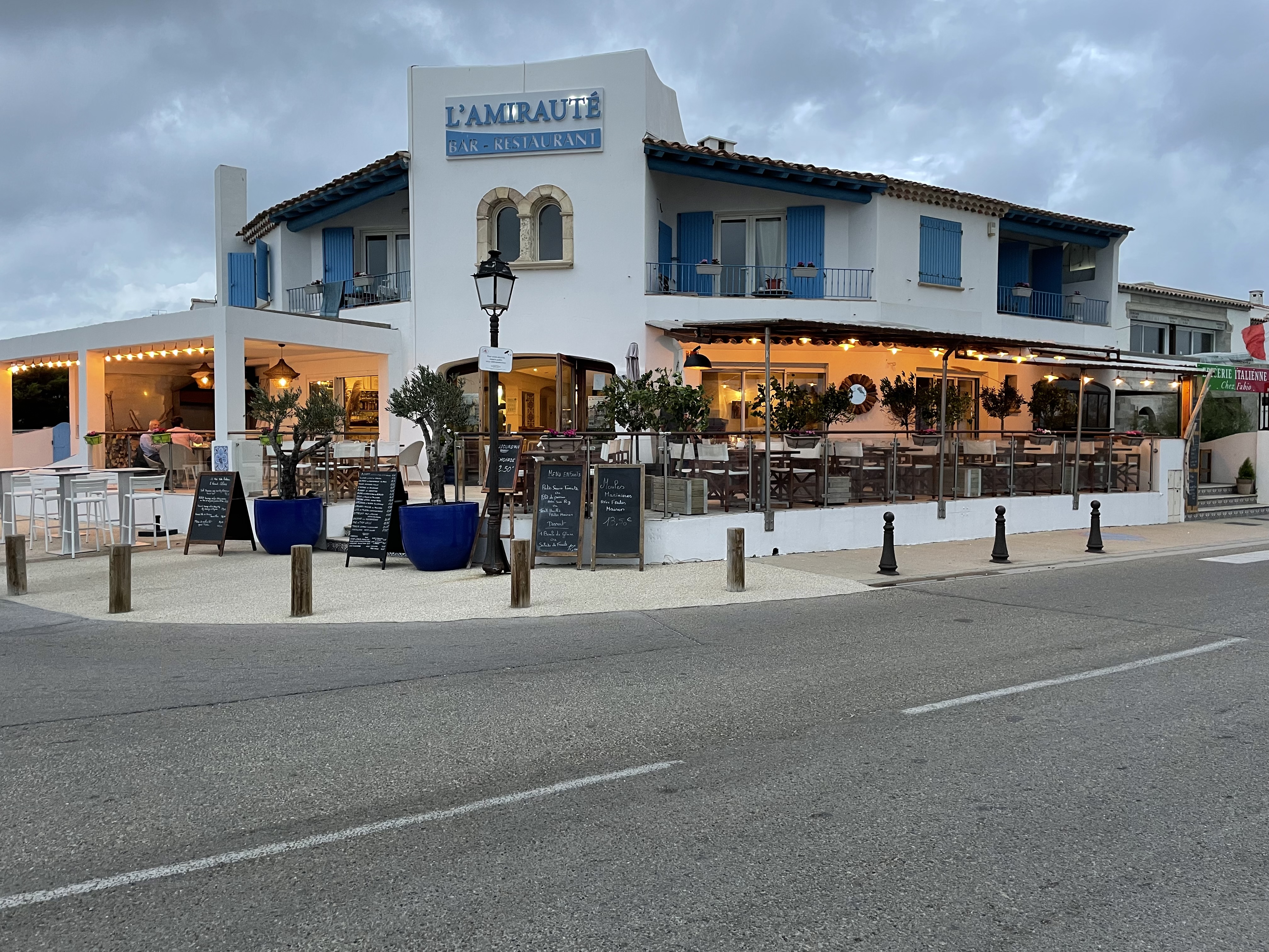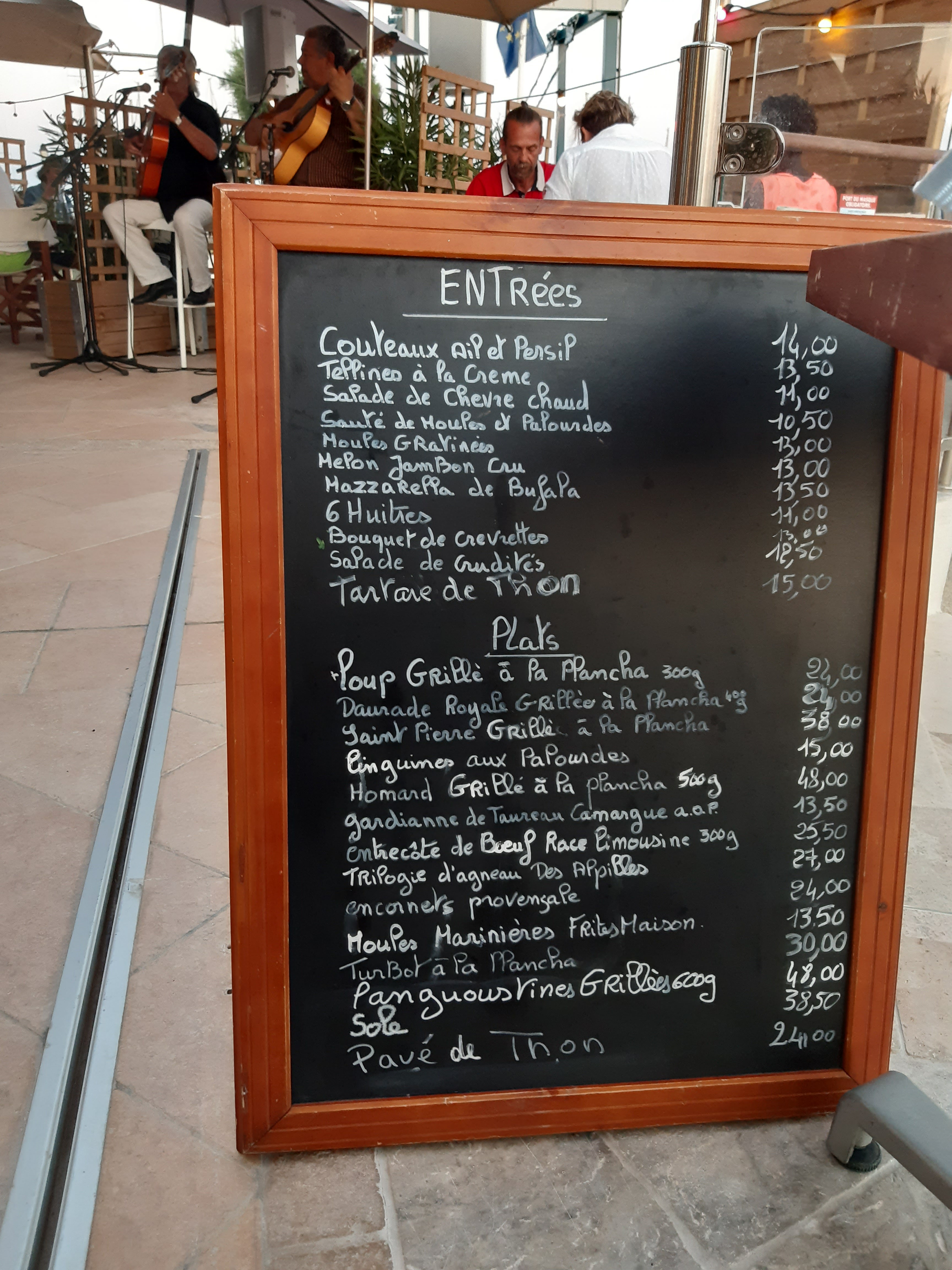 Très bonne expérience à l'amirauté! Poissons et fruits de mer frais! La burrata est excellente! Nous avons passé une très bonne soirée avec un groupe de musique gitane en accompagnement!