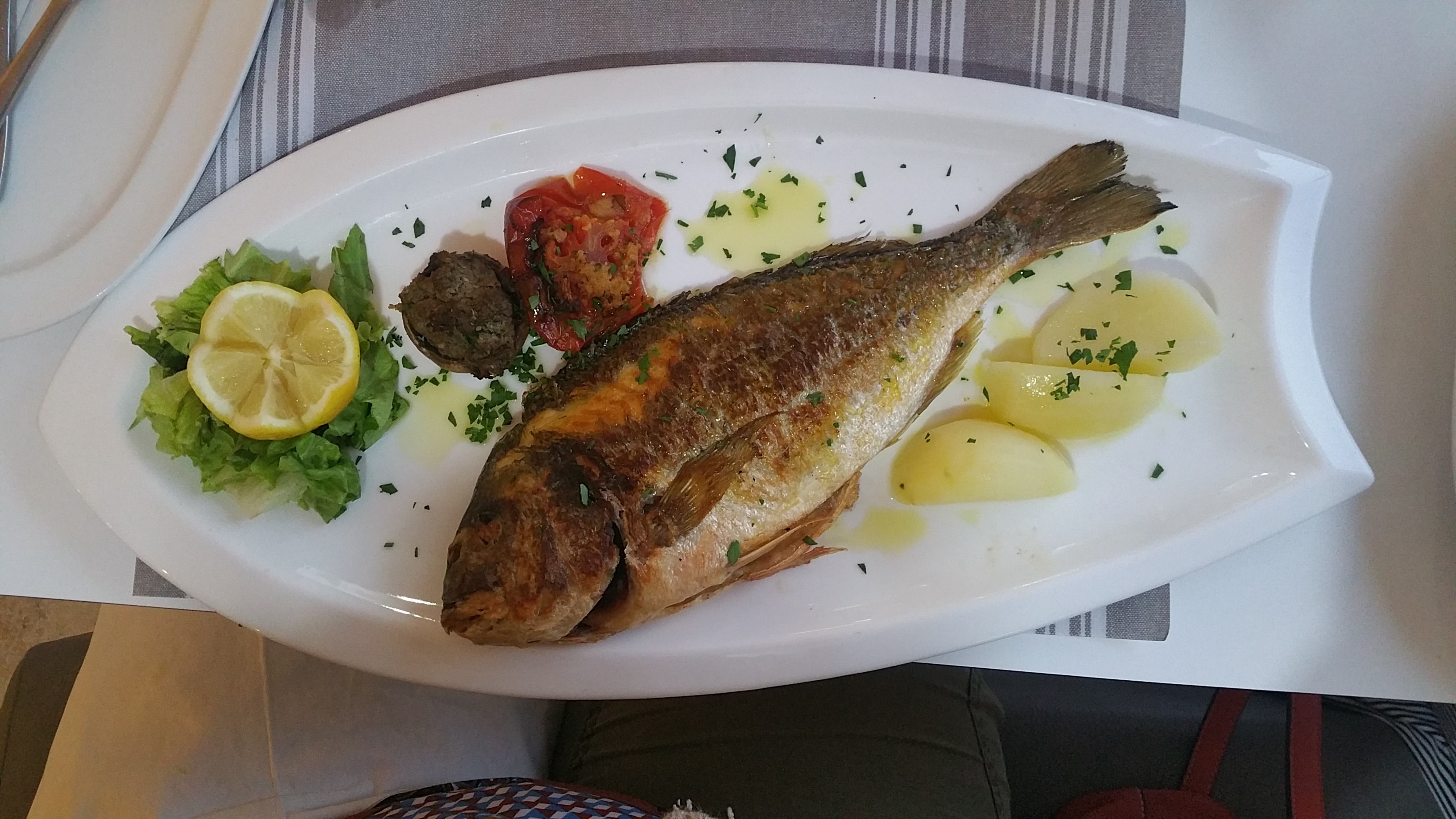 Restaurant de poissons sur le port de St Marie. Service rapide et agréable. Les plats étaient correctes, le dessert sans plus. On a pris un verre de vin blanc au verre mais on nous a pas présenté le vin, origine ect...