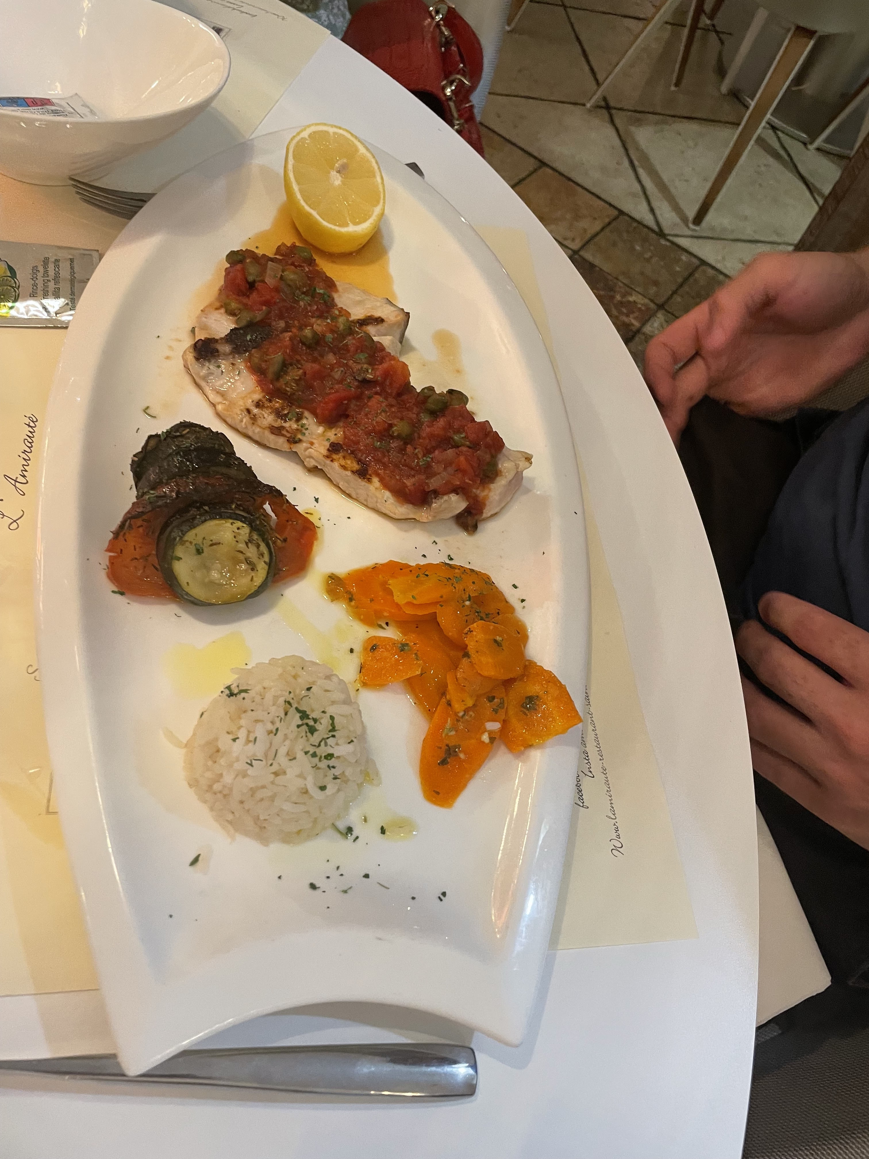 Belle adresse à découvrir tout d’abord très joli restaurant avec une belle disposition et accueillant.Les assiettes sont copieuses et tout était très bon, sauf pour les enfants nous n’avions pas compris nous pensions voir arriver des pâtes sauce tomate mais non c’était des pâtes blanches et des tomates cerises ils étaient déçu… sinon le service très pro et aux petits soins c’est agréable.