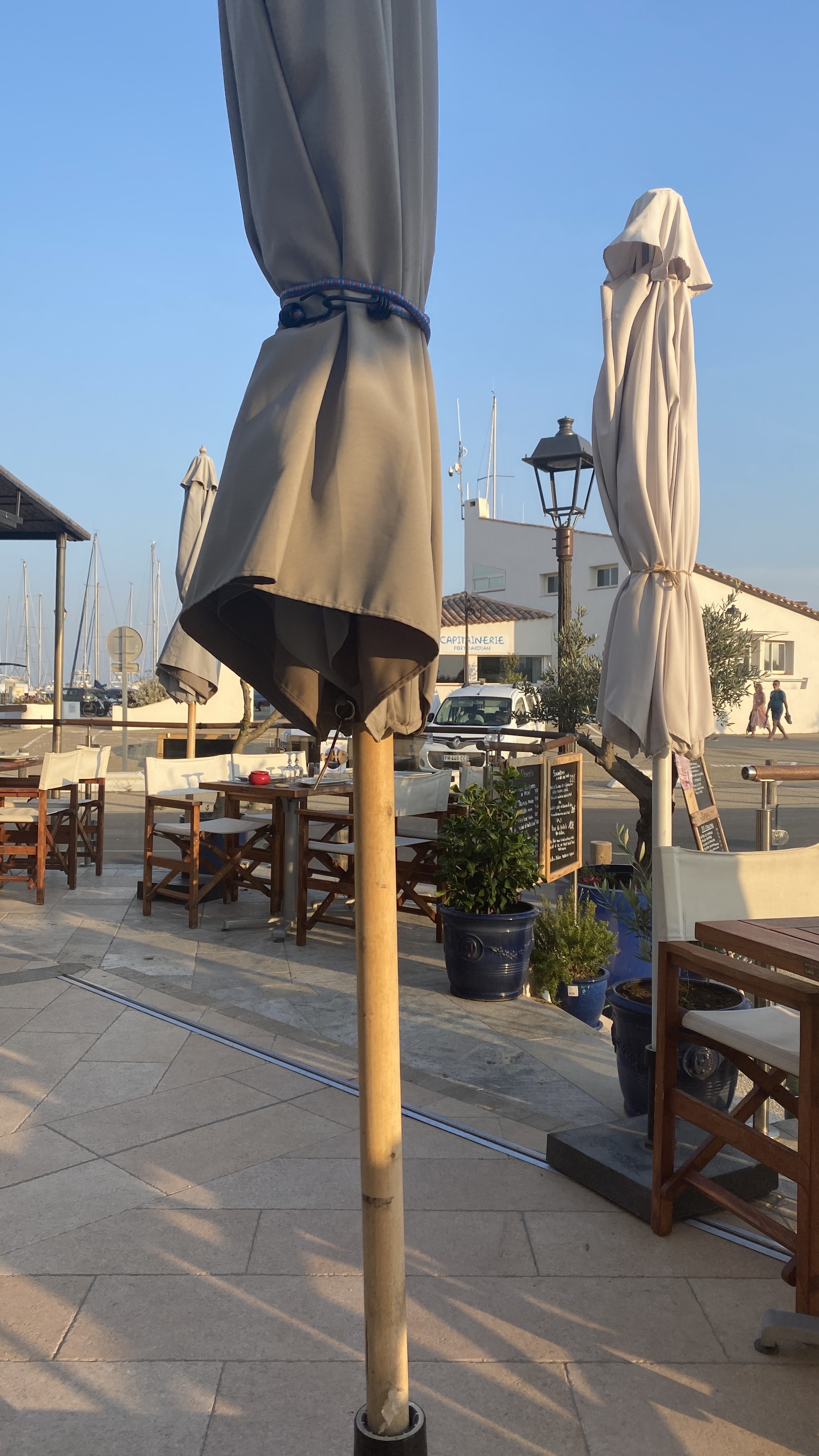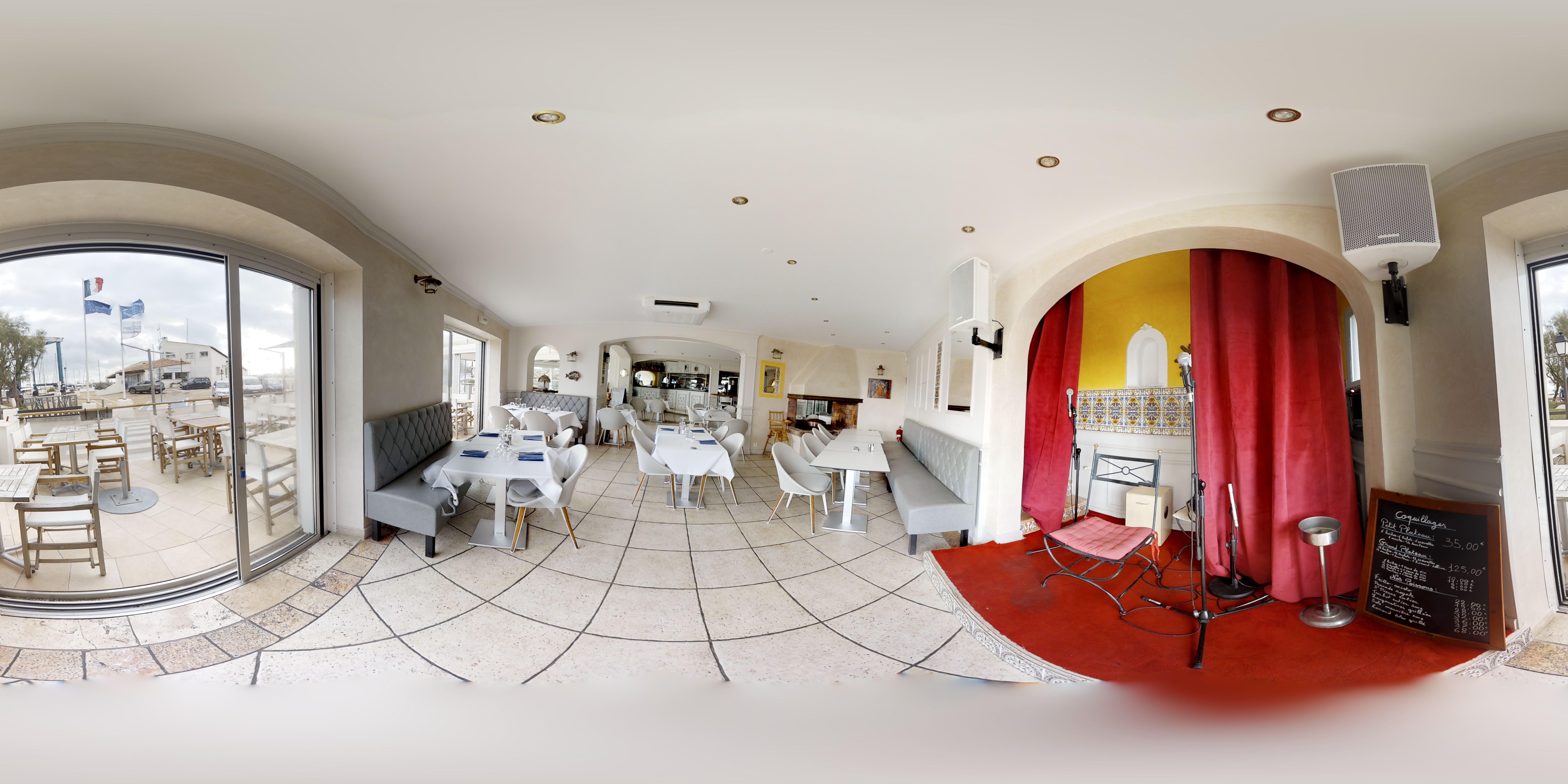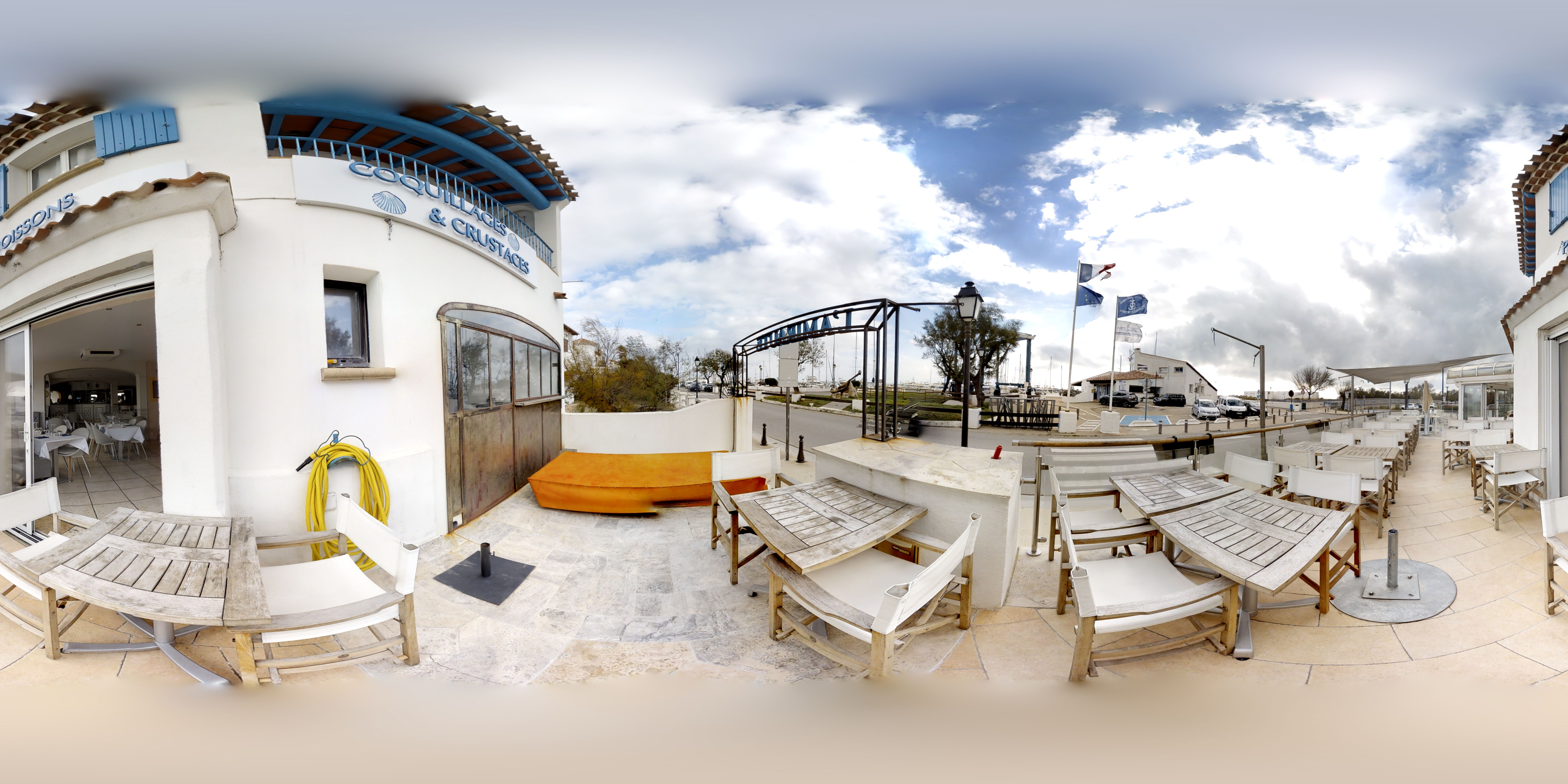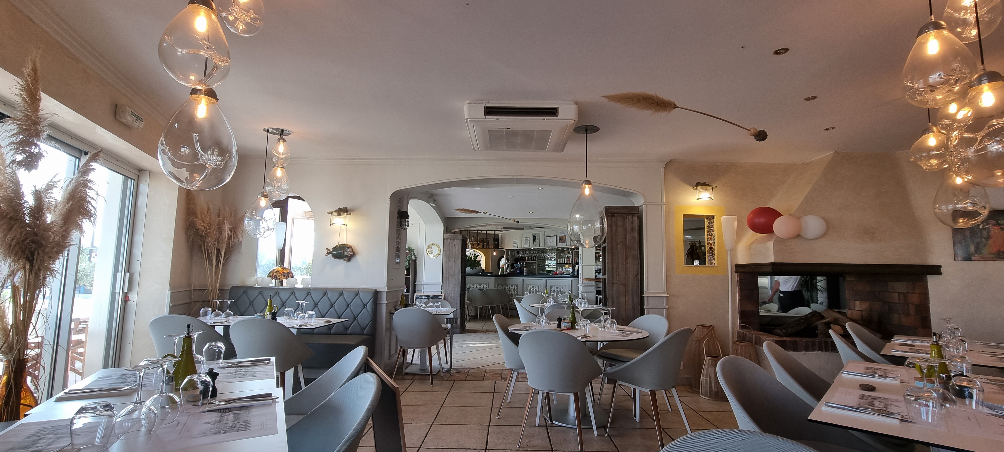 Un bel endroit, avec vue sur la mer et le port avec les bateaux. De même que le calme et la paisibilité de l'environnement qui nous entoure se retrouve dans l'ambiance de ce restaurent. En effet, un calme agréable règne avec tout de même un peu d'animation rendant cela conviviable. Toutefois cela n'empêche pas et ne gâche pas le coté très chic du restaurant. De plus ce restaurant est bien décorée, nous rappelons bien la mer, les vacances. Puis, les serveuses sont fortement agréables, souriantes demandant l'avis, si cela nous suffit. De plus sont bienveillantes et accueillantes. (Nous ont même demandés si à la place des légumes on voulait quelque chose d'autres). Sur cette générosité, elles venaient discutées avec les clients, rigolaient. Elles nous ont mis vraiment à l'aise. Après, les choix à la carte sont inspirants et variés (pour tous les goûts) avec des prix allant de 15 euros à peu près à 30 euros max pour le plat (à noter que les plats sont gros, donc un niveau qualité prix très très bien). Ce jour j'avais pris, la daurade à la plancha accompagné de petits légumes et du riz de Camargue. C'était juste succulents et la daurade énorme et frais. Le poisson de ce restaurant qui est proposé est selon les arrivages; le matin donc il n'y a que du poisson frais. Nous avons été servie dans un temps d'attente correct, même très bien, pour de très grands et gros plats, biens garnis. De même que les plats sont bien assaisonnés. Au niveau des desserts, pareille que pour les plats; excellent. Des glaces juste exceptionnelle. Je vous recommande ce restaurant faisaient grand, très grand restaurant de chef étoilé. Le calme, le cadre très jolie avec de beaux et gros plats délicieux.