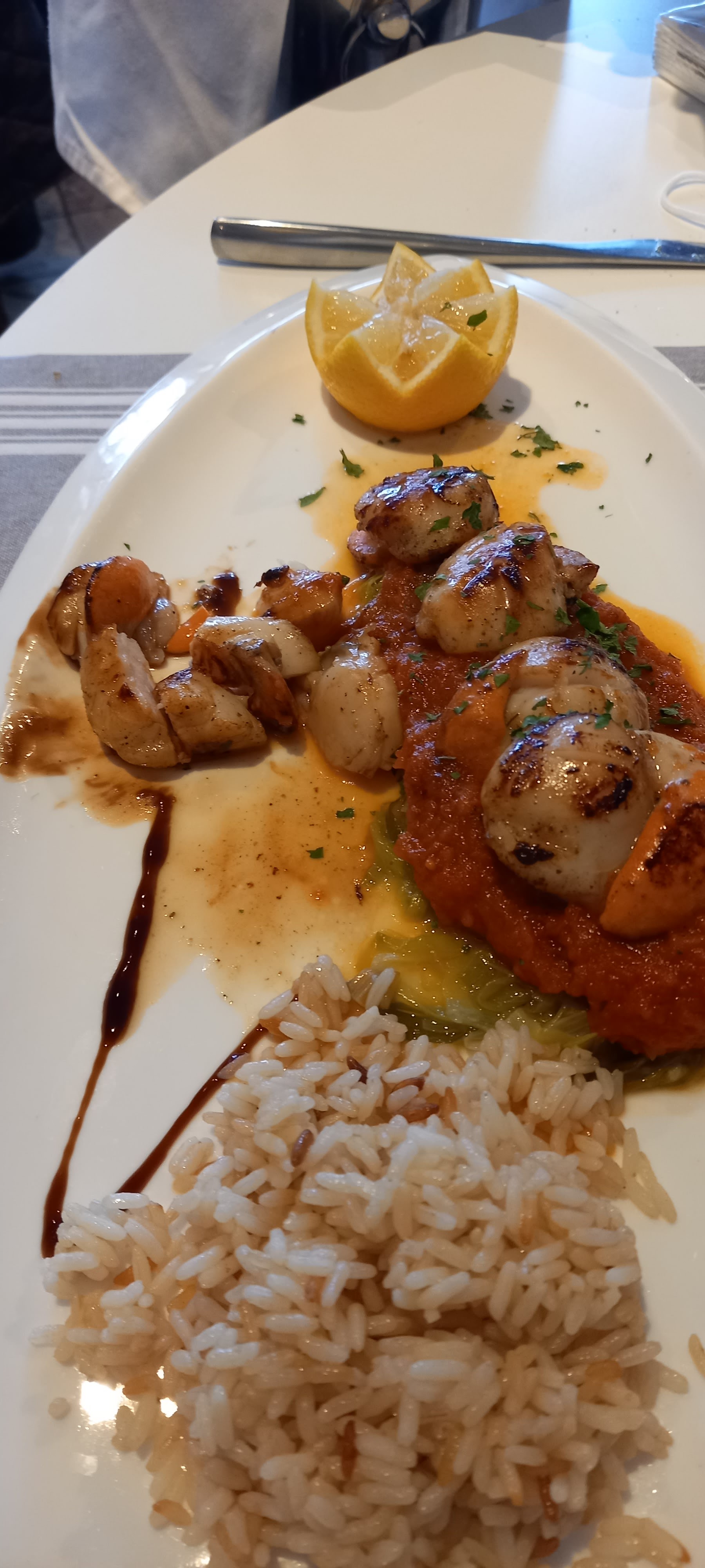 Nous avons passé une excellente soirée. Le service est très aimable, les patrons sympas comme tout, le poisson était excellent et tout était cuisiné et présenté avec beaucoup de soin. Il y avait deux musiciens de flamencos qui ont accompagné cette soirée de façon très agréable.
