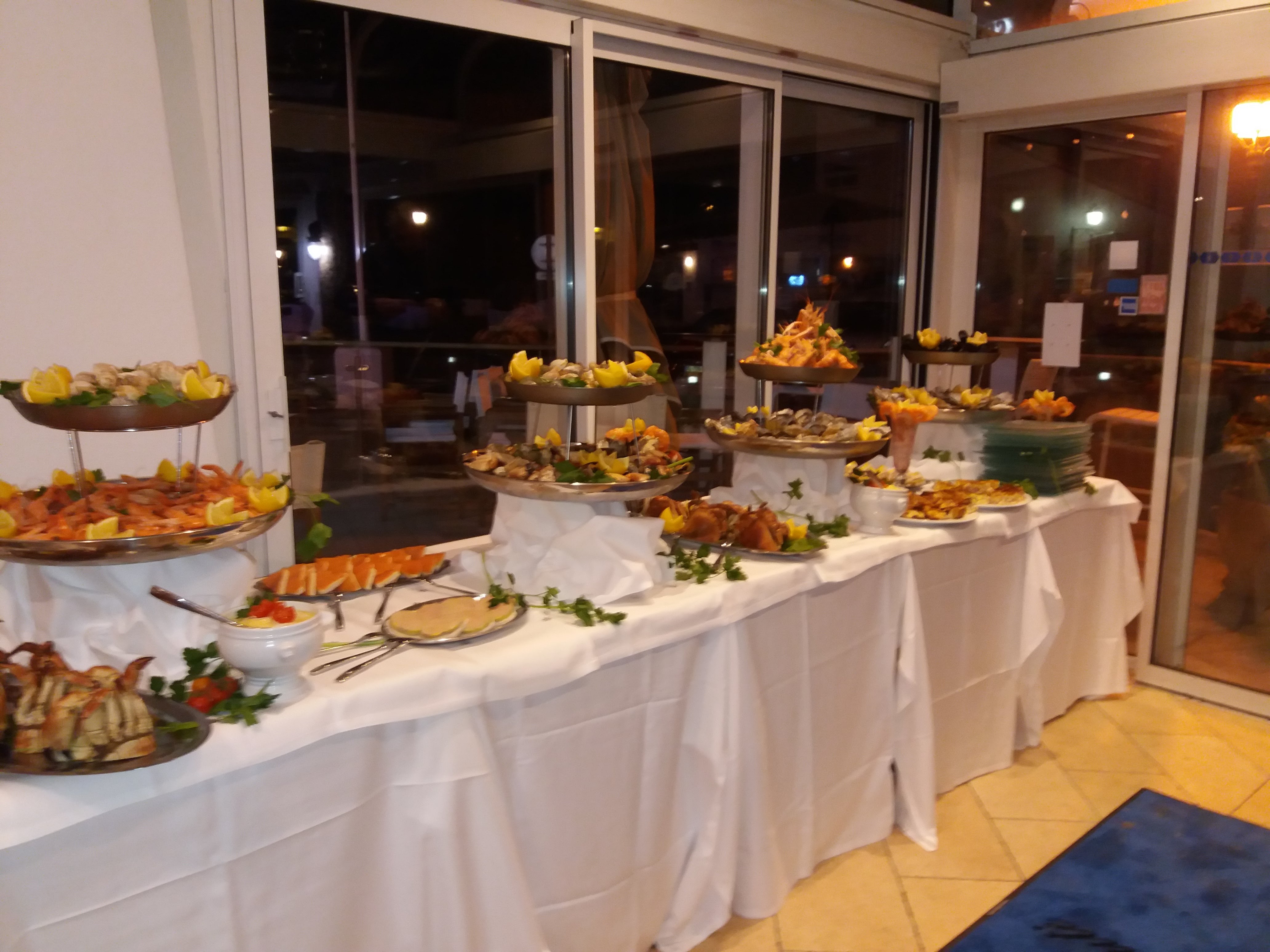 Un 1er janvier face à la mer .... Restaurant accueillant, personnel sympathique, table réservée peut être trop proche de l entrée et souvent froid.... Plats corrects, servis trop rapidement pour un jour de l an !...les entrées servies avec l apéritif.... Nous aurions aimé profiter de ce moment tranquillement pour trinquer à la nouvelle année... Dommage que la note nous a été présentée au même moment que les desserts.....nous n avions pas réellement terminé !!! Le digestif nous a été offert en guise de rattrapage, merci, mais .....!!!!