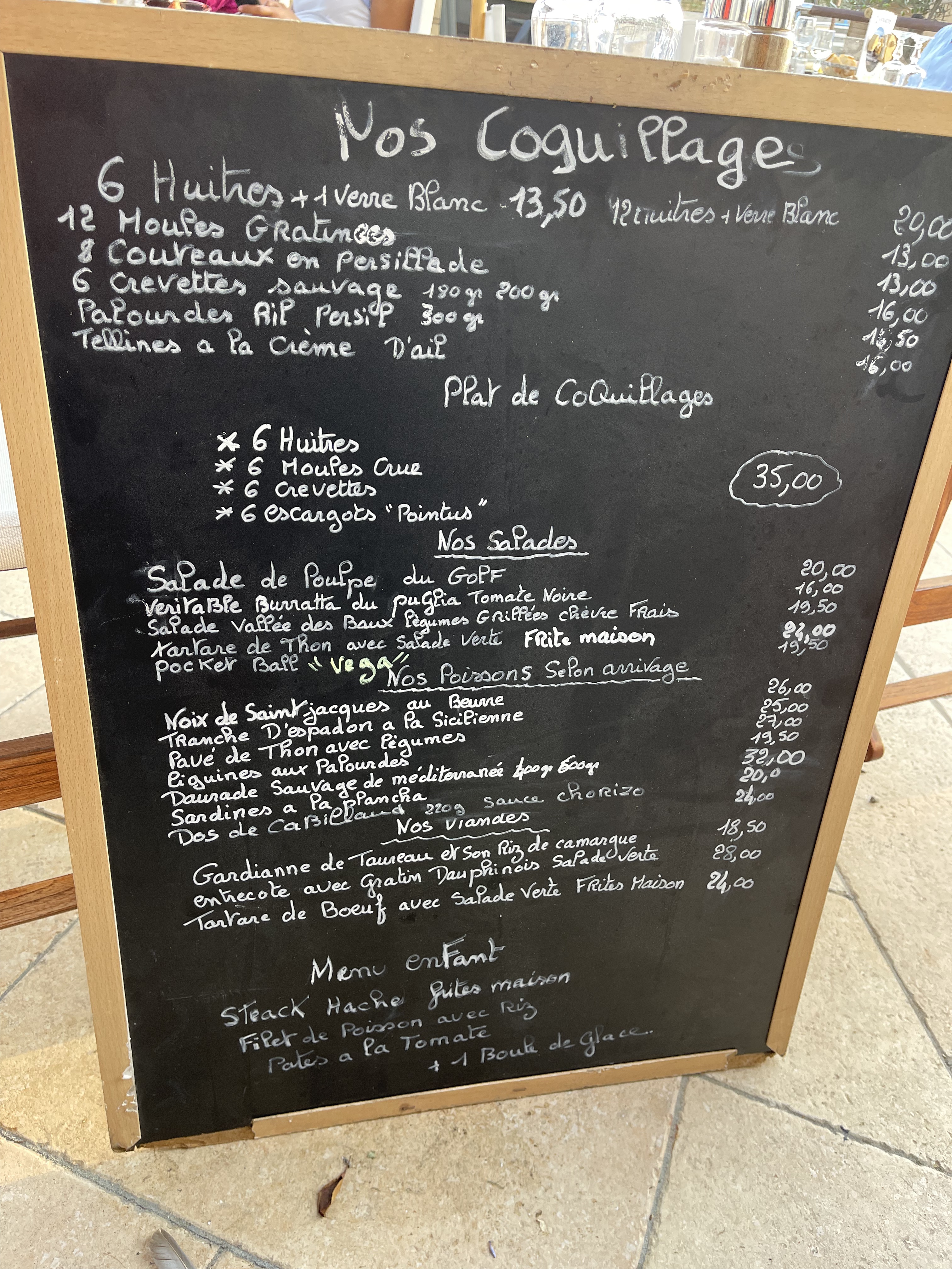 Accueil excellent Etablis plein soleil couchant camarguais. Excelle dans coquillages produits de la mer Sauf aujourd hui au fond de ma grande coupe chantilly les deux boules de glace étaient déjà fondues Je. recommande la daube de toro riz de camargue. Sauce tb. Hors concourt. Person qualif Manu marseille.