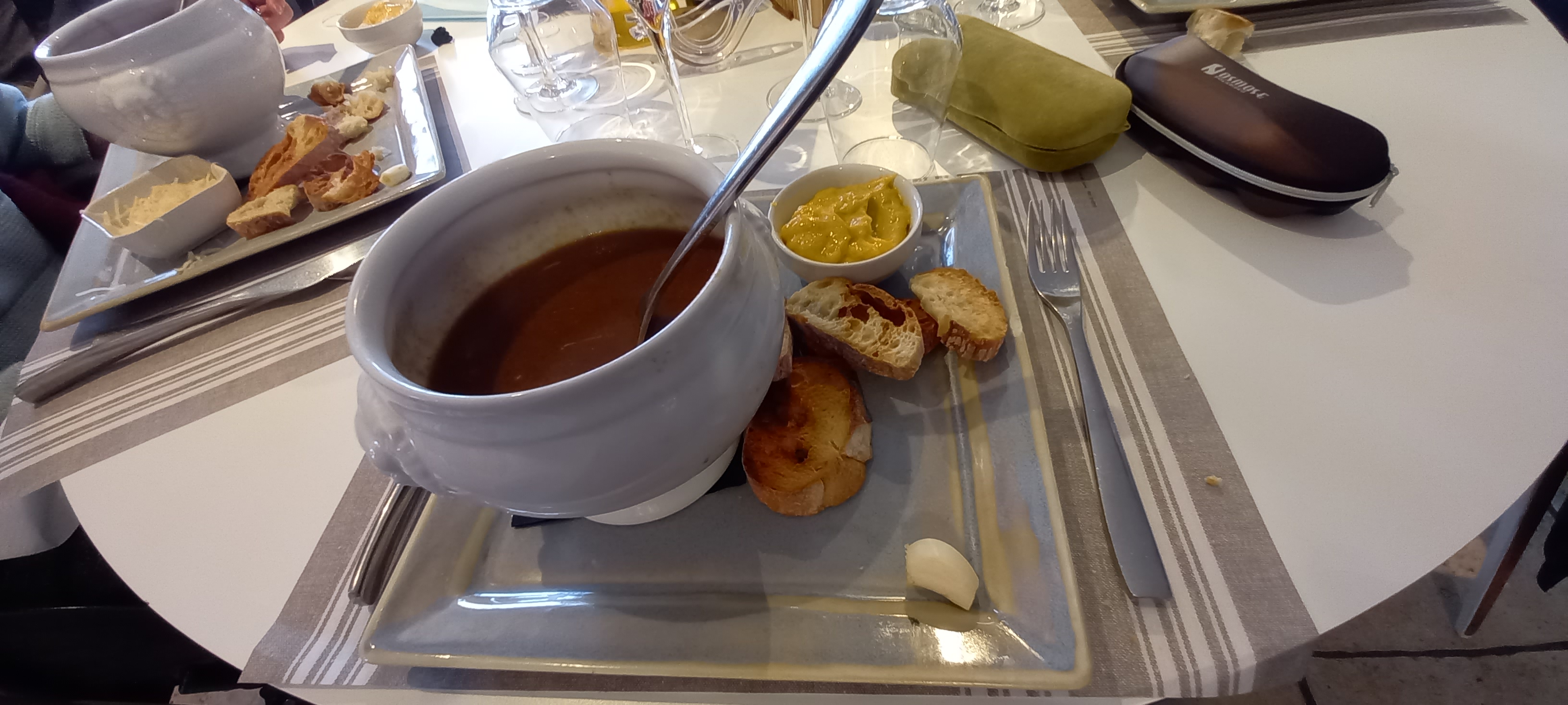Soupe de poisson très très liquide, Gardianne trop trop salée, et goût du vin trop présent.. serveuse très antipathique. Accueil laissant à désirer... dommage, je n y viendrai plus.
