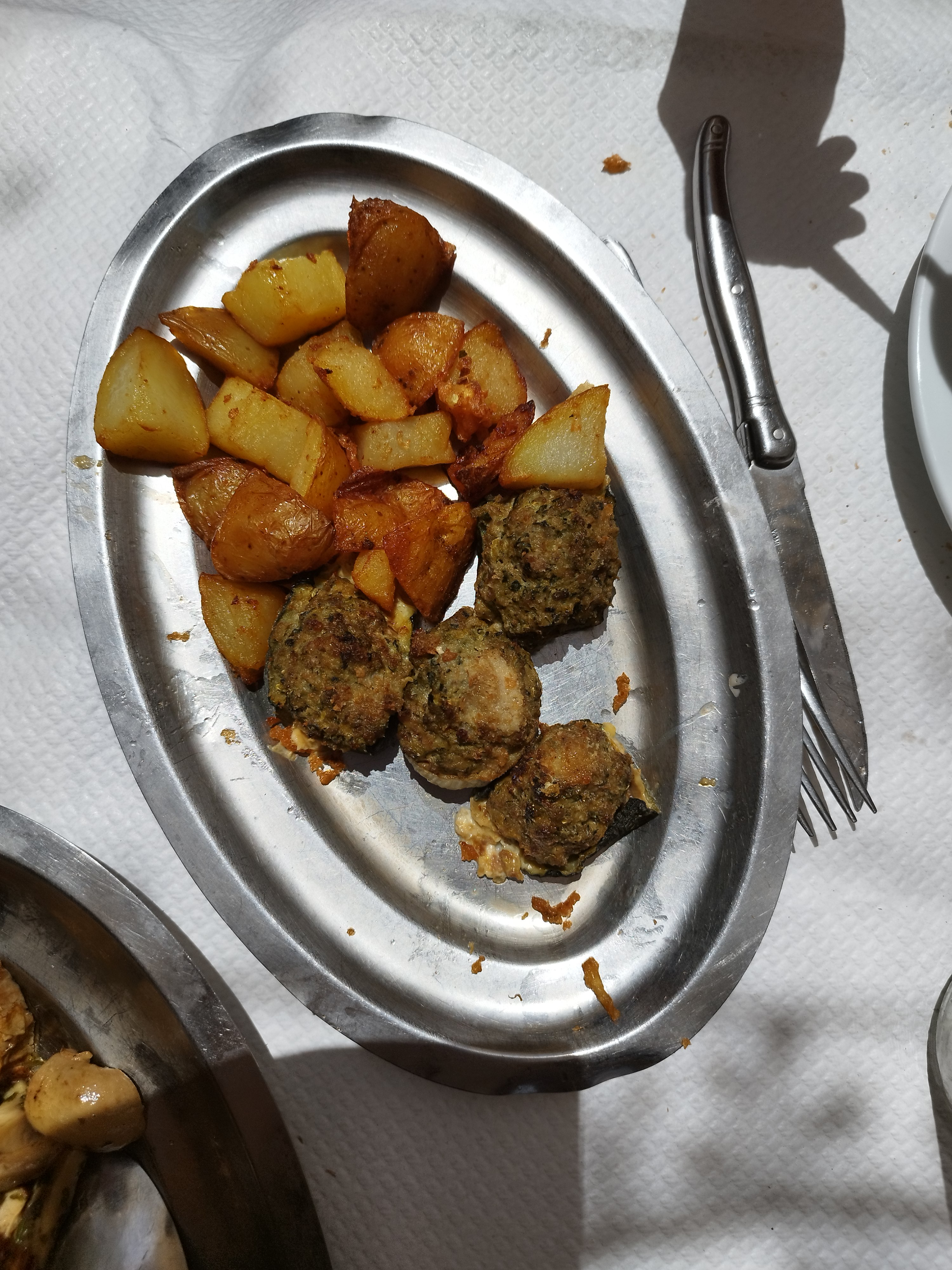 Des raviolis farcis à la pâte. Des petits farcis farci avec de l'herbe de Provence, certes mais de l'herbe quand même. Un beignet de fleur de courge par personne et quelques pommes de terre sautées. Une daube excellente. Dommage j'avais pris un rôti de veau qui était sec et sans trop de goût. Des gnocchis à la pomme de terre excellents dans une sauce parfaite. Dommage, j'avais pris des raviolis. Le dessert excellent le service parfait et l'addition 50 €. Je trouve un peu cher.
