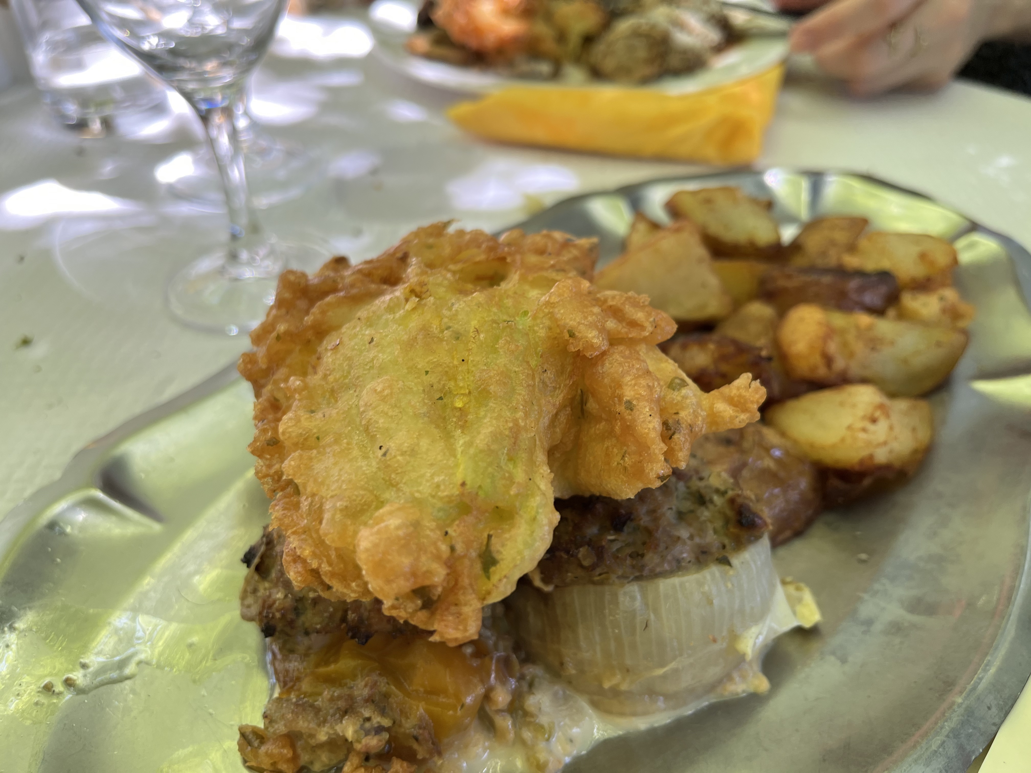 On a commandé deux menus à 30 € chacun, le plateau de charcuterie c'était deux tranches de saucisson, mortadelles et jambon cru pareil. Le lapin était bon mais rien d'exceptionnel, les fleurs de courgettes très bonnes et le dessert aussi. La prochaine fois ça sera gnocchis