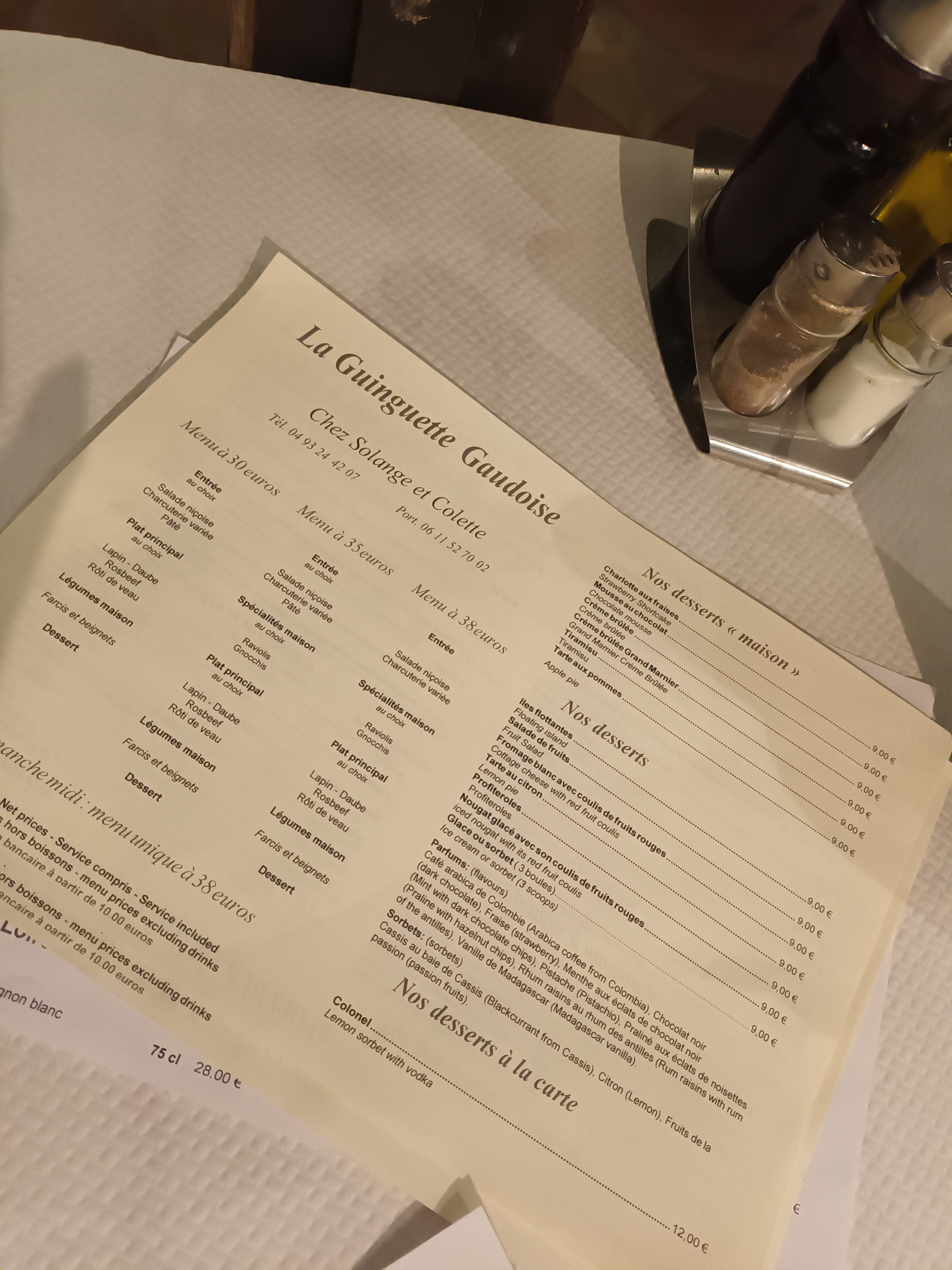 Un super moment comme d'habitude, des plats extra, le menu a 35€ et vraiment complet, endroit pittoresque une référence depuis très longtemps !!!!les beignet de fleur de courgette sont fabuleux, enfin bref on recommande sans souci allez y les yeux fermés!!! L'ambiance et familiale nous avons êtes reçus comme a la maison, tout ce qu'ont aiment.