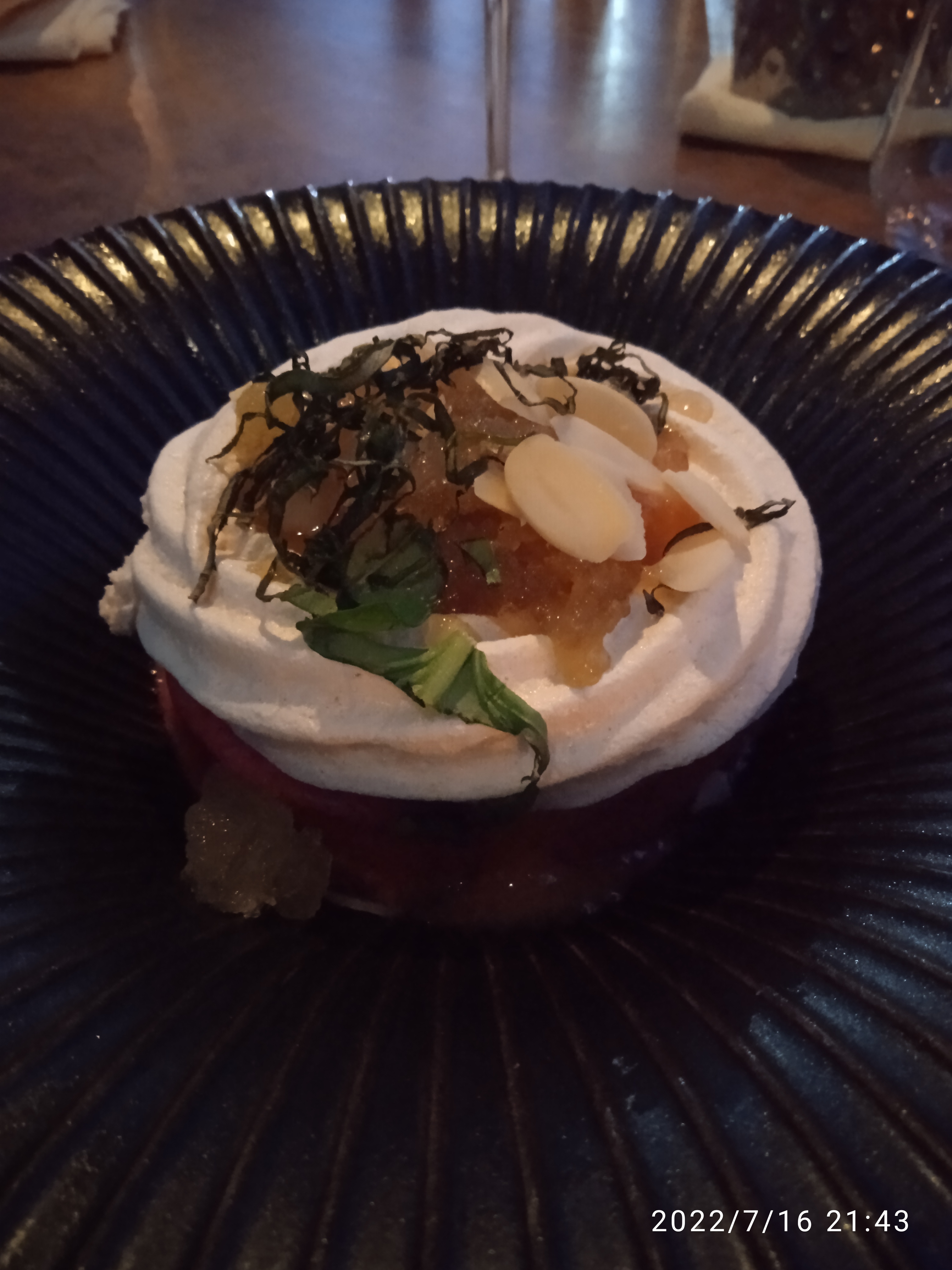 Soirée tapas ok. Tarif un peu excessif, ambiance pas top par rapport aux annonces sur les réseaux, je m'attendais a bcp mieux je suis deçue... Musique très discrète car le restaurant a élu domicile dans une villa plein coeur de quartier pavillonnaire. Cadre sympa mais sans plus, vraiment, on mange autour d'une piscine, voilà....Les serveurs sont nombreux et un peu trop présents à la table...un trois etoiles pour les pâtisseries qui sont bonnes mais portions trop insuffisantes.