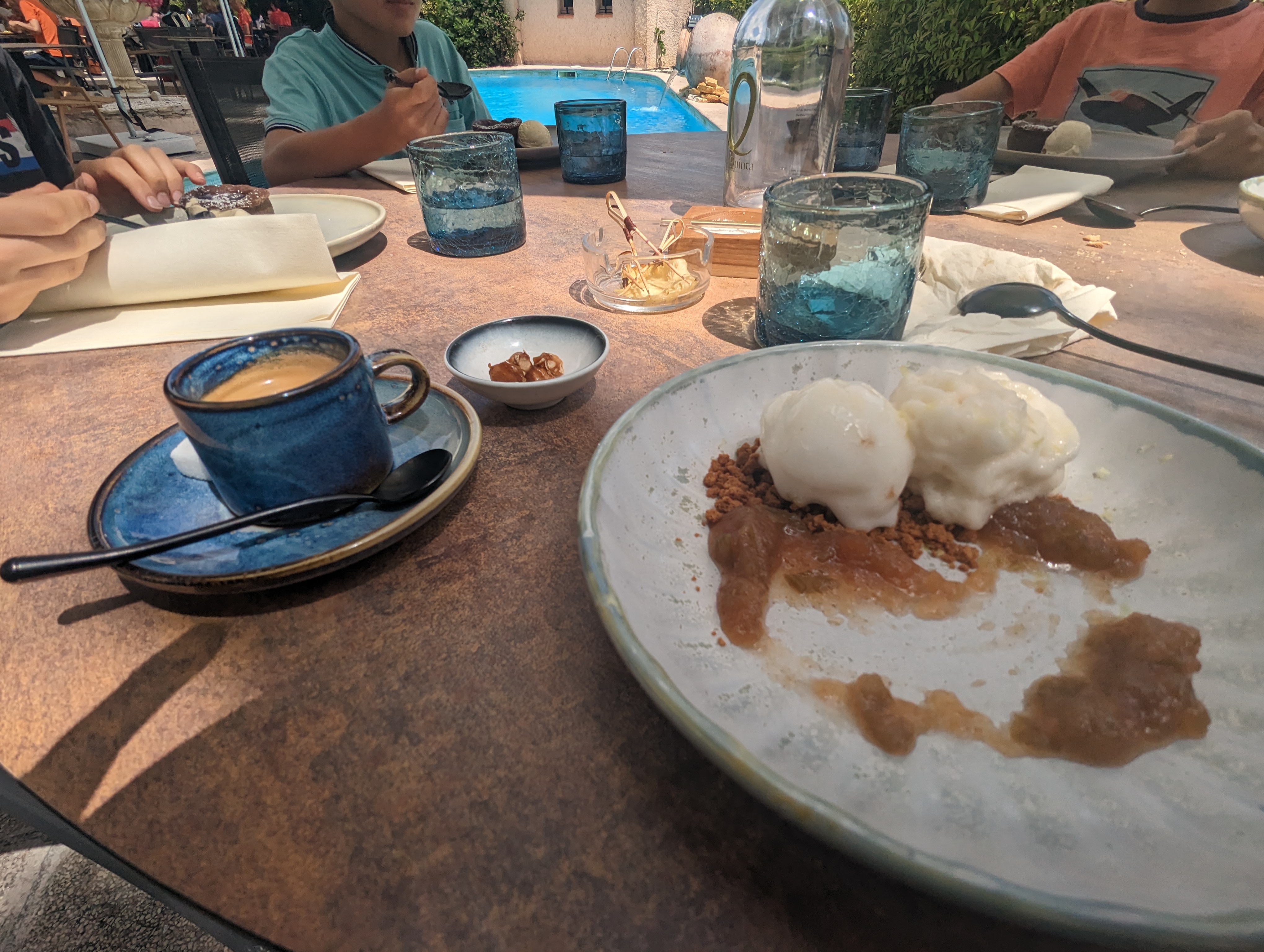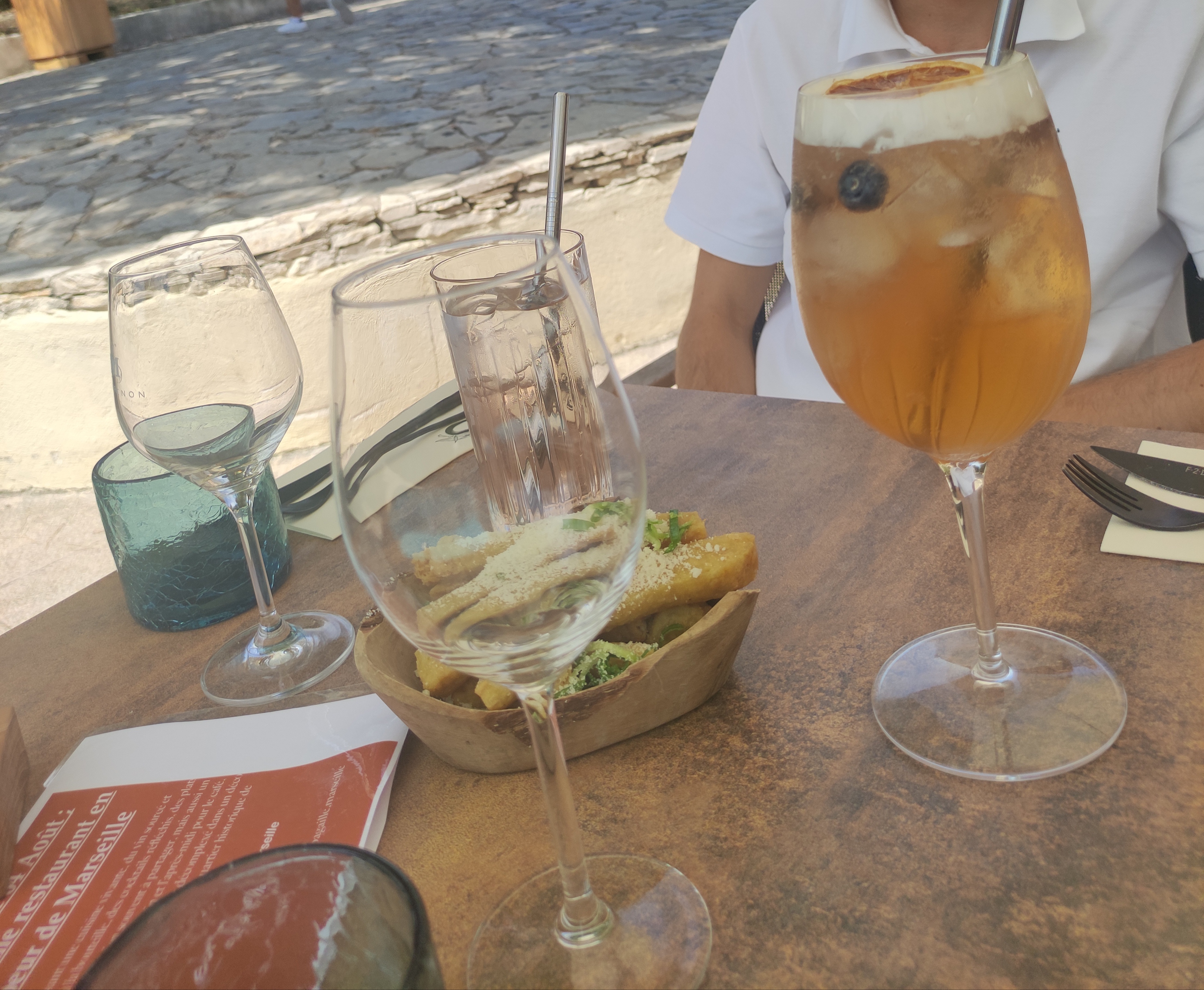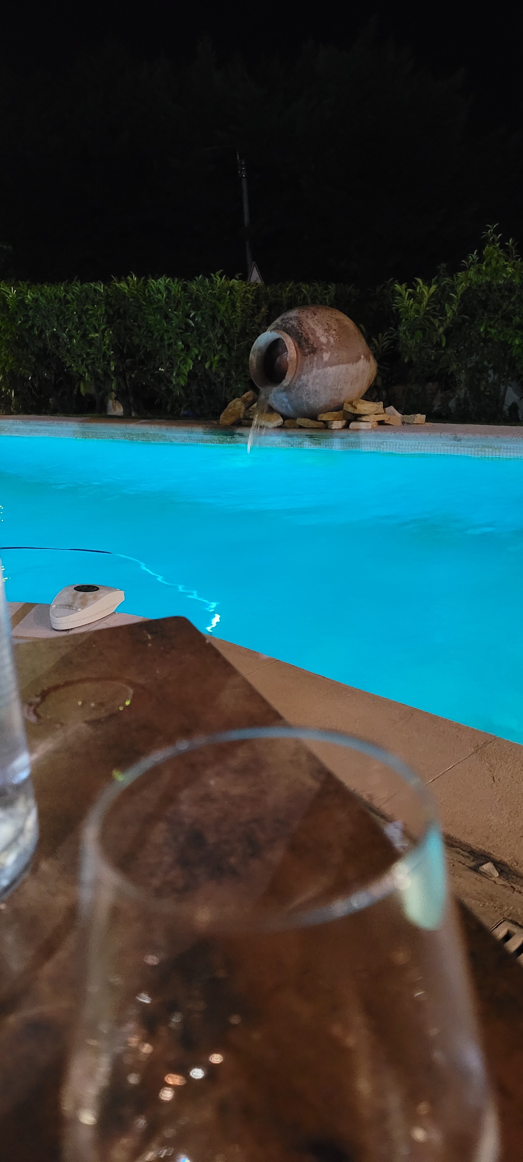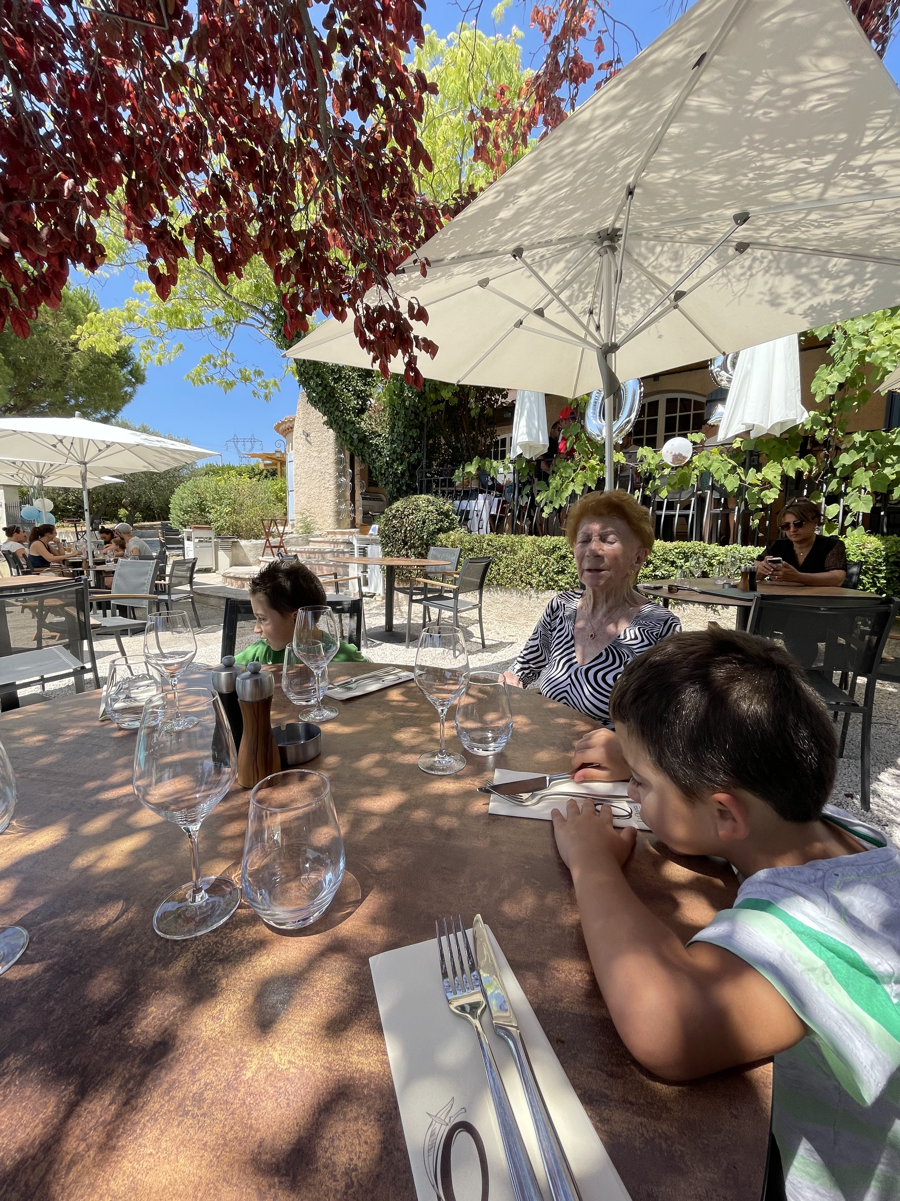 Après midi passée au bord de la piscine avant de passer au restaurant. Cadre incroyable, paisible au son des cigales. Plats très bons, personnel aux petits soins, avec beaucoup de petites attentions pour se faire pardonner de ne pas nous avoir placées au soleil (très peu de temps au final), vraiment on a adoré et on reviendra !