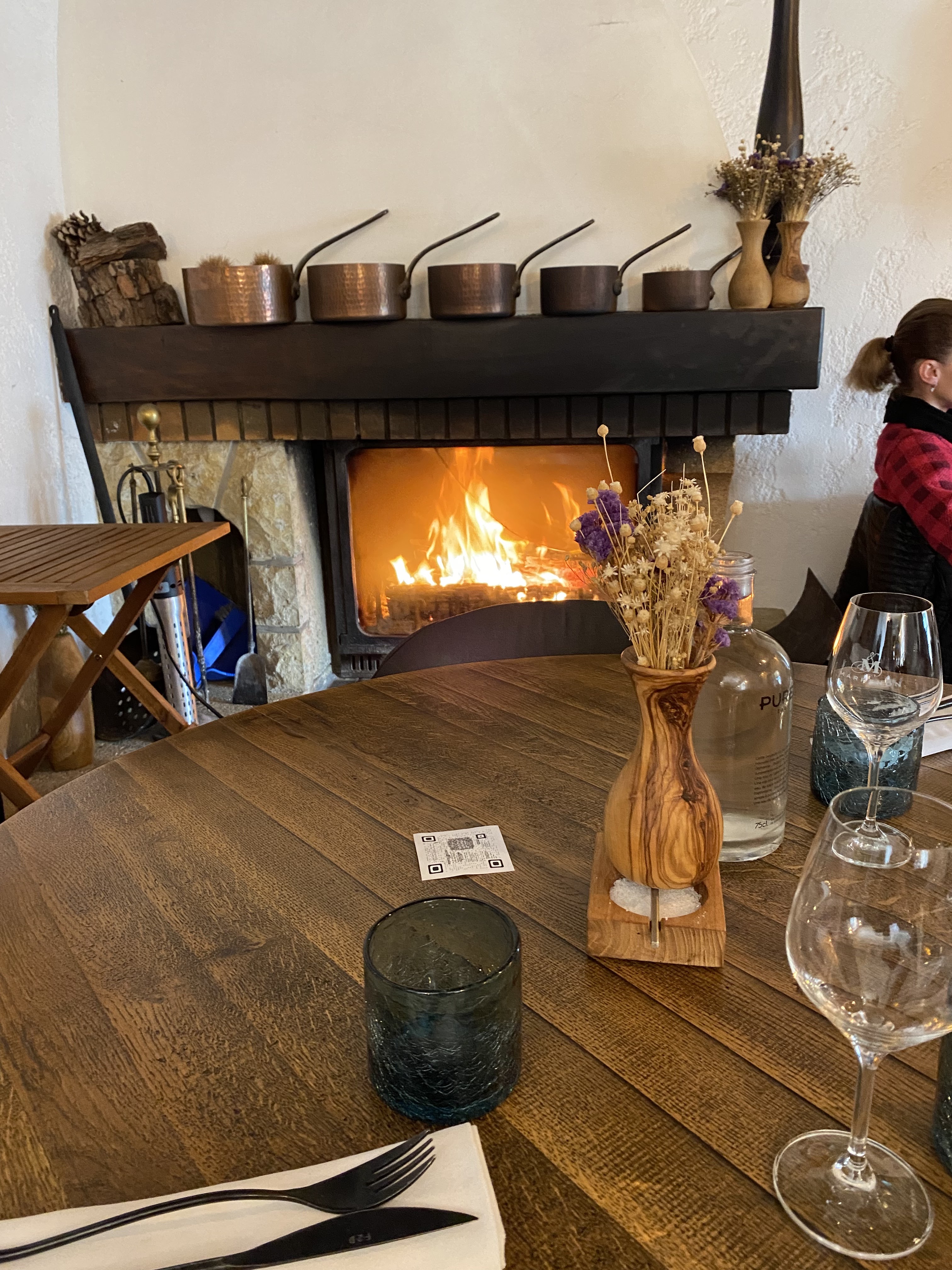Tables devant la cheminée, juste magnifique, les plats excellent très belle présentation , les serveurs aux petits soins avec un brin de plaisanteries😉 et surtout de la gentillesse et le sourire 😊 nous y retournerons les yeux fermés ou presque 😊