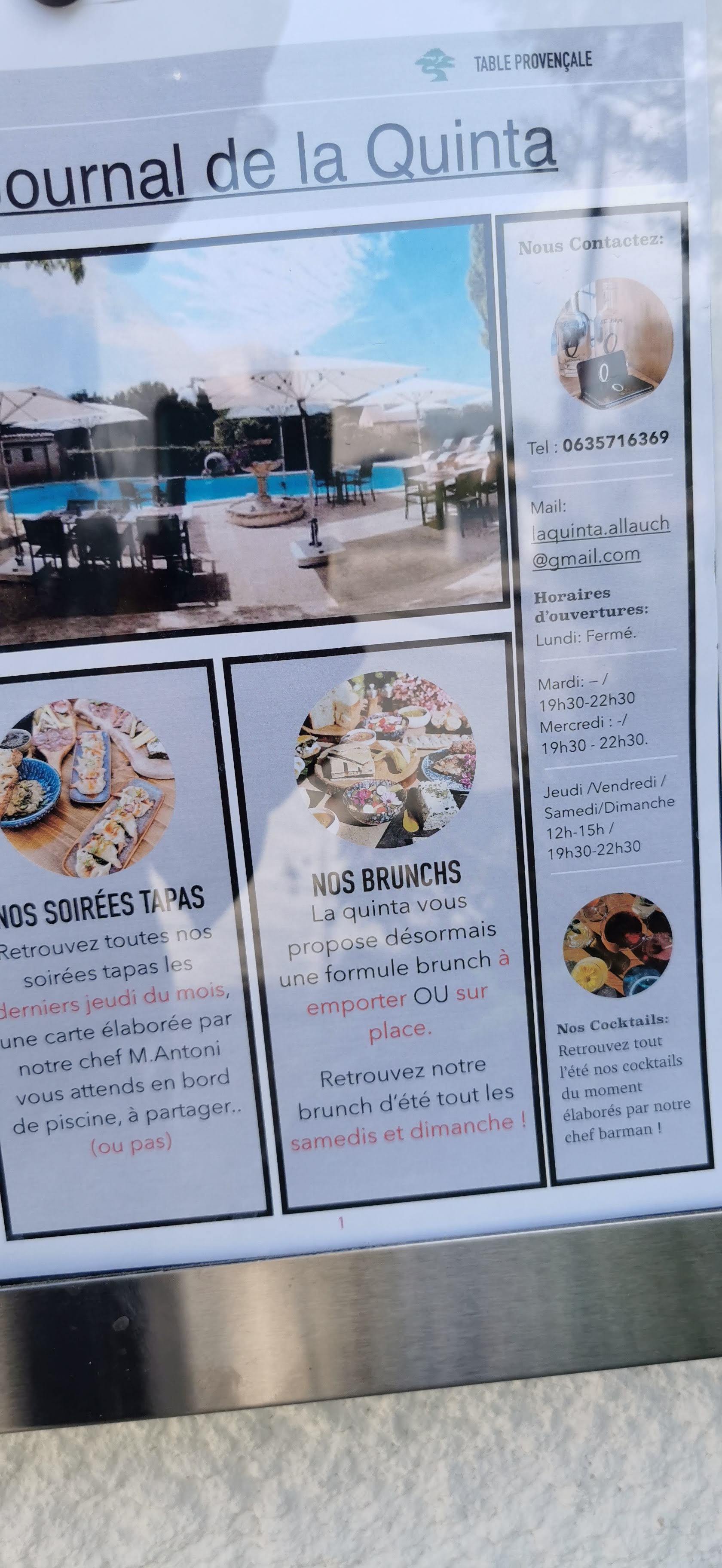 Cela fait plusieurs fois que nous venons à la Quinta. Super adresse, cadre agréable, piscine et terrain de pétanque sur réservation. Accueil impeccable. Serveurs et serveuses professionnels. Petit bémol pour les couverts si on veut vraiment être tatillon.😅 ils ne sont pas pratiques, la prise en main est difficile.