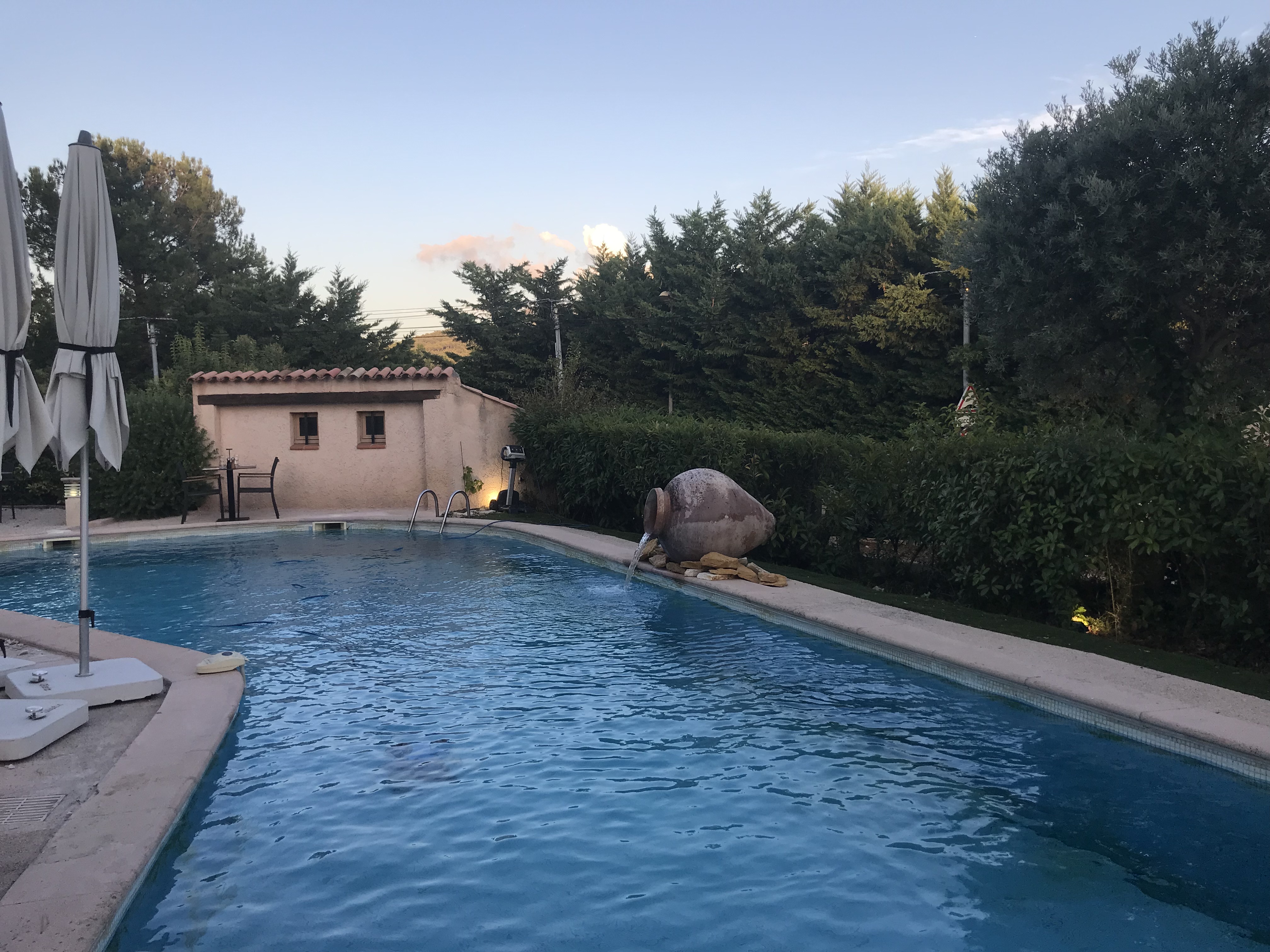 Bel endroit dans une zone pavillonnaire qui ne donne pas envie aux premiers abords mais le cadre passe le portail vous transporte comme si vous étiez reçu chez l'habitant. C'est une maison avec sa piscine sa terrasse son petit terrain de pétanque tout ce qui fait le charme du sud et de l'arrière pays de Pagnol. On mange très bien des produits de qualité en quantité généreuse,très bon vin nous avons passé un très bon moment. A faire en hiver auprès de la cheminée ou l'été devant la piscine sans hésitation.