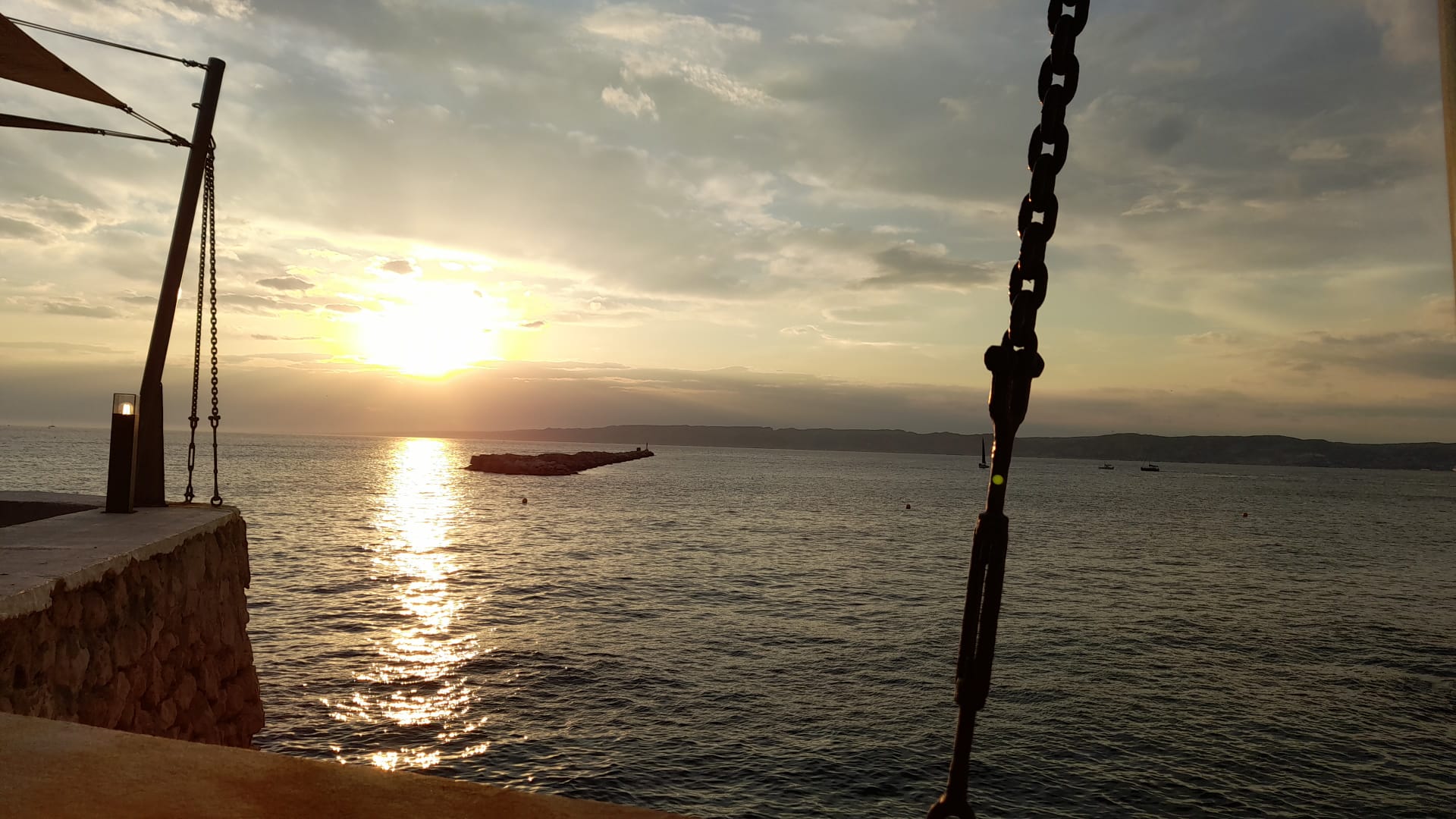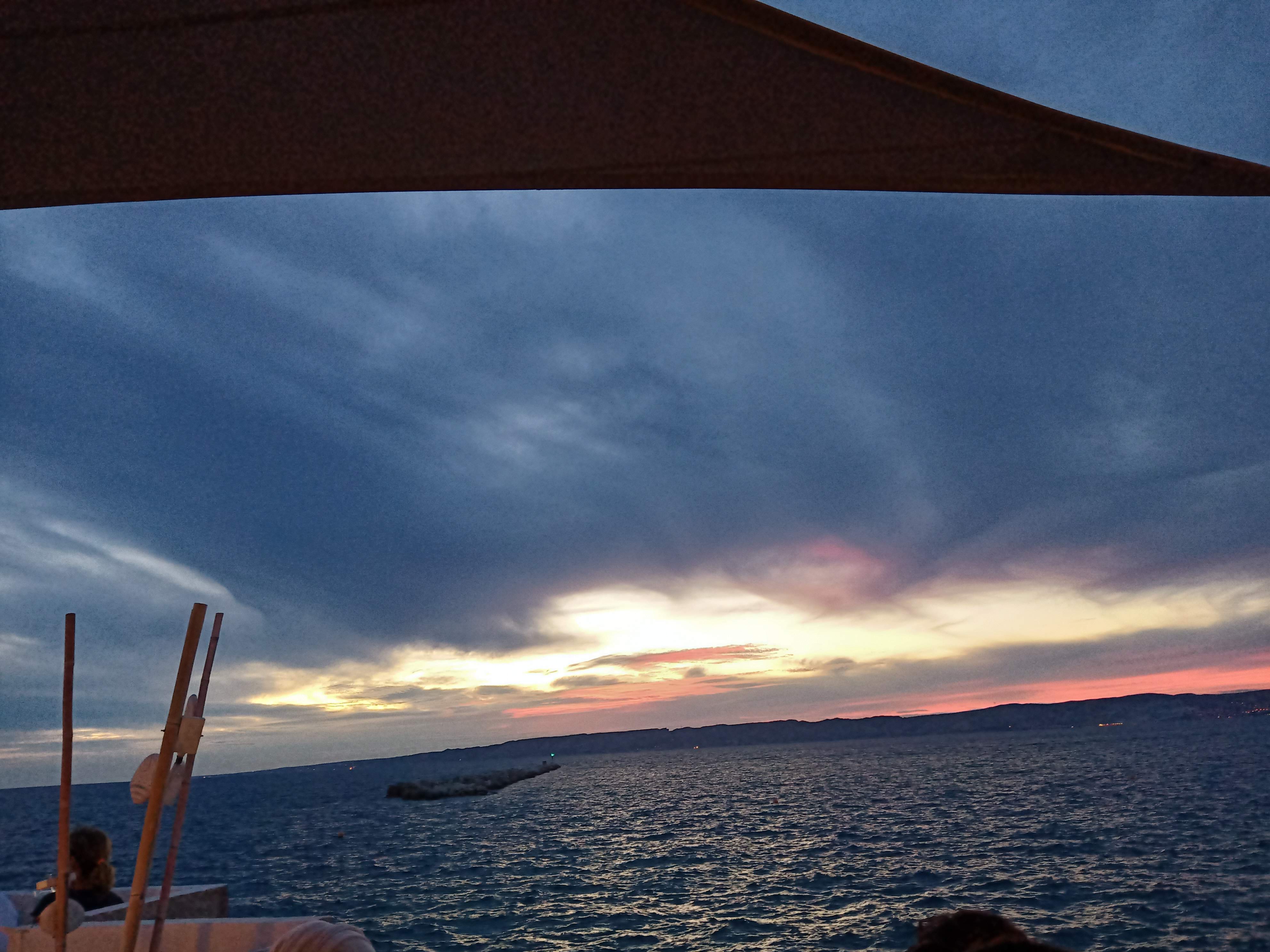Super endroit avec cadre magnifique, dommage qu'on n'ait pas pu arriver à temps pour profiter du coucher de soleil qu'on nous avait vendu et qui nous avait fait arriver dans ce restaurant. Équipe très chaleureuse et serviable plus drôle, la bonne humeur marseillaise était au rendez-vous du début à la fin de notre dîner dans cet établissement. Je regrette juste avoir eut une petite portion de riz en accompagnement de ma dorade mais celle-ci était excellente. Je recommande et n'hésiterai pas à y retourner !