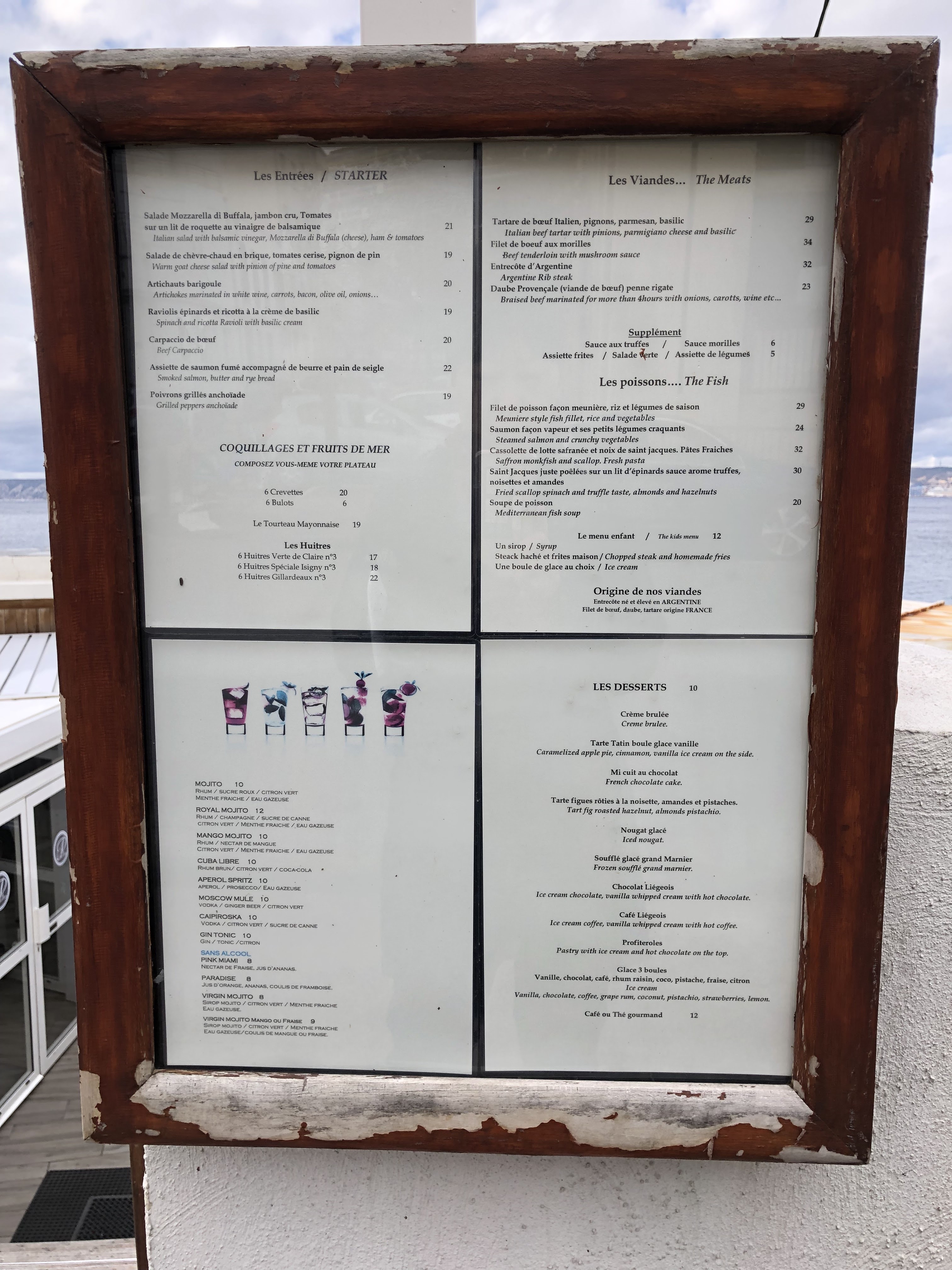 Un bon restaurant, les plats sont bons mais cher pour ce qui est servit. Par contre, l’accueil est vraiment au top, vraiment très bien accueillit dans la bonne humeur et un cadre idyllique. Les cocktails sont très bons. Un peu déçu par les plats et les sauces en supplément. Néanmoins, si vous voulez une belle vue sur la Méditerranée, c’est l’endroit parfait.