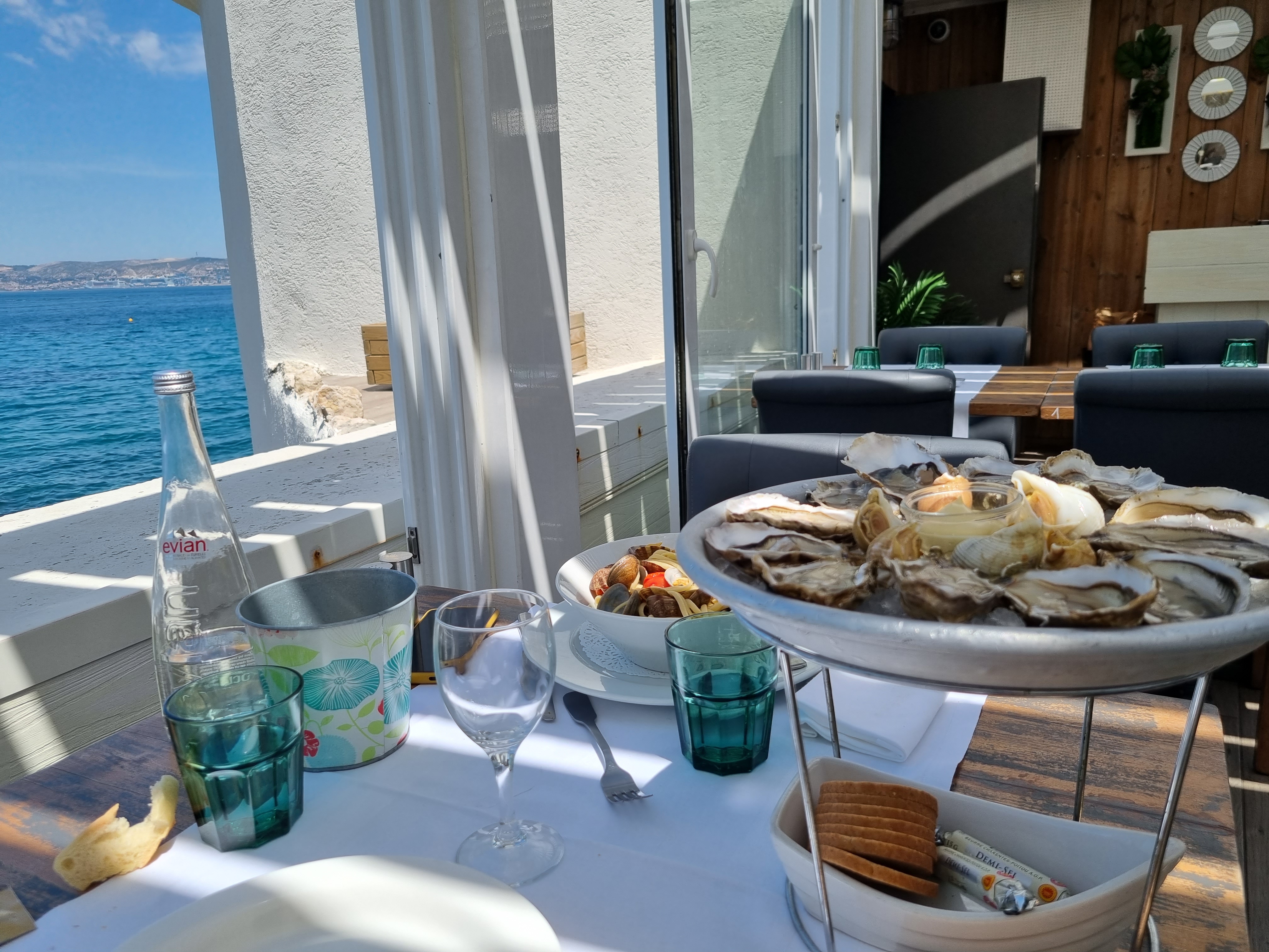 Très beau restaurant vers la Corniche de Marseille au bord de la mer. César m’a invitée déjeuner et j’ai un très bon souvenir de l’endroit et du repas. La vue était magnifique et on était assez tranquille. Le serveur était très sympathique. En entrée, on a commandé 6 huîtres (17€). Puis j’ai pris du saumon cuit vapeur avec des légumes ensemble et du riz (19€). Quant à César a pris de la sole façon meunière du riz et de la ratatouille (26€). Et on a rajouté 2 cocktails (20€) et un café liégeois en dessert (10€) En conclusion, un peu cher mais pour le cadre c’est correct !