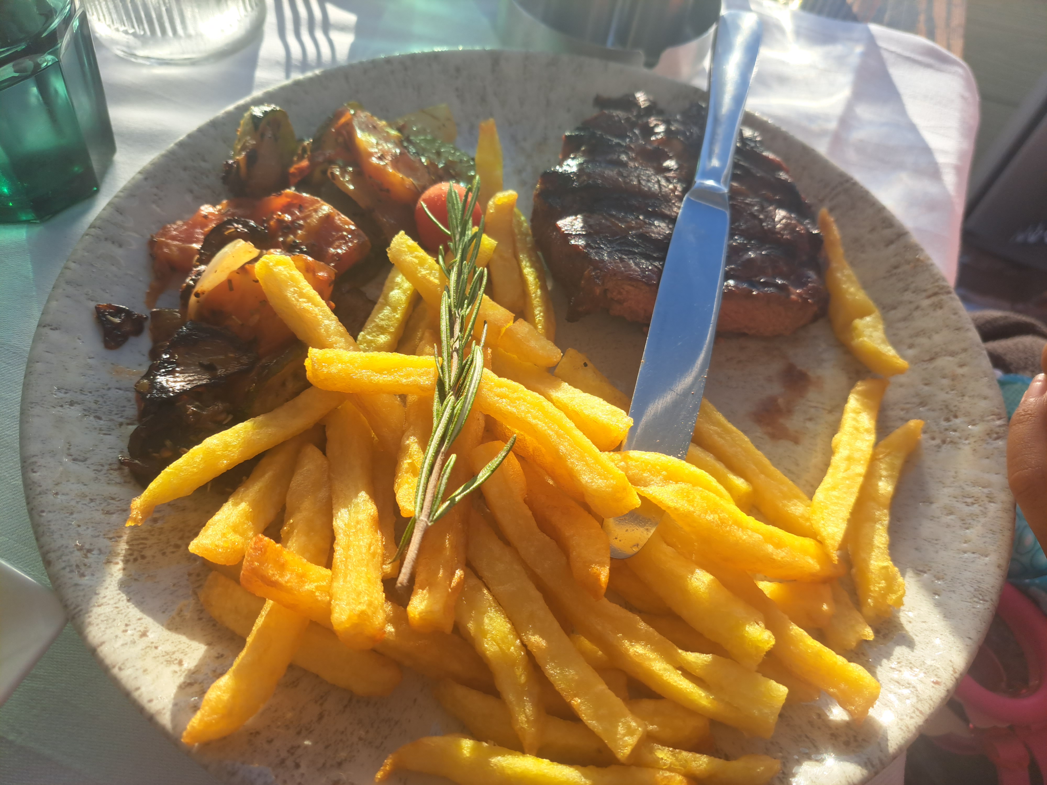 Le cadre magique mais cuisine décevante brochette espadon thon immangeable et steak menu enfant de la semelle