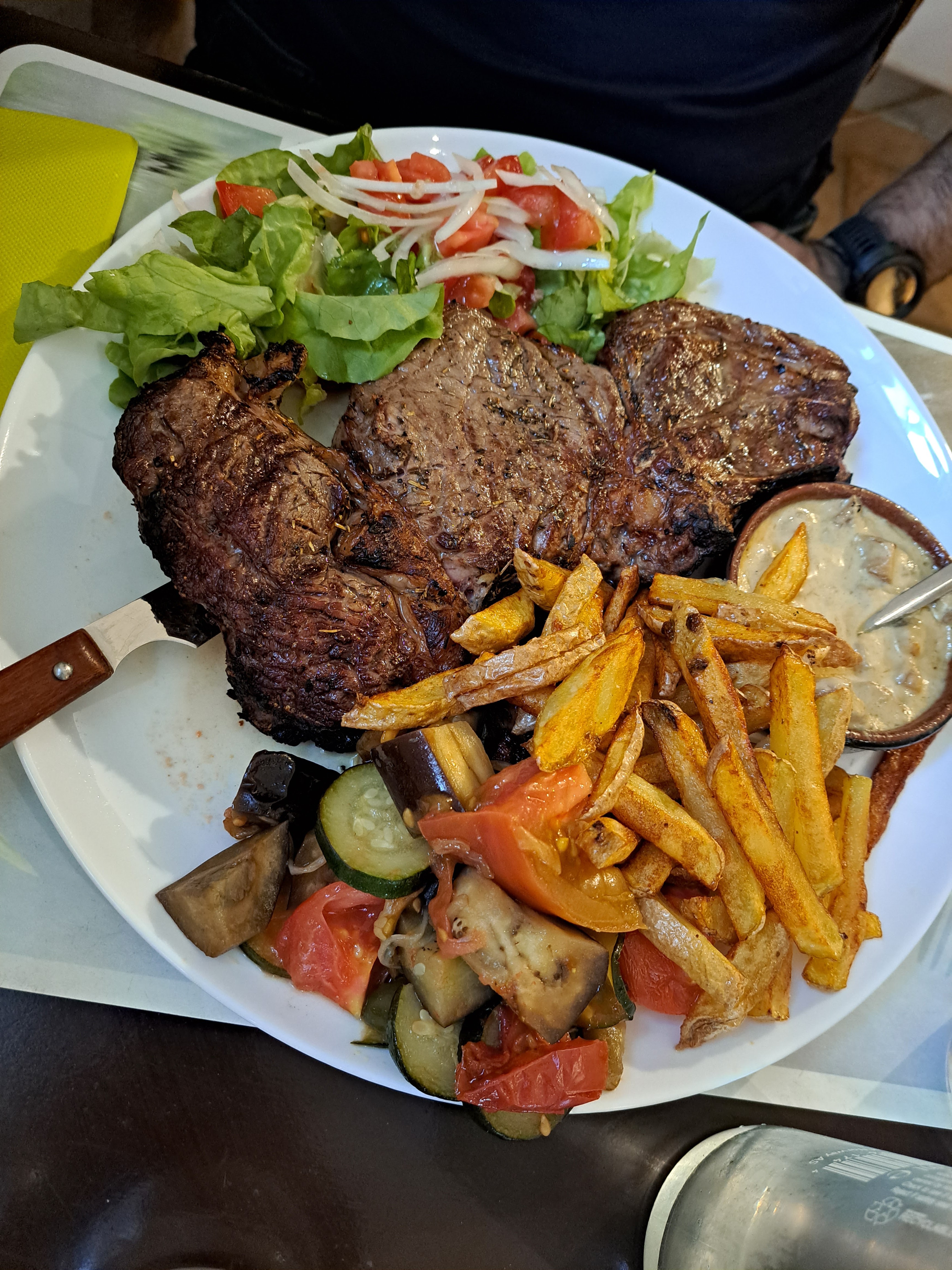 Je conseille. Restaurant super sympa avec personnel accueillant. On a pris deux entrecôtes et vraiment rien à dire la viande était juste super tendre.