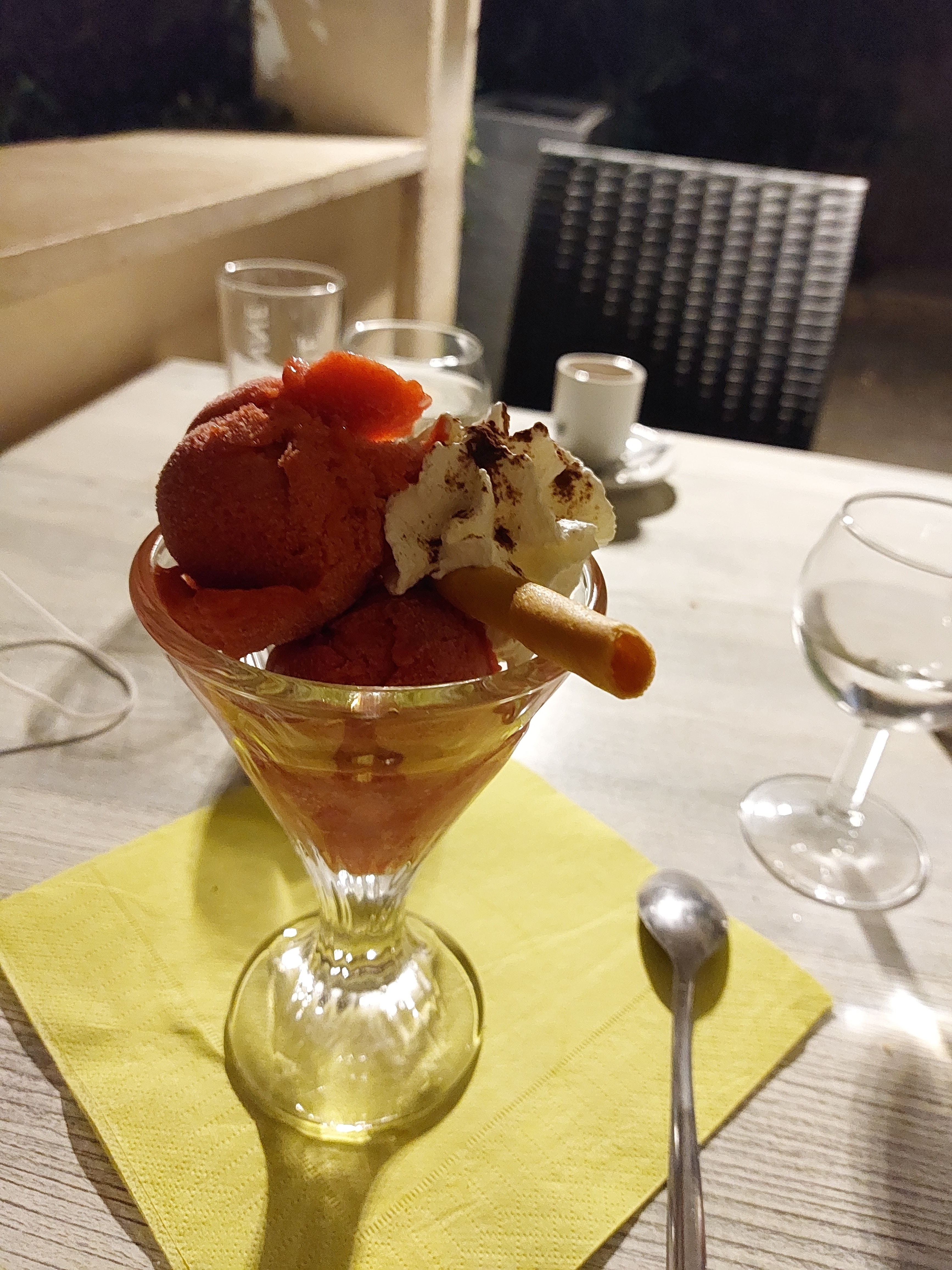 Un restaurant avec une jolie terrasse, d'excellentes pizzas cuites au feu de bois et quelques plats traditionnels également très bons et très bien présentés. Les prix sont adéquats pour la qualité de la nourriture et pas trop chers.