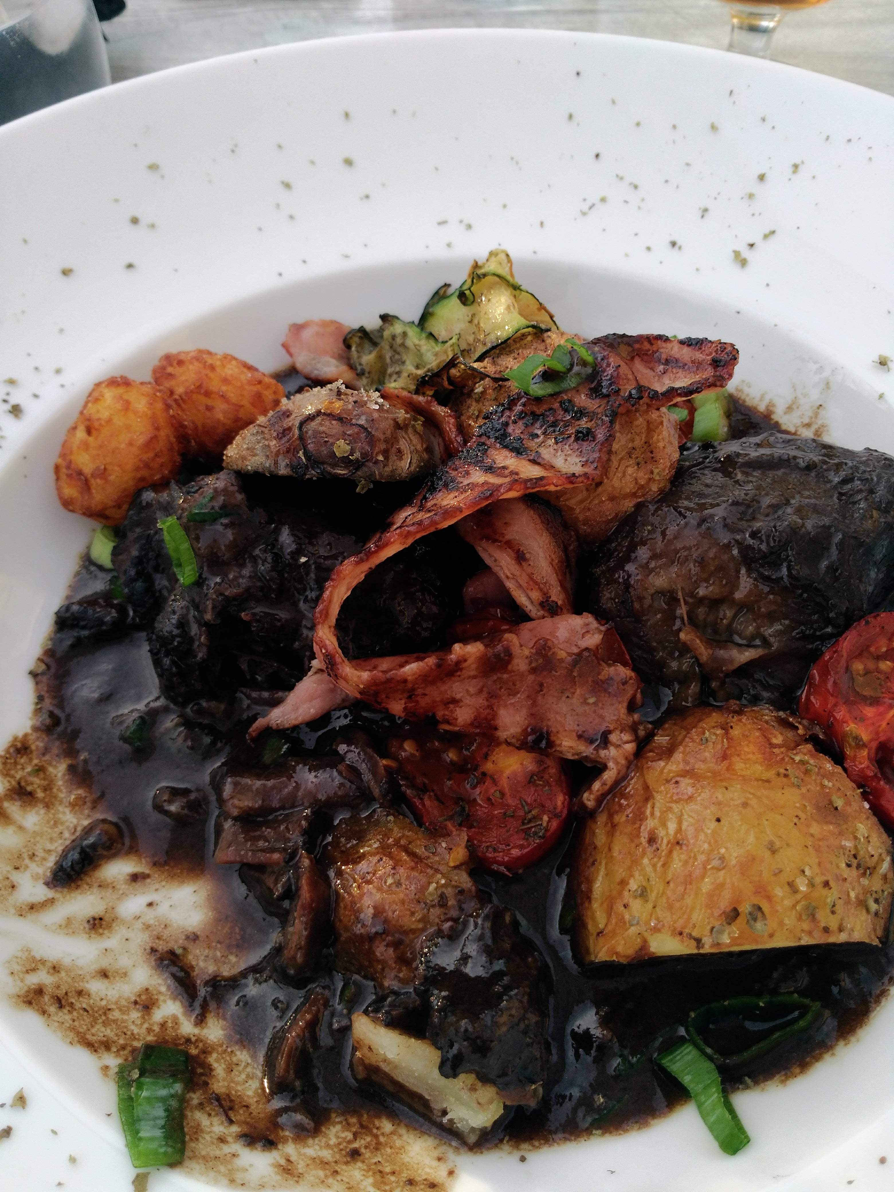 Excellent accueil , les mets sont appétissants , copieux, la carte assez restreinte mais suffisante afin que l'on trouve son bonheur et c'est aussi c'est un gage de qualité. Le chef a suggéré un petit bol afin de mettre les os de cailles ce qui est judicieux . La vue est magnifique, un bon rapport qualité prix. Cailles rôties .Risotto crémeux au chorizo et gambas .