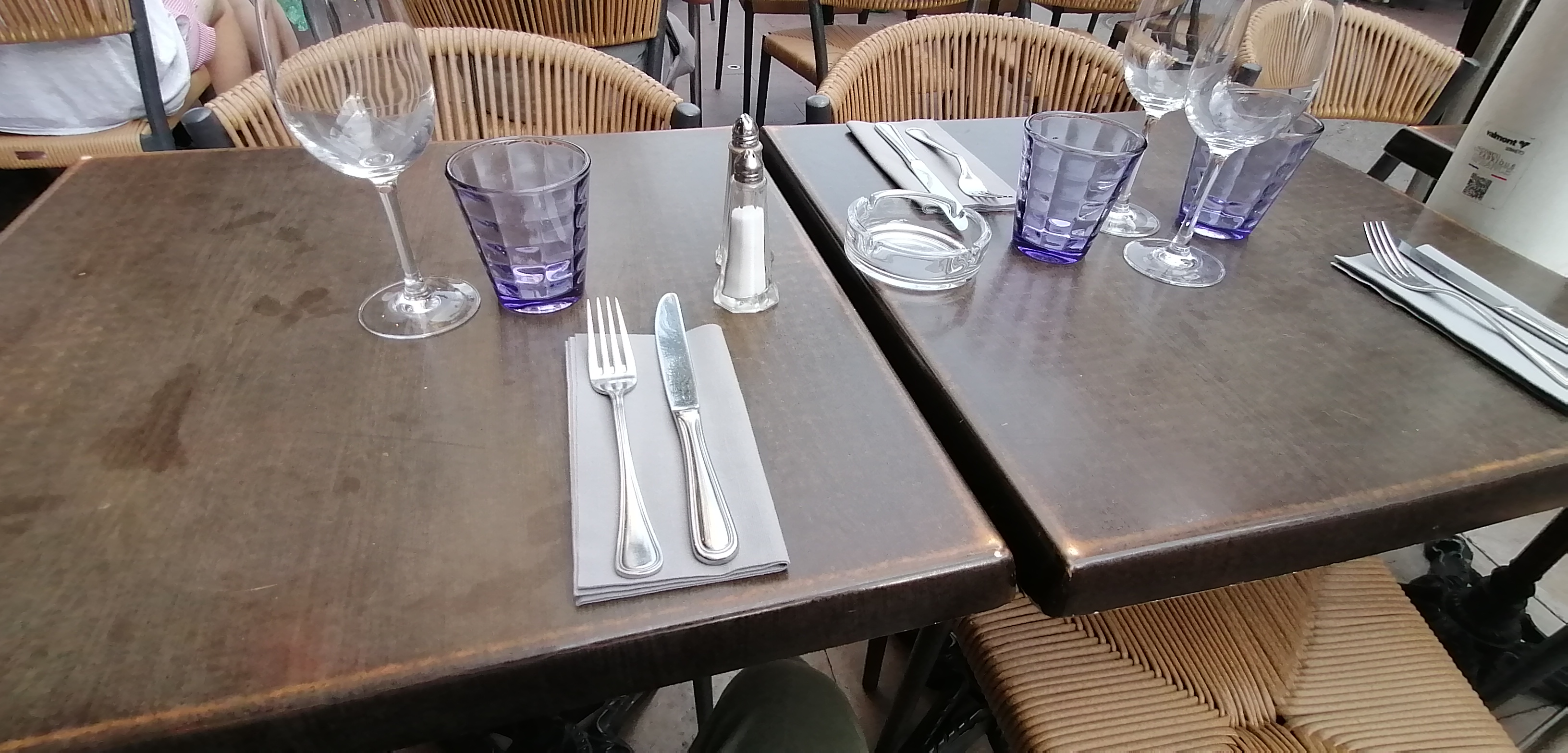 en tant qu'habitués de Juan, nous avons trouvé ici la gentillesse et la convivialité de tous les serveurs, ils parlent également italien et nous ont expliqué avec enthousiasme le menu et leurs plats. Les plats sont juste en quantité et avec 2 plats principaux avec des accompagnements abondants (presque un seul plat), 1 dessert et 2 verres de vin la facture est de 50 € pour 2 personnes. (pas grand chose pour les prix de Juan) L'eau était visiblement une carafe d'eau et n'avait pas le goût du chlore, ce qui n'est pas rien ! le pétillant n'est pas demandé en France car on le sait, c'est un bien de luxe.