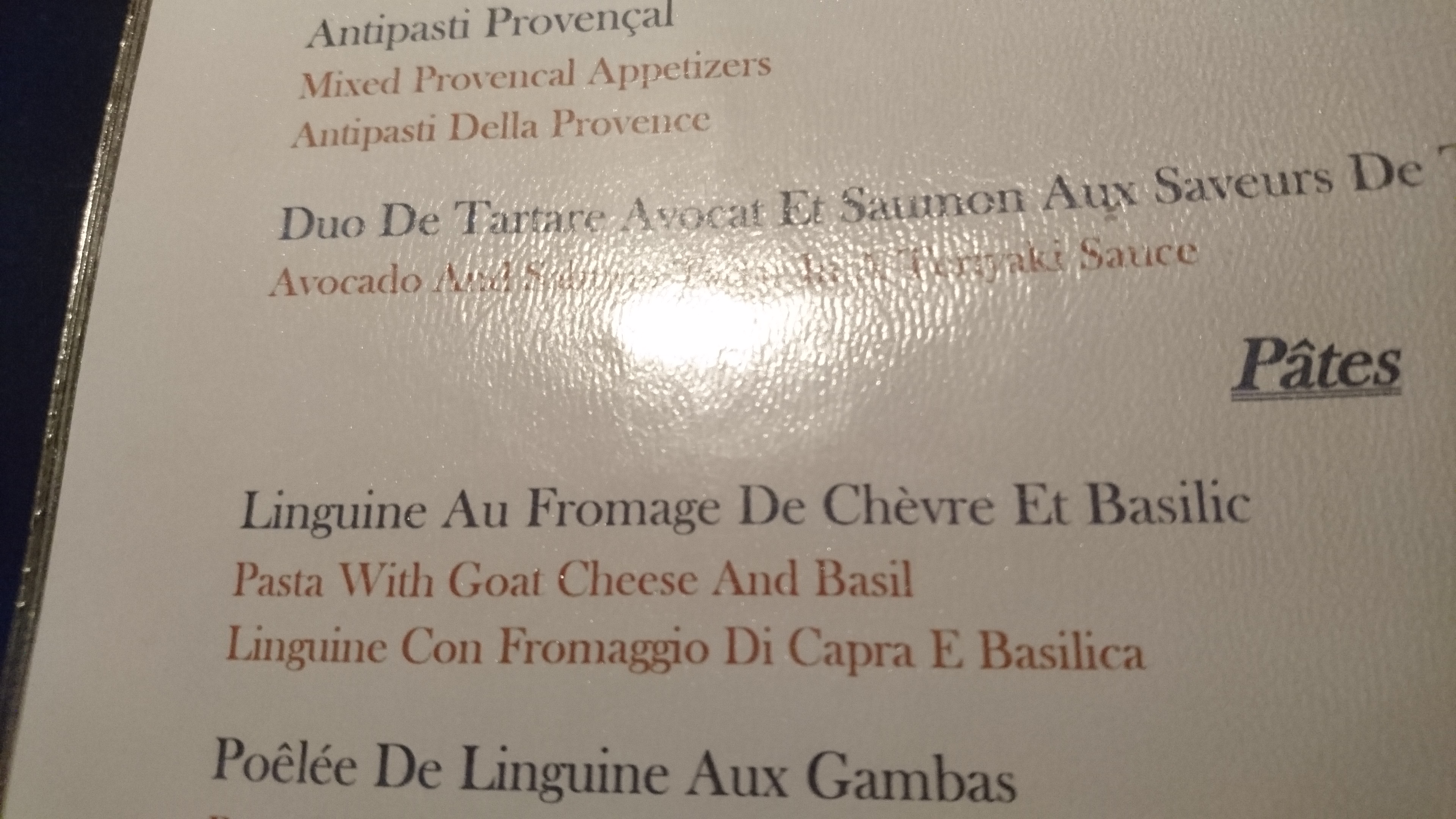 Nous sommes deja venus a plusieurs reprises dans ce resto et avons à chaque fois opté pour le menu. Il y a plusieurs choix pour l’entrée, le plat et le dessert. Les serveurs et le patron sont sympa. Nous vous recommandons vivement ce restaurant !