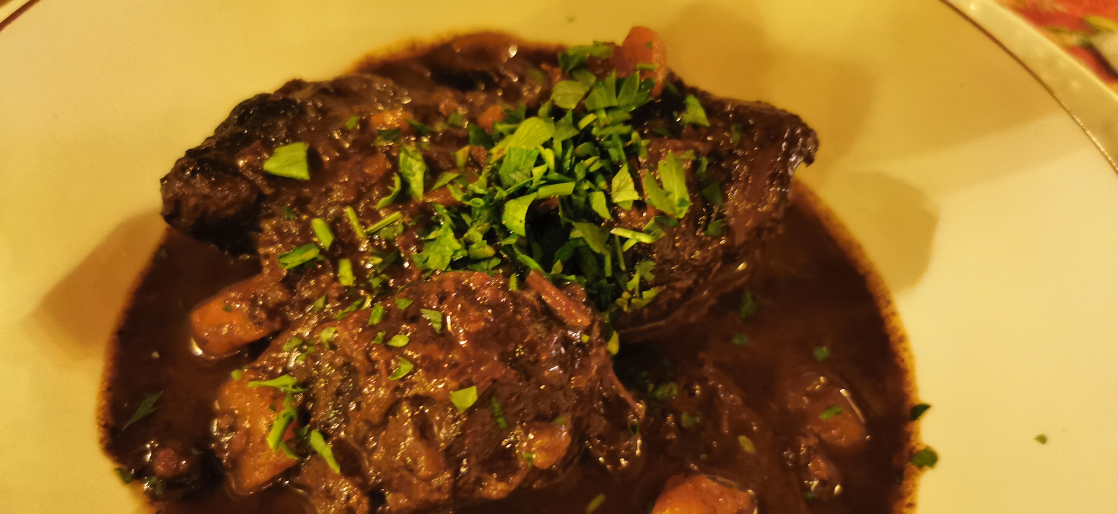 Très bonne cuisine et un excellent vin rouge. Ambiance sympa avec de belles photos aux murs. Peut être fortement recommandé. Pas bon marché mais très bon.