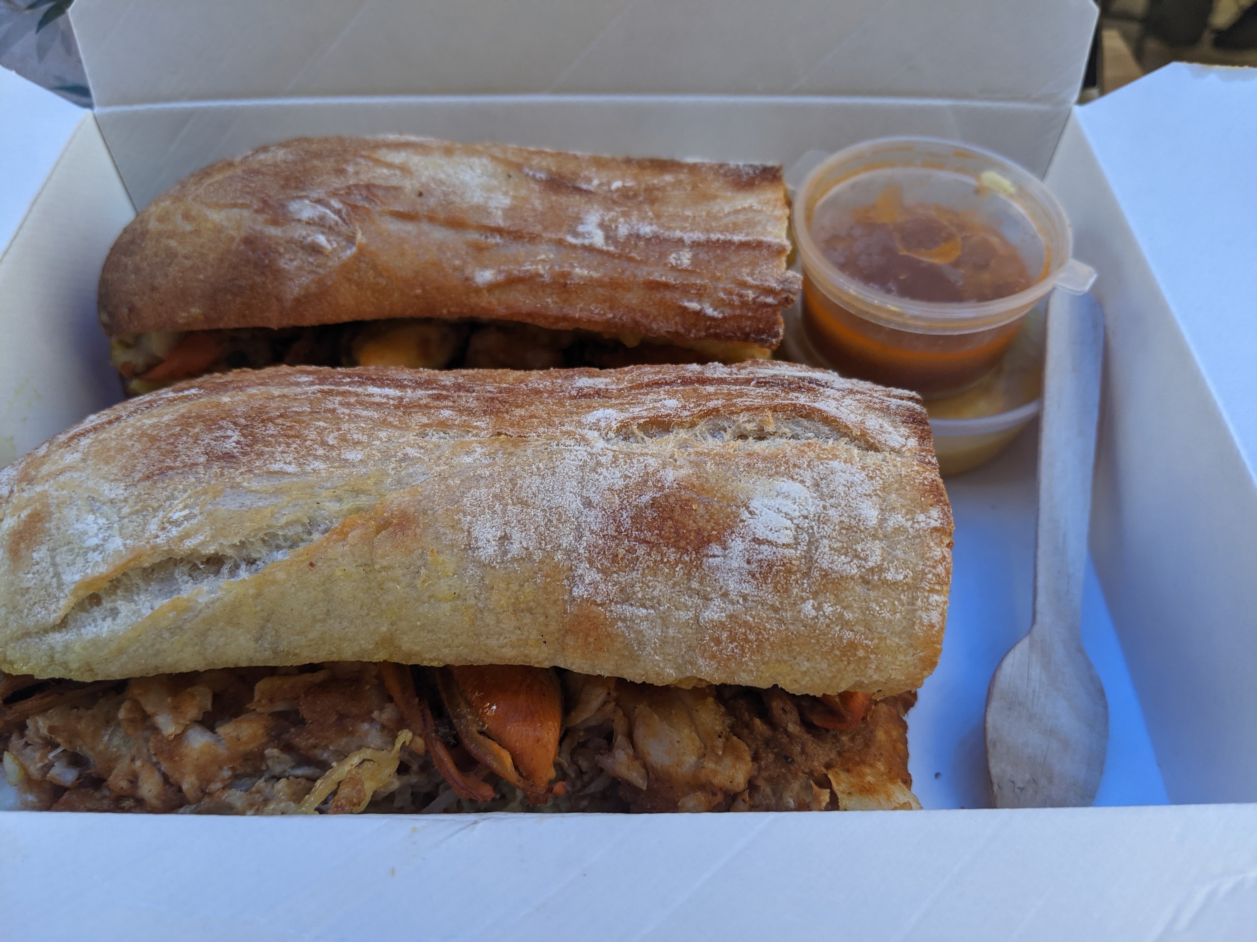Famille de 3 personnes, nous venons de prendre des sandwichs aïoli poisson, vege et daube. Je ne laisse habituellement pas d’avis Google mais là je fais un effort. Je viens de terminer le sandwich aïoli cabillaud ; un des meilleurs sandwichs que j’ai mangé de ma vie. Les saveurs du mélange de poisson, d’ail, de patate fondante, le pain chaud, ultra frais et croustillant, une merveille d’équilibre. Bravo !