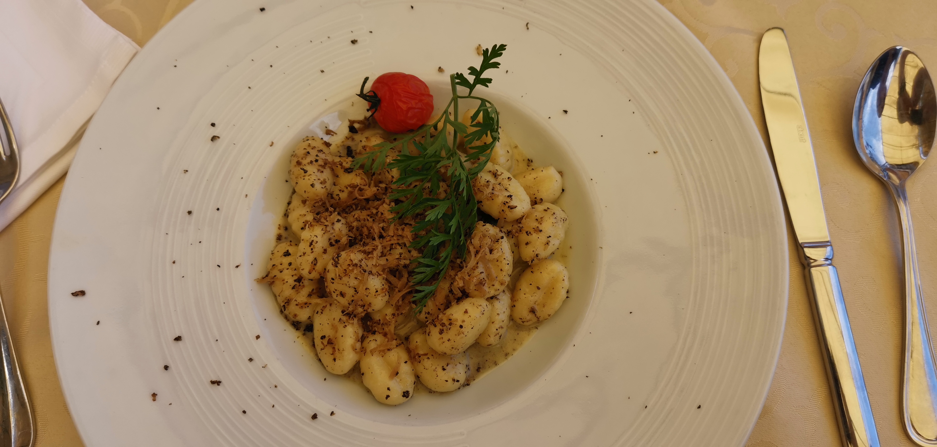 Le service n'était pas particulièrement agréable. Les entrées n'étaient pas mal. Les prix principaux n'étaient pas bons pour ça. Garnir les pâtes à la truffe d'huile de truffe et non de truffes fraîches. Le poisson était dur et j'ai juste réussi à manger les légumes. La crème brûlée a été brûlée. Pas du tout rapport qualité/prix.