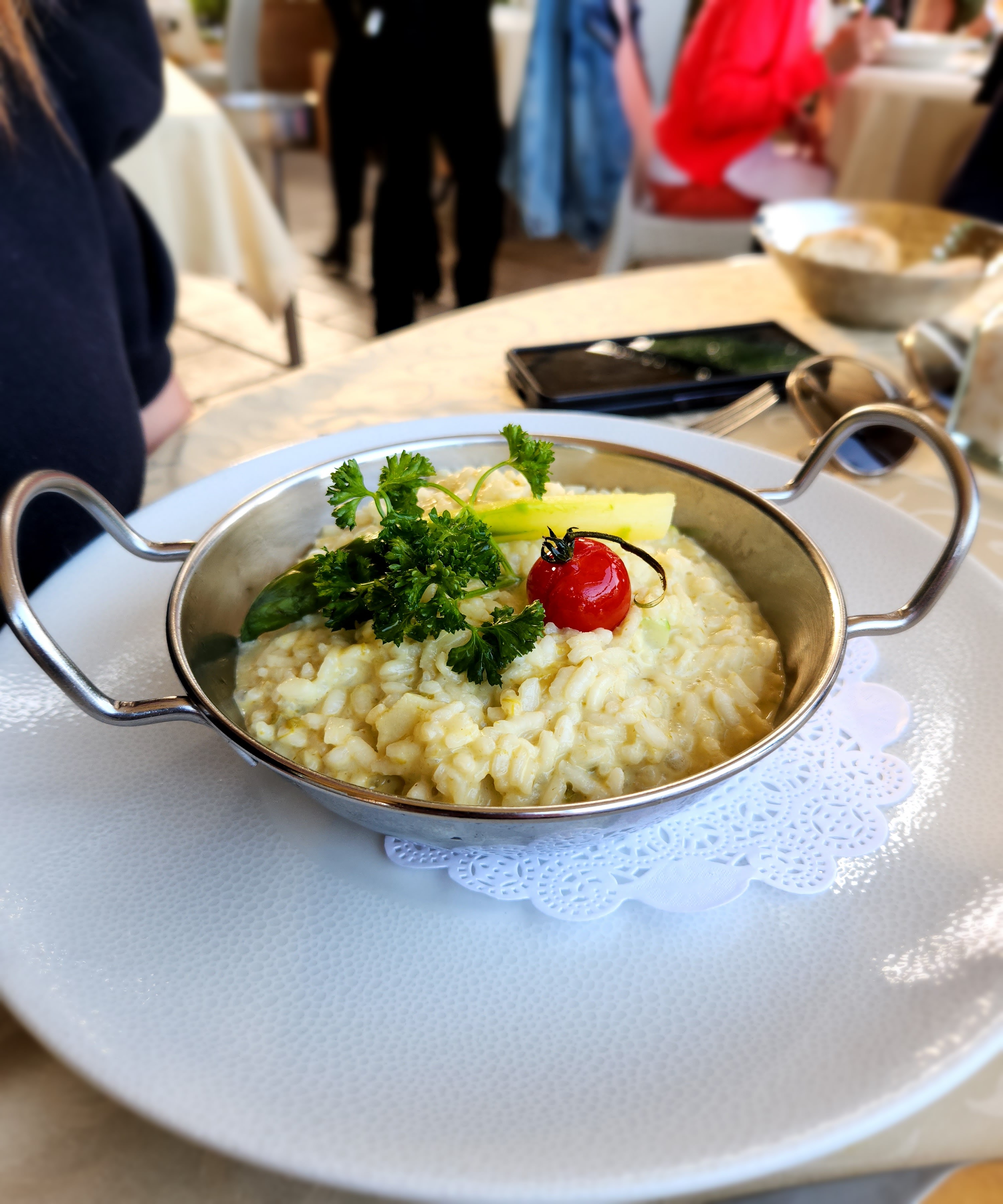 Très agréable moment ,vue sur le golf, tranquillité ,service rapide , personnel agréable ,le risotto Royal fruits de mer et langouste….excellent..bravo à toute l’équipe. Des niçois .